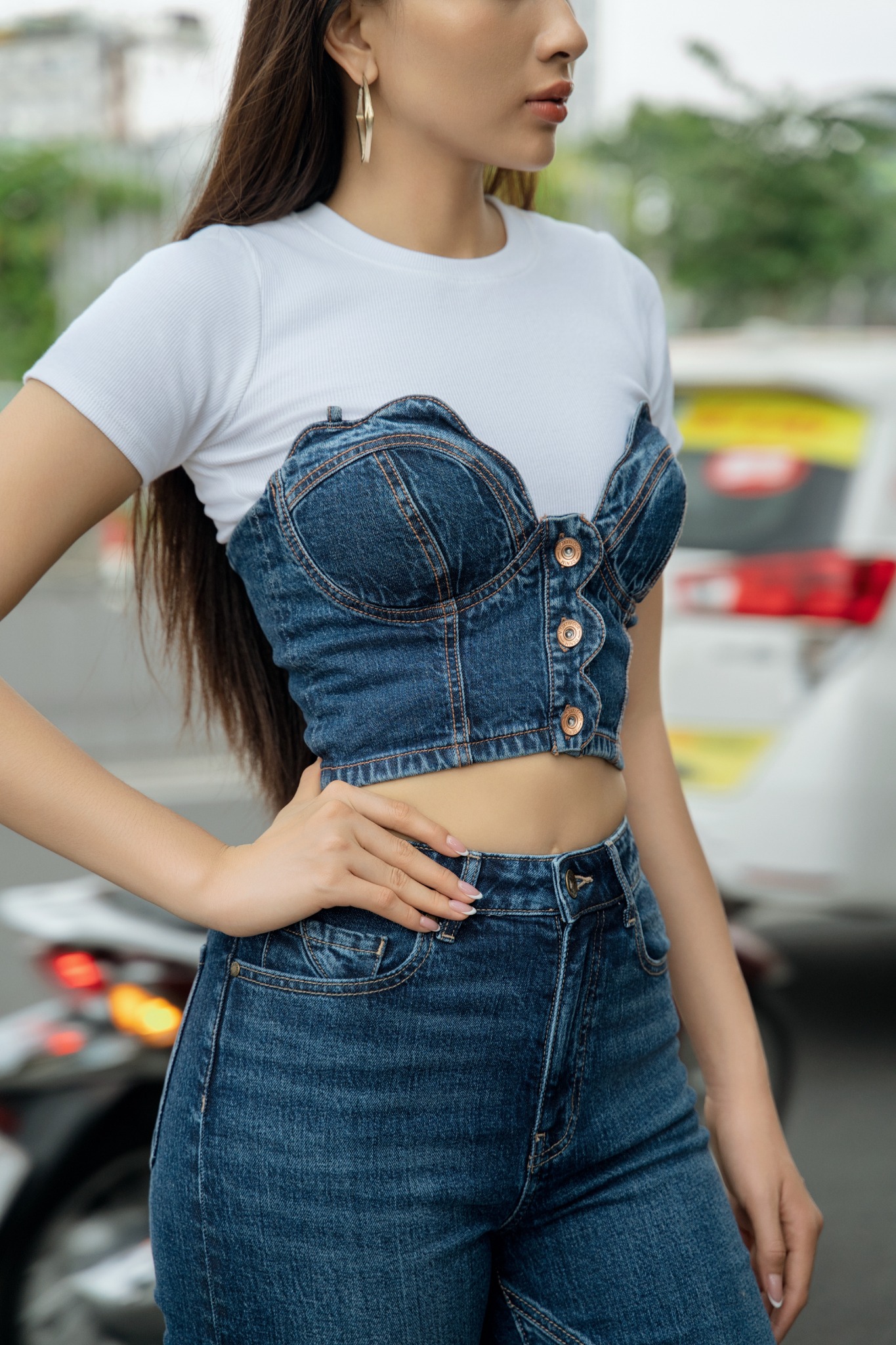 Áo Bra Denim Nữ Cách Điệu Cánh Hoa. Women's Petal Style Denim Bra - 223WD1017F3