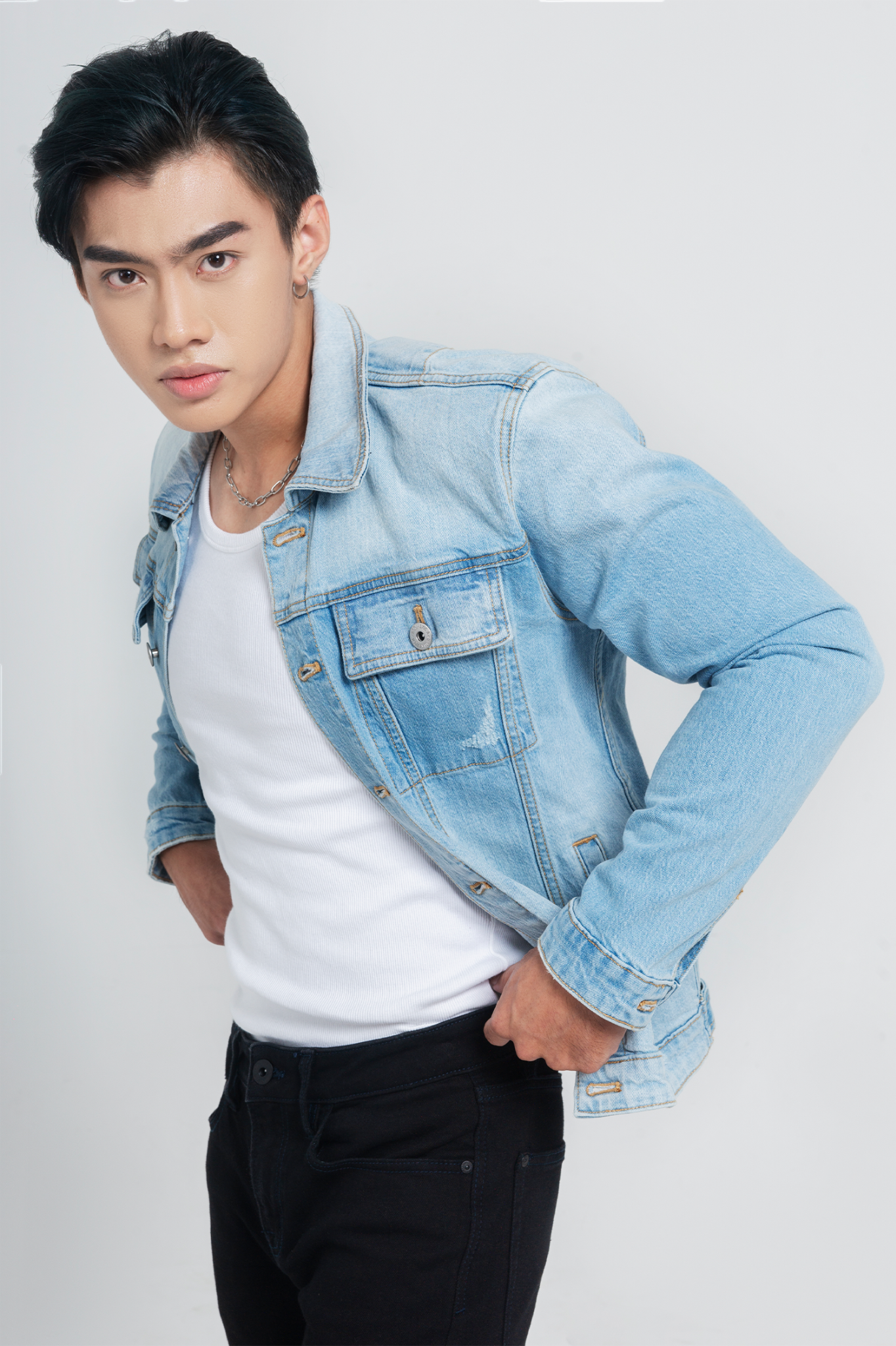 Áo khoác dáng rộng dành cho nam, màu xanh nhạt có hiệu ứng wash blend màu từ trên xuống và tại hai túi áo. Chất liệu jeans dày dặn 100% cotton, cùng kỹ thuật Enzyme bleach wash thân thiện môi trường, kết hợp hiệu ứng laser nhẹ. Phù hợp tránh nắng cho những chàng trai phải hoạt động nhiều ngoài trời. Màu sắc sáng trẻ trung, hiện đại và cá tính vừa đủ để diện trong tất cả các dịp