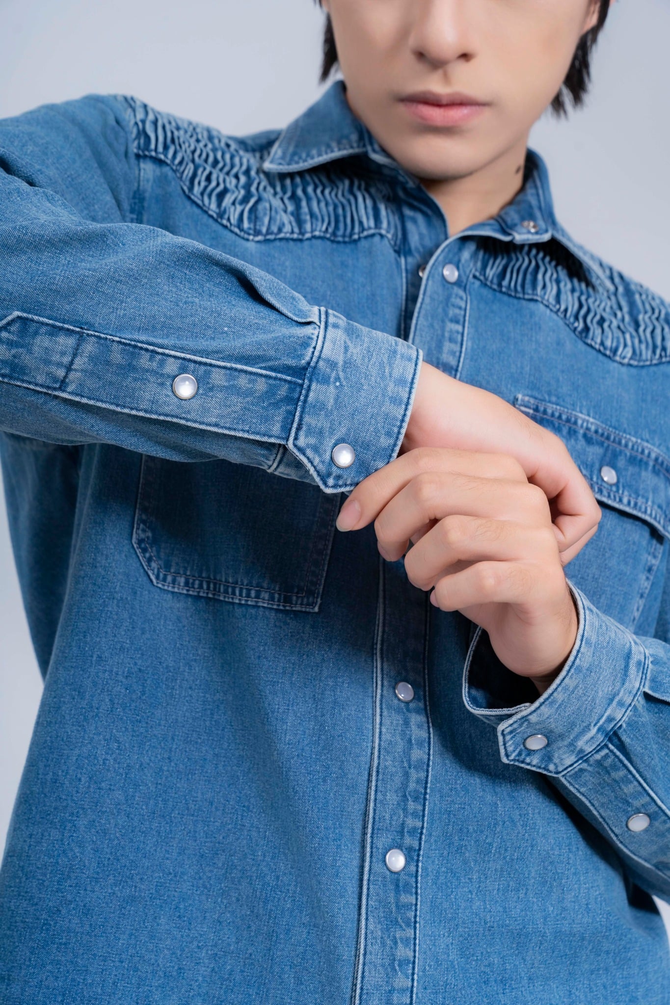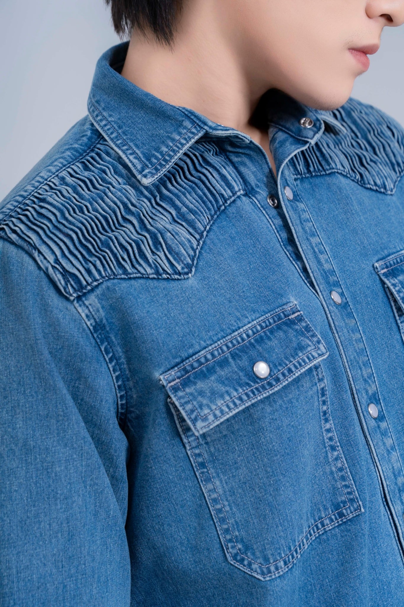 Denim Shirt With Pleated Shoulders – “chìa khóa thời trang” cho các chàng trai muốn khẳng định phong cách lịch lãm, trẻ trung và hiện đại!