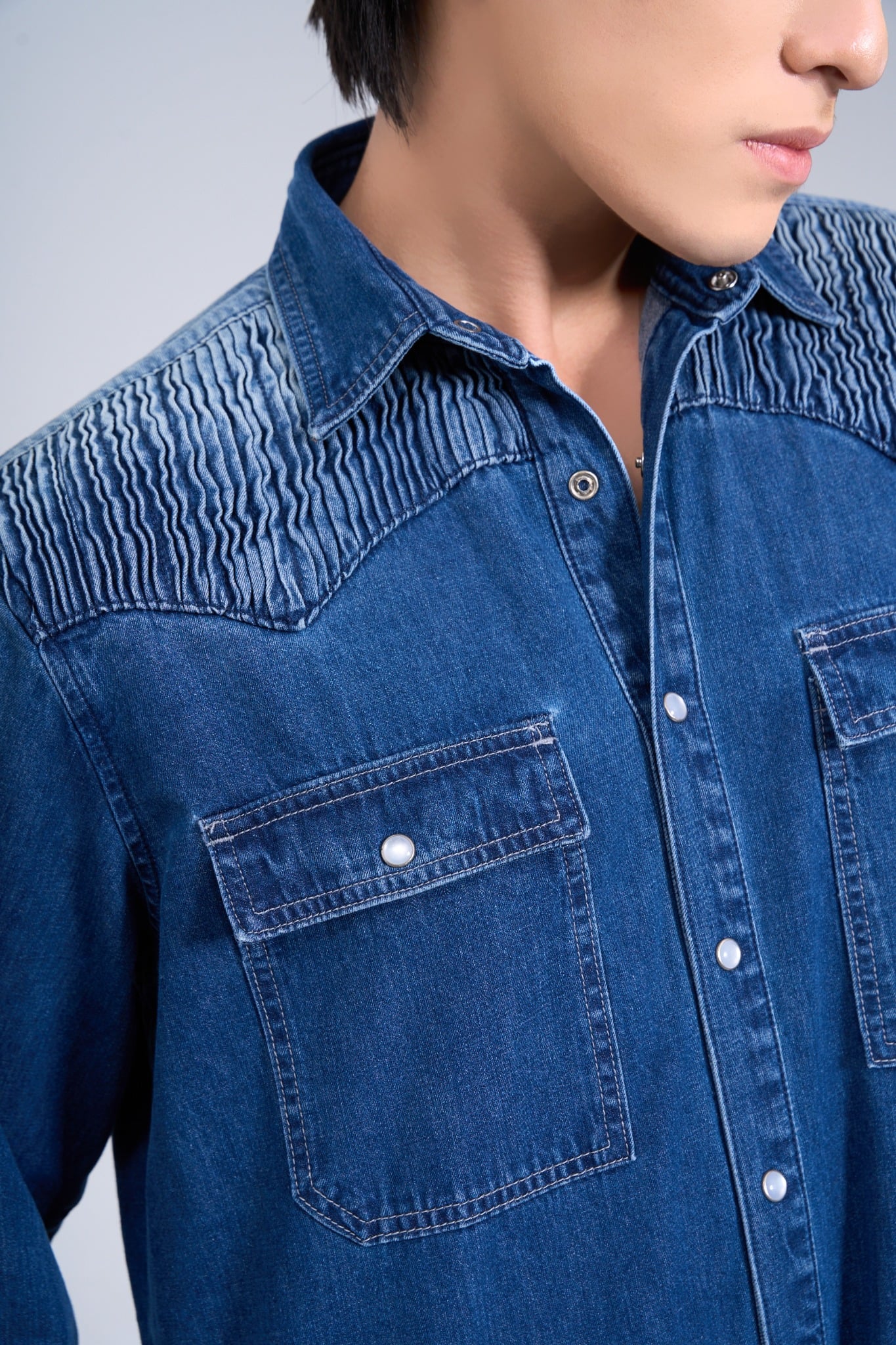 Denim Shirt With Pleated Shoulders – “chìa khóa thời trang” cho các chàng trai muốn khẳng định phong cách lịch lãm, trẻ trung và hiện đại!