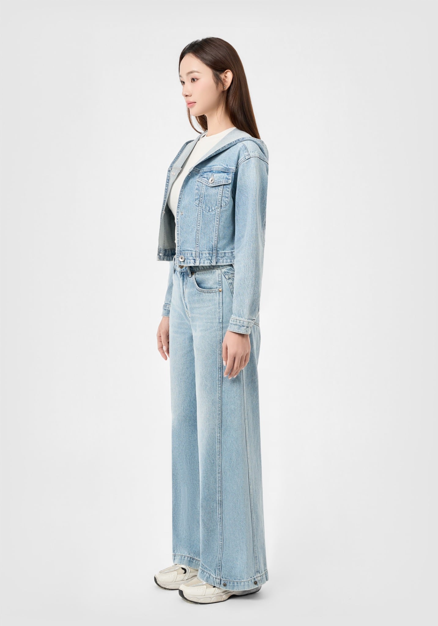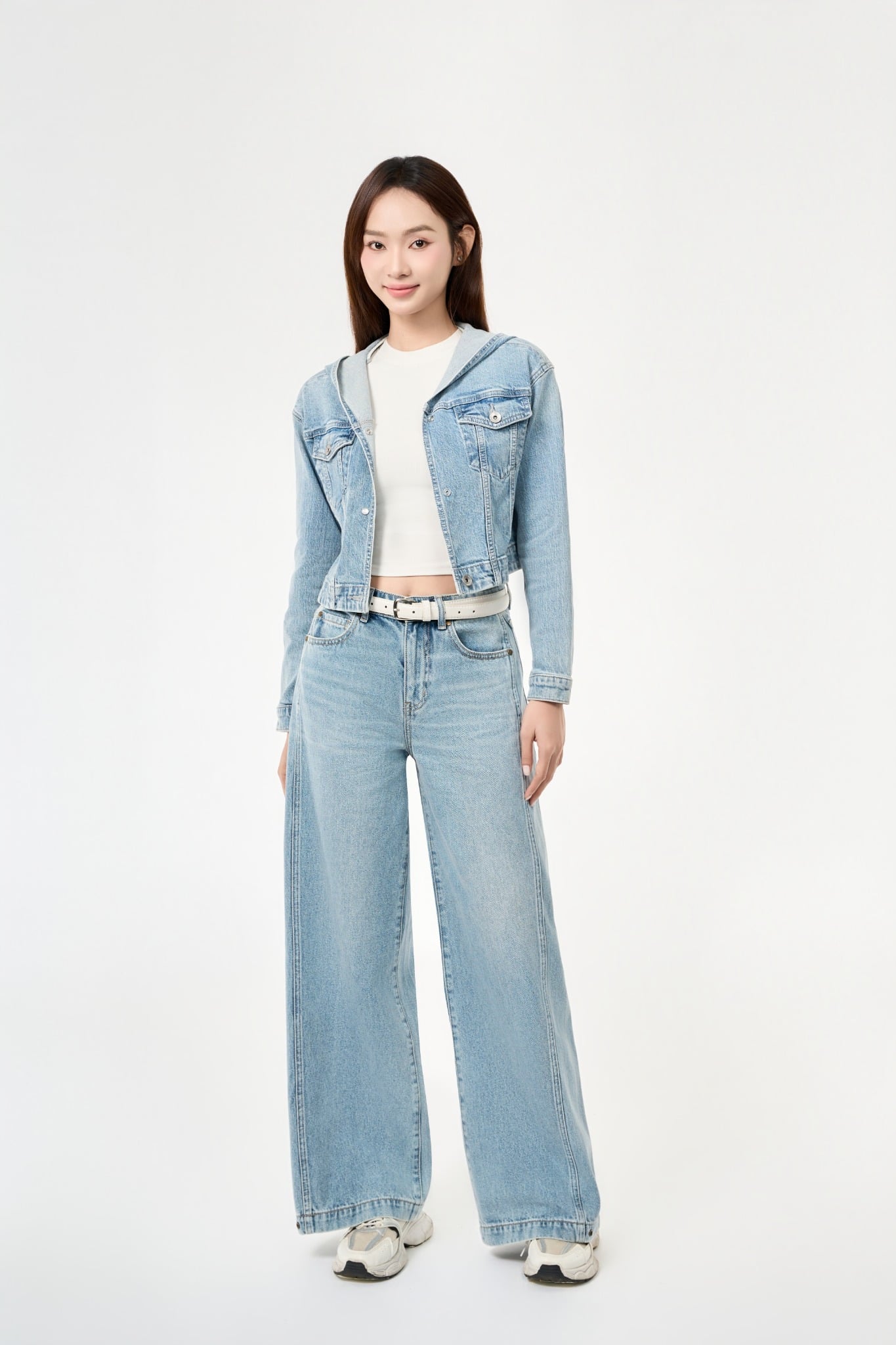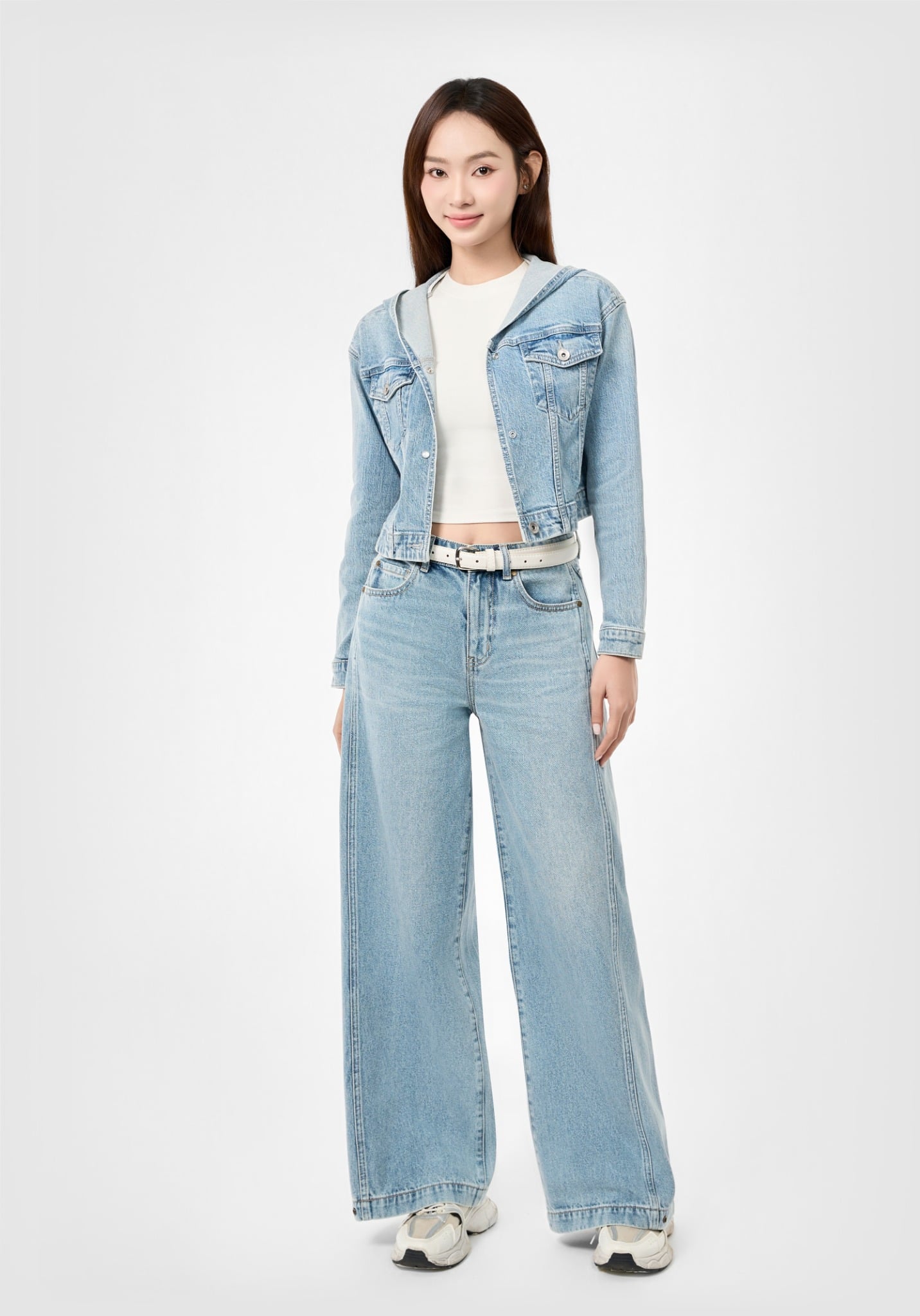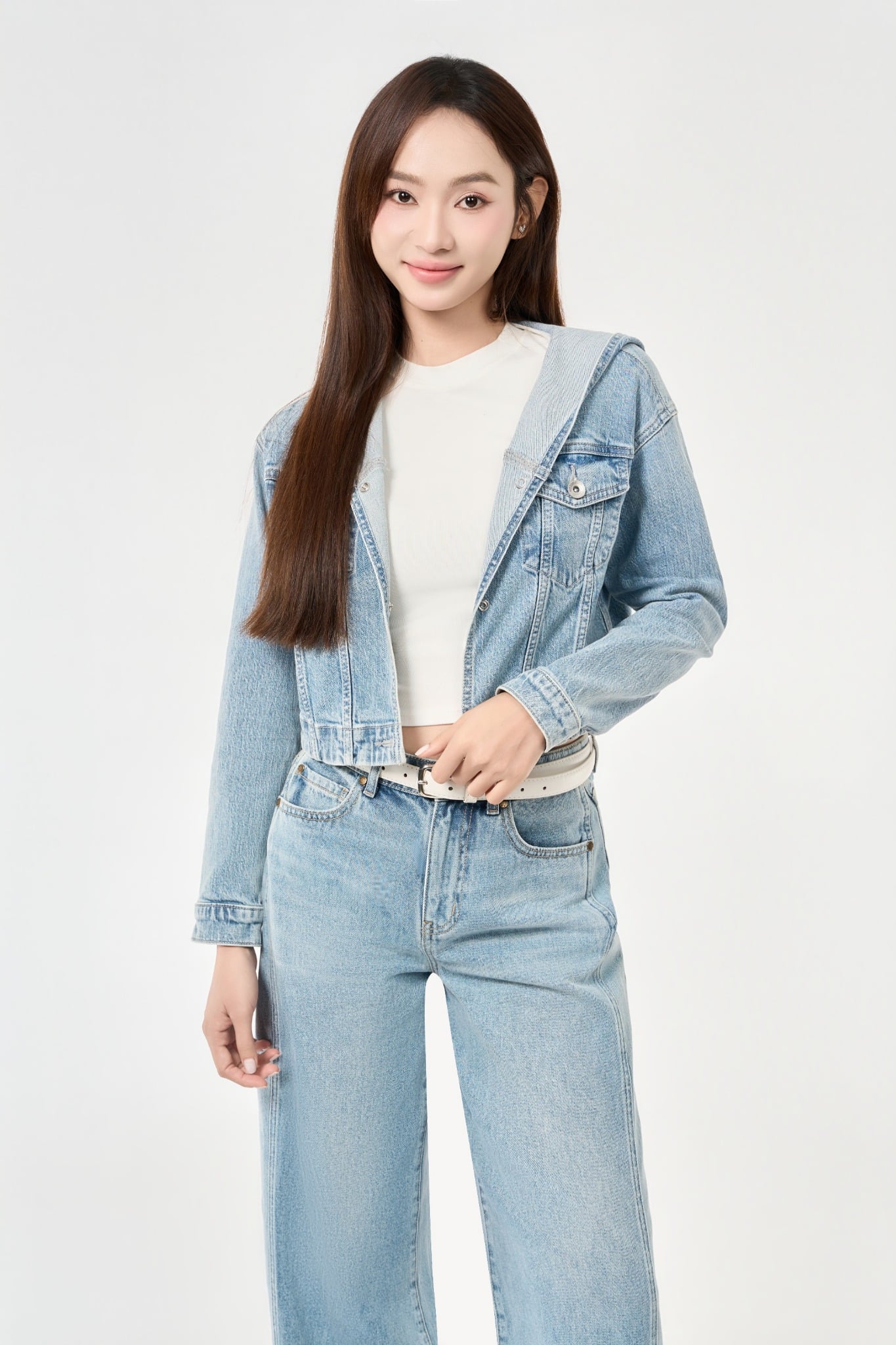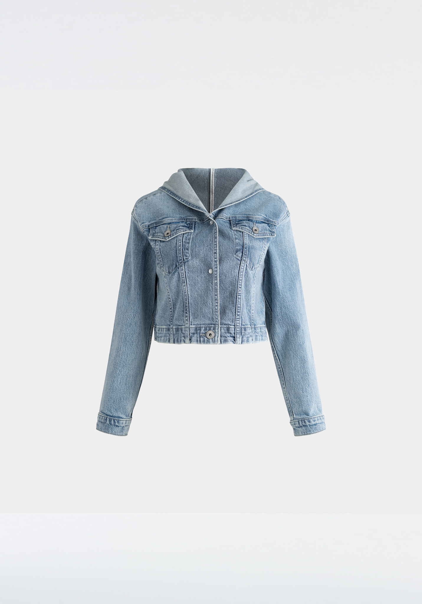 ÁO KHOÁC NỮ DENIM LIGHT BLUE CÓ NÓN FORM CROP