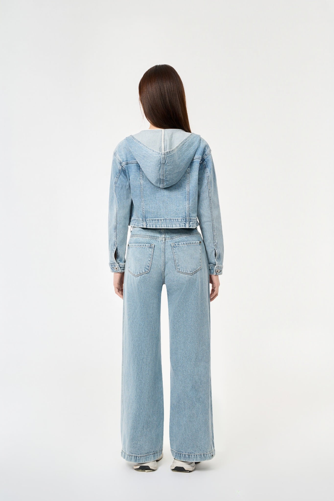 ÁO KHOÁC NỮ DENIM LIGHT BLUE CÓ NÓN FORM CROP - 125WD1042F3