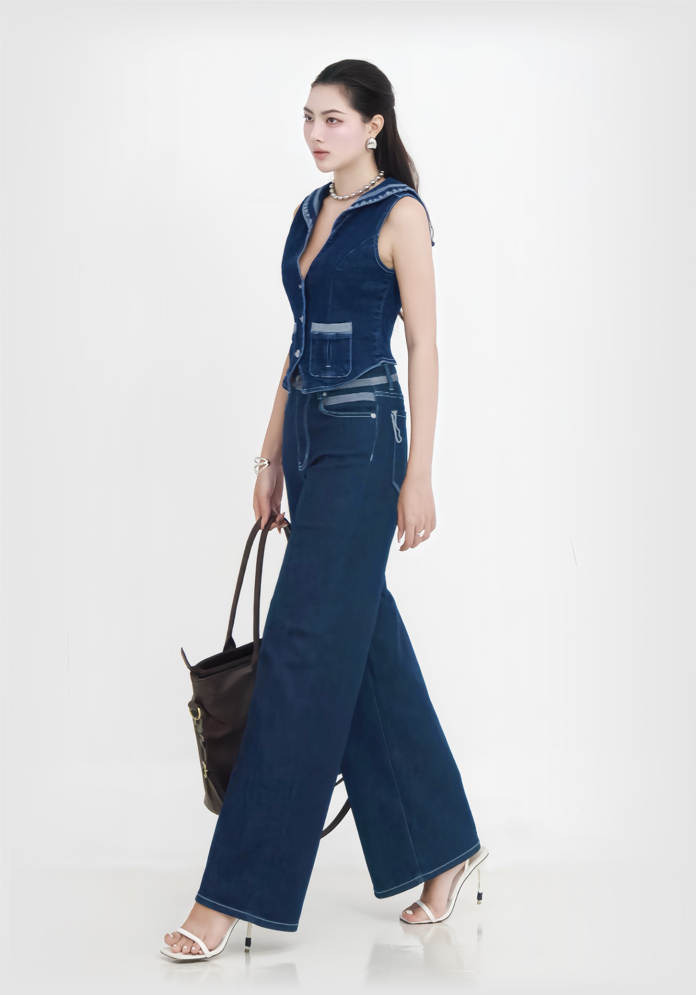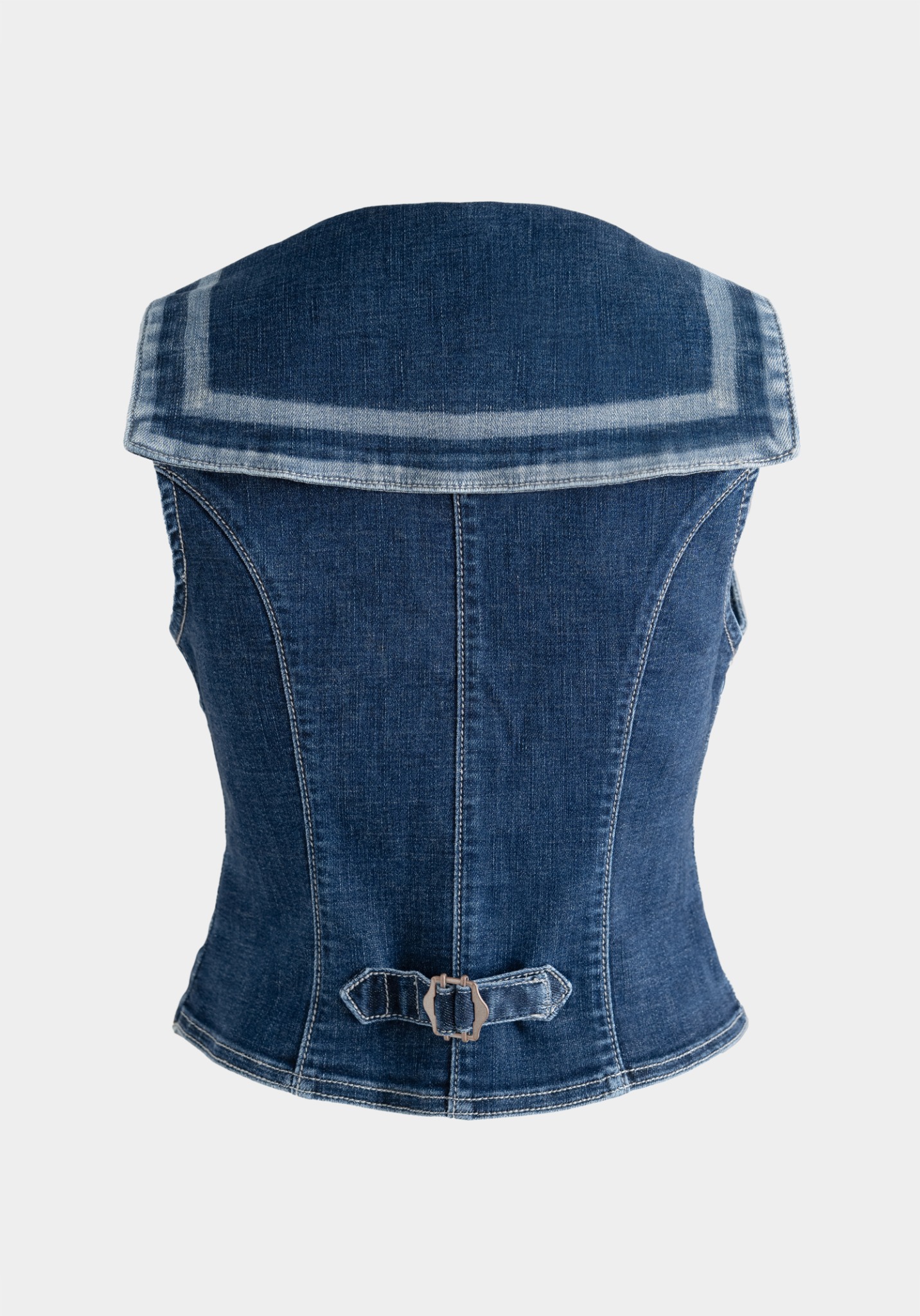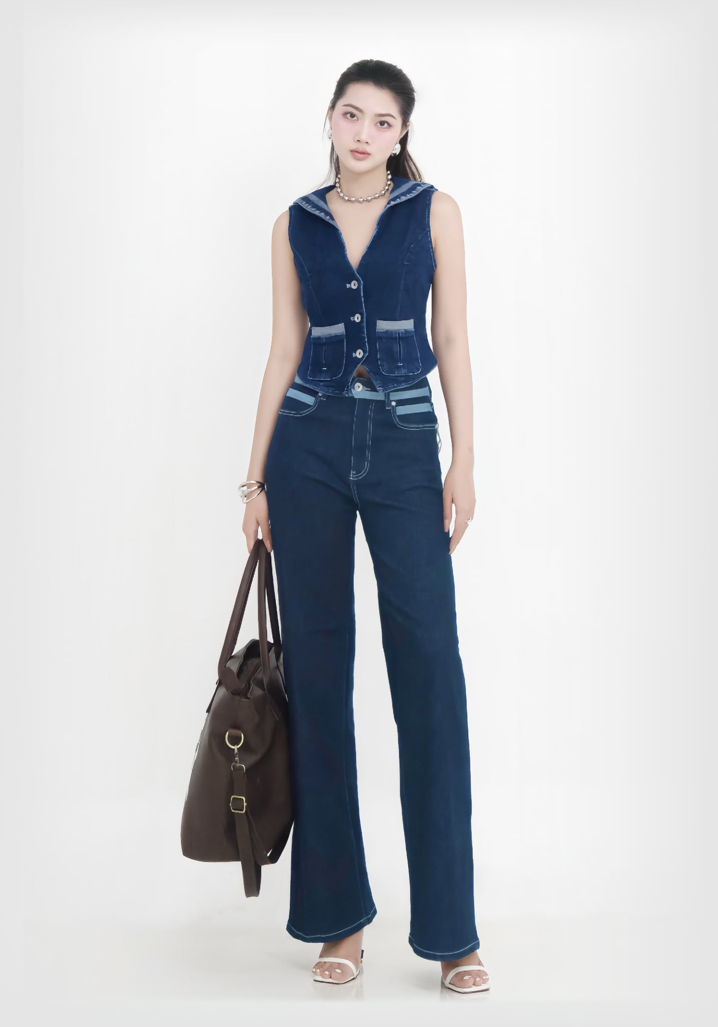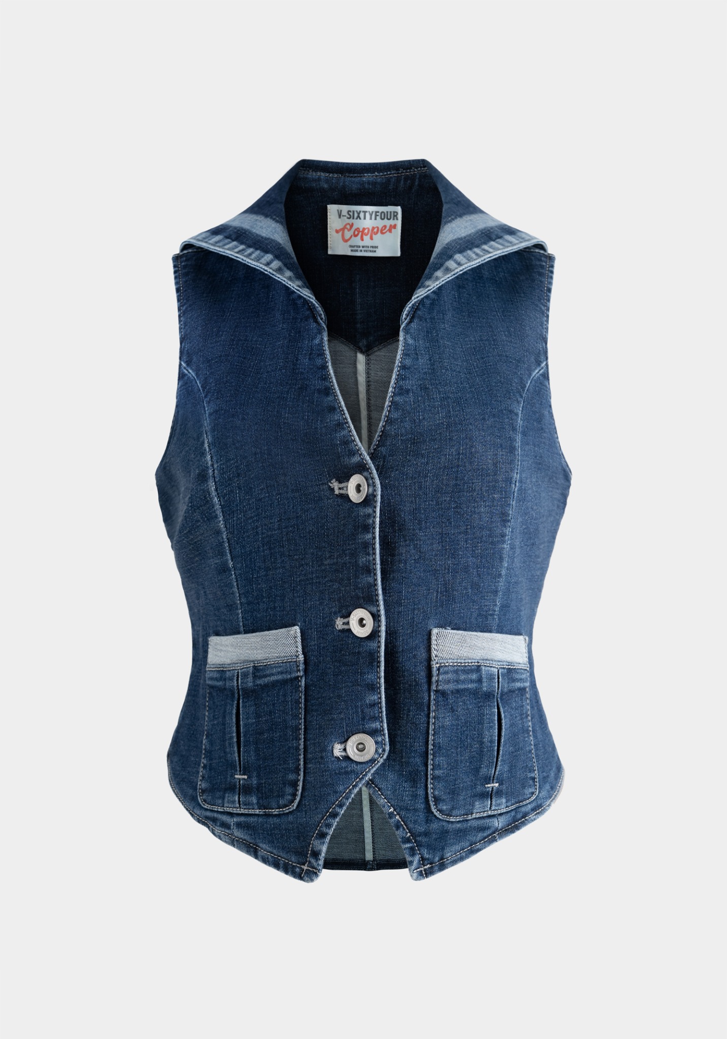 ÁO GILET DENIM MEDIUM BLUE PHONG CÁCH THỦY THỦ (COLAB COPPER DENIM)