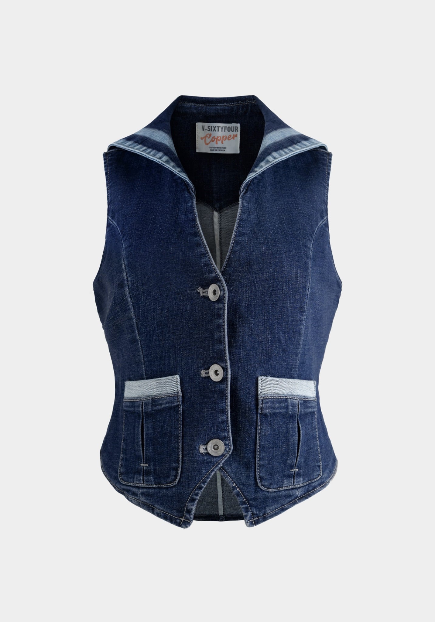 ÁO GILET DENIM DARK BLUE PHONG CÁCH THỦY THỦ (Colab Copper Denim) - 224WD1045F1