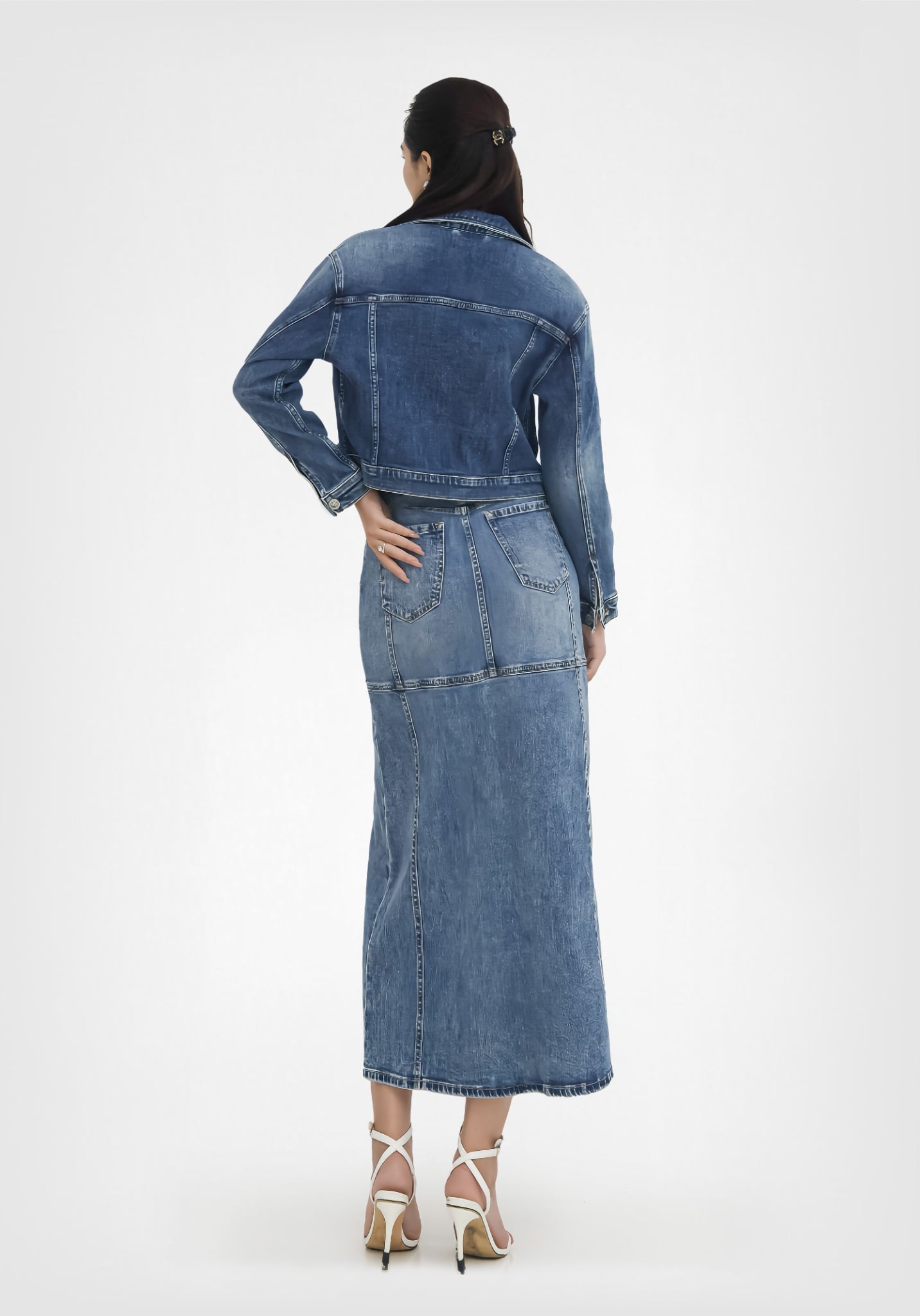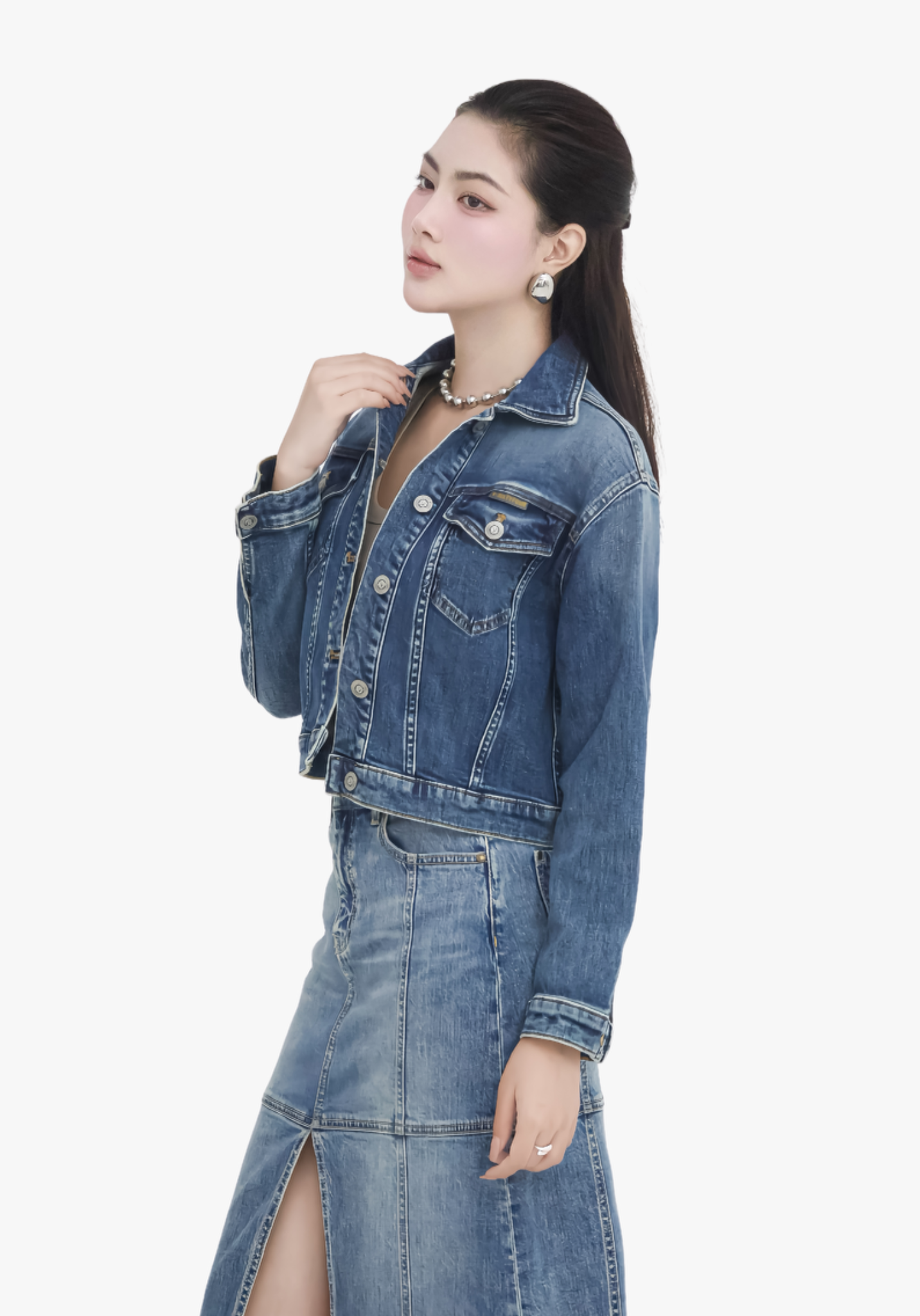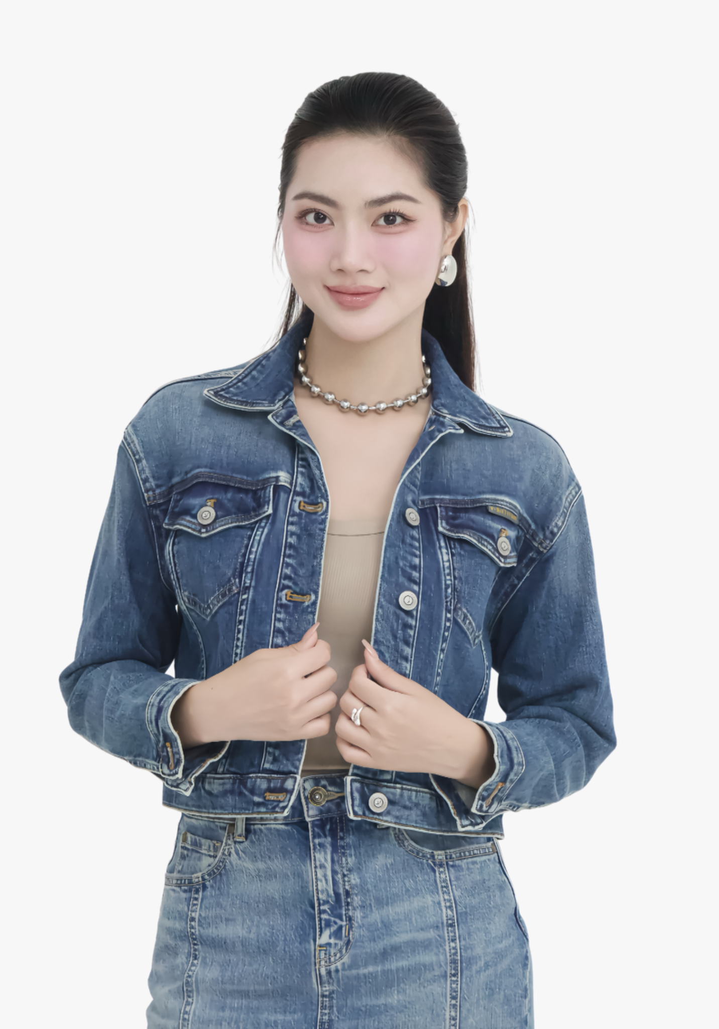 ÁO KHOÁC NỮ DENIM LIGHT BLUE FORM TYPE 3 CROP
