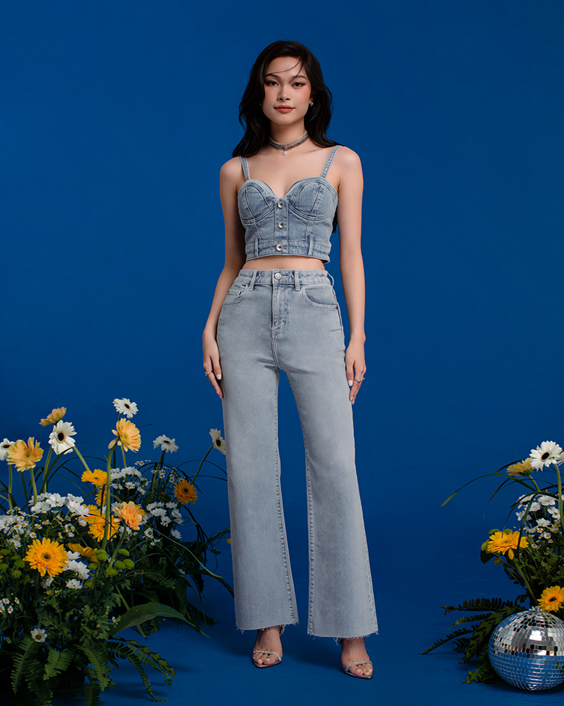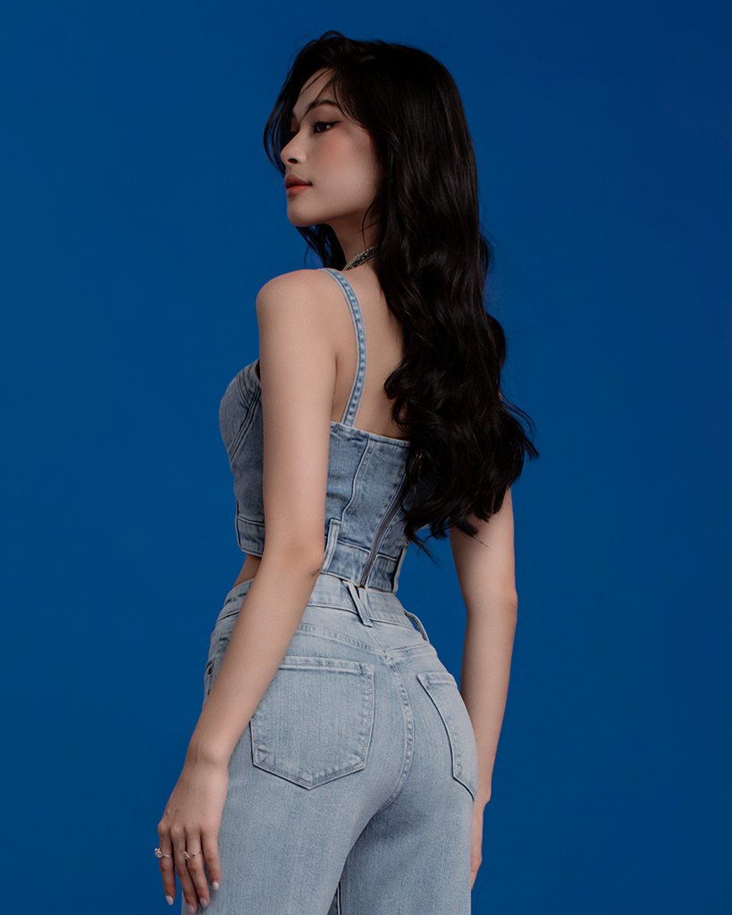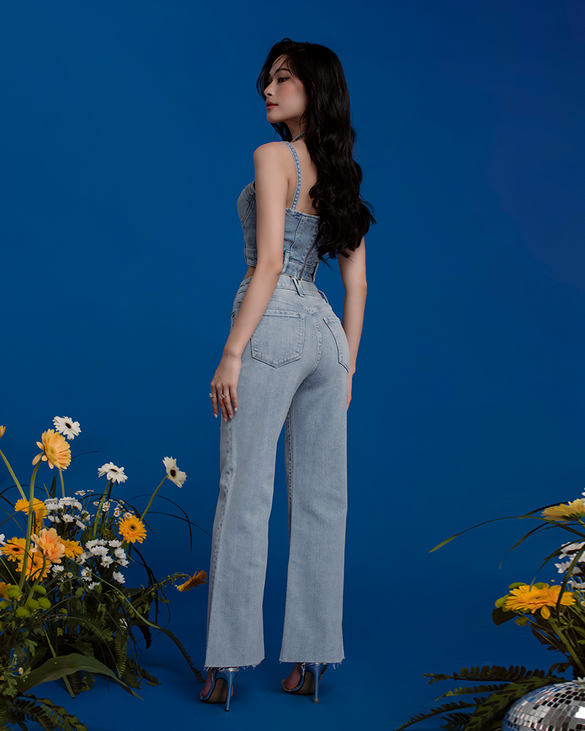 Áo Hai Dây Denim Màu Xanh Ice Bue - Bậc thầy độ dáng vòng 1