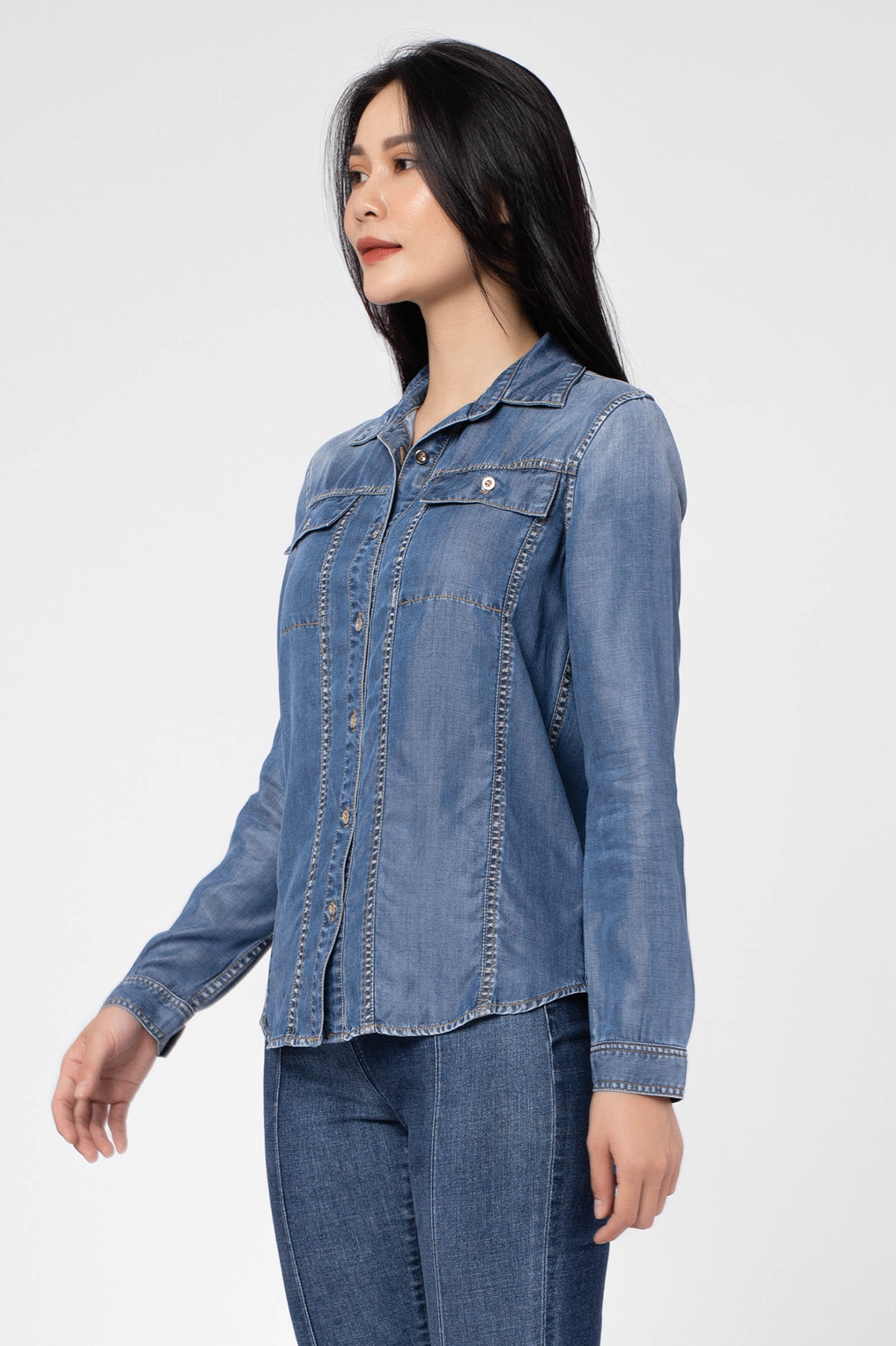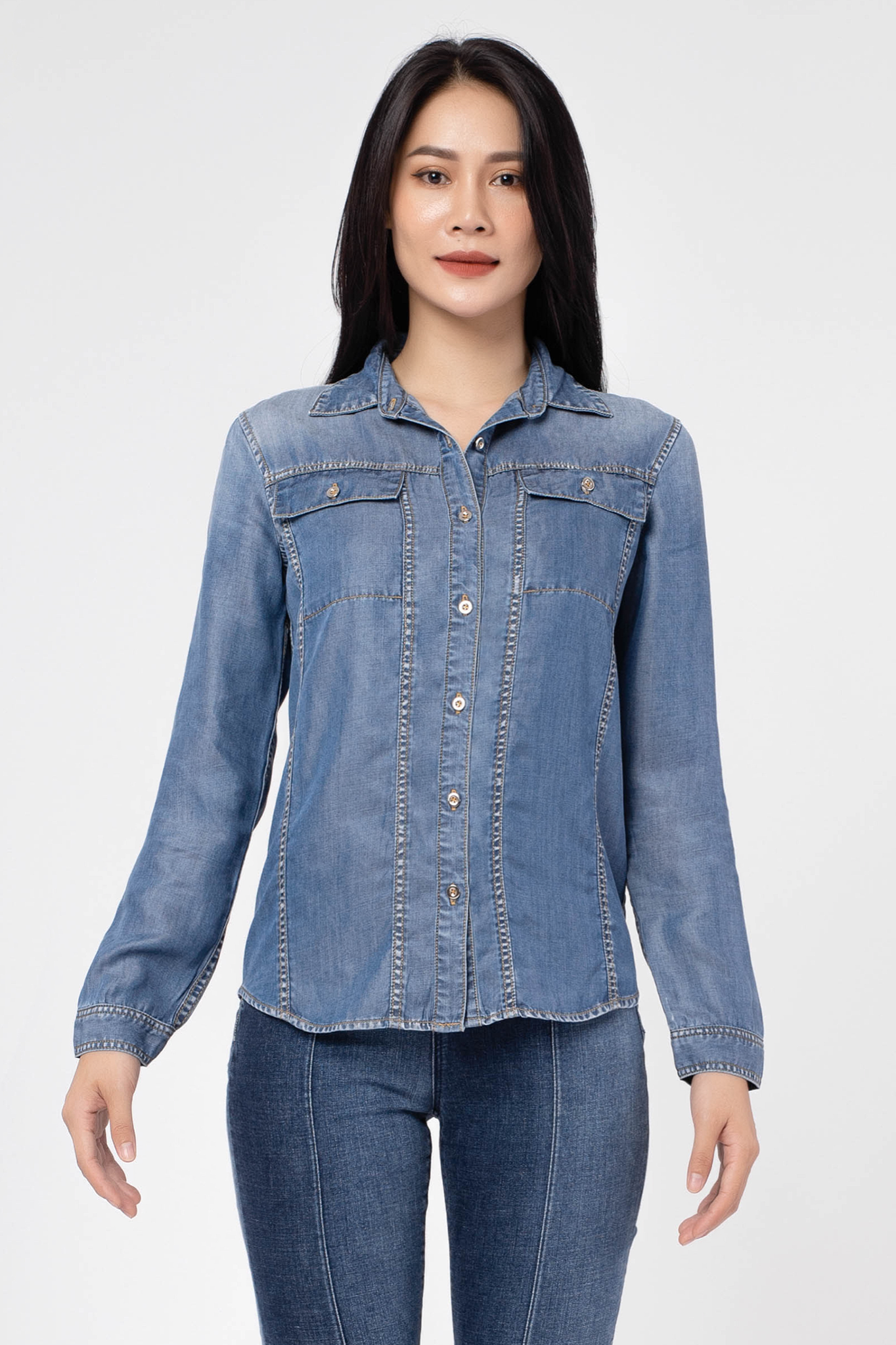 TENCEL SHIRT- Đặc biệt với chất liệu Tencel nhẹ và mát như lụa, chiếc áo sơ mi này sẽ nâng niu từng centimet làn da bạn. Càng chất hơn khi bạn phối cùng skinny jeans hay denim shorts để tạo nên phong cách denim-on-denim thời trang. Bạn có thể kết hợp thêm phụ kiện như mắt kính bản to, kính mát retro, hoặc một chiếc mũ phớt để bộ đồ thêm thú vị.