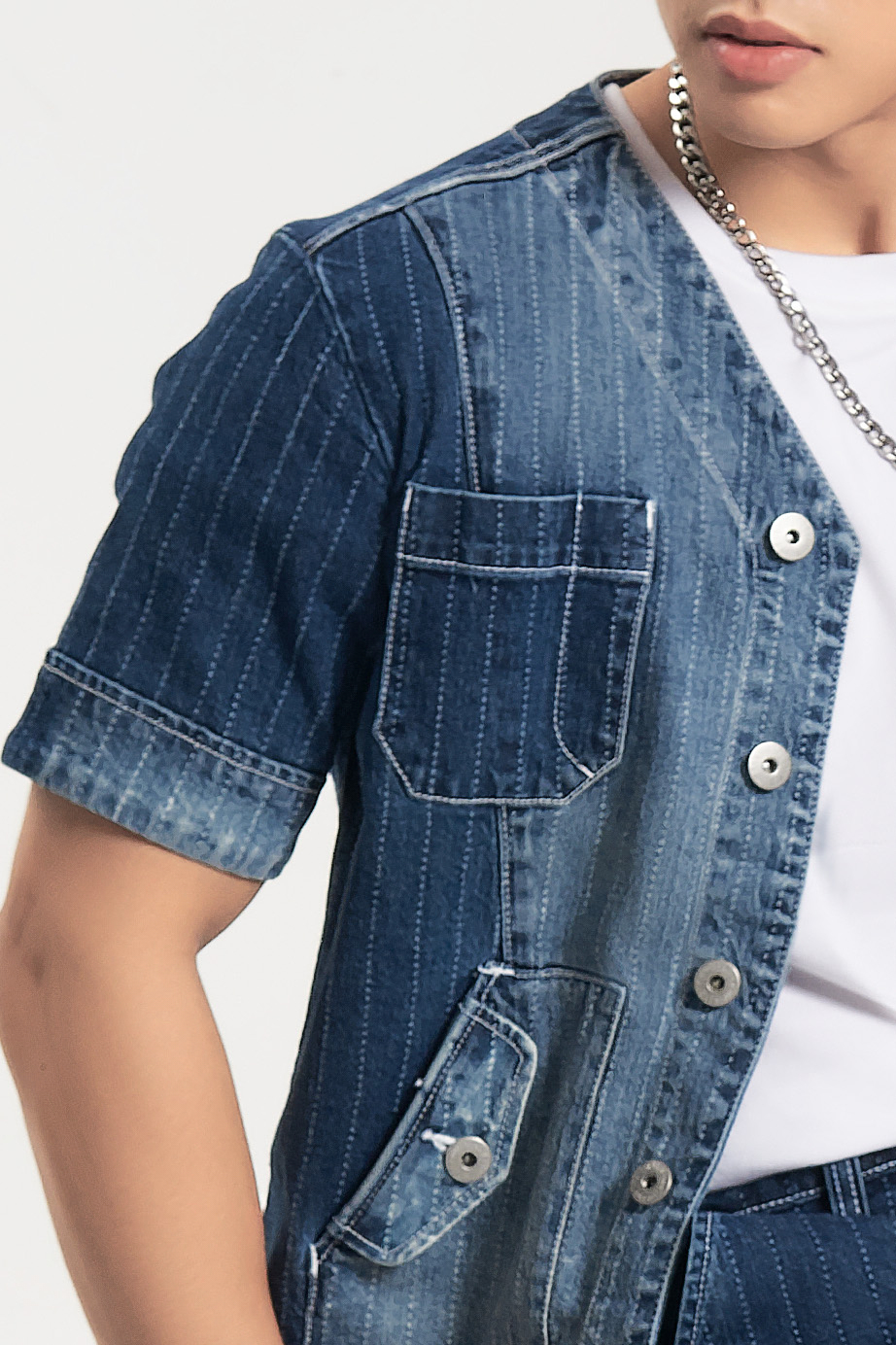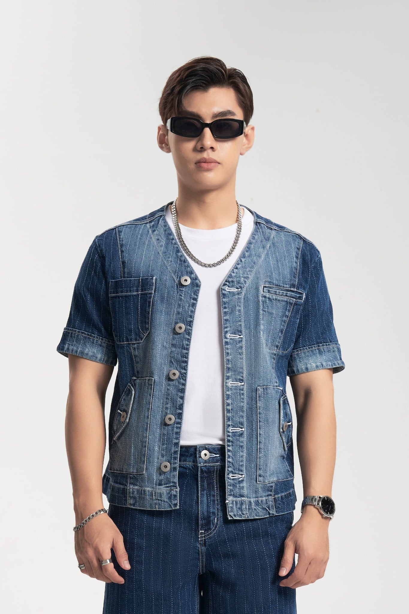 Áo Sơ Mi Nam Cổ V Phong Cách Bóng Chày - Men's V-Neck Baseball Shirt - 223MD3033F1