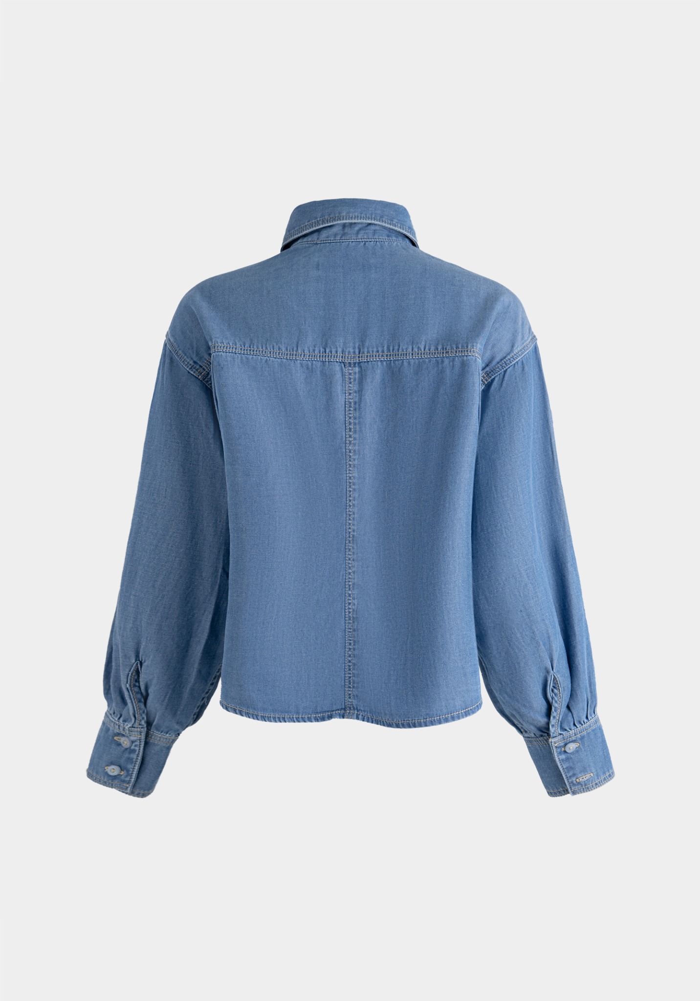 Áo Sơ Mi Denim Xanh Nhạt Form Crop Rộng Dài Tay - 224WD2034B1