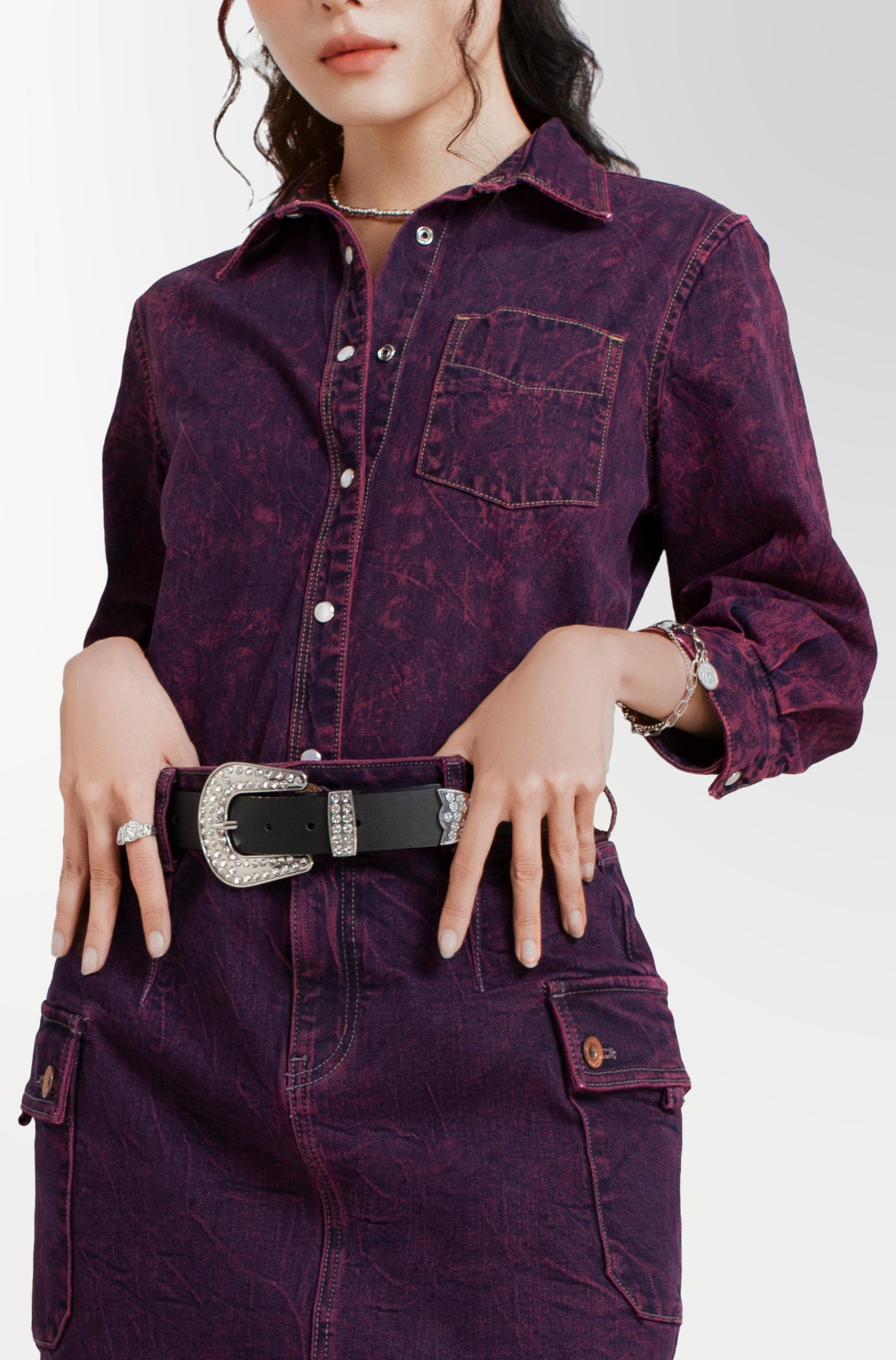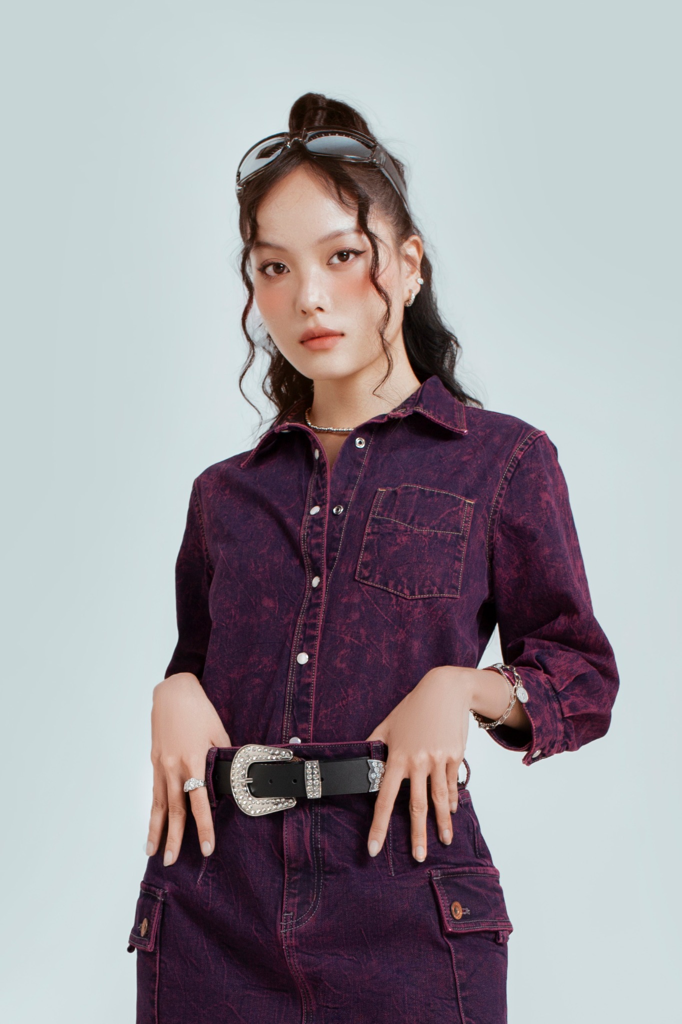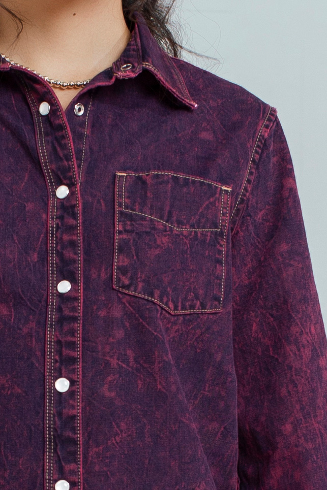 Áo Sơ Mi Nữ Dáng Vừa Nhuộm Phun Màu Tím - Women's Regular Fit Purple Shirt With Dyed Scarf Tie - 123WD1039F1