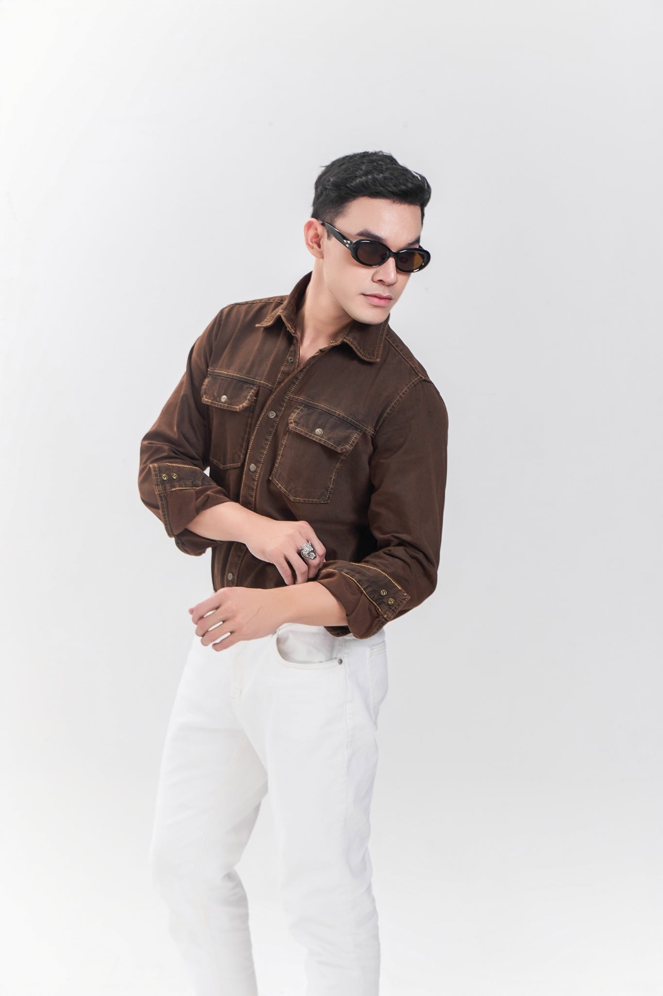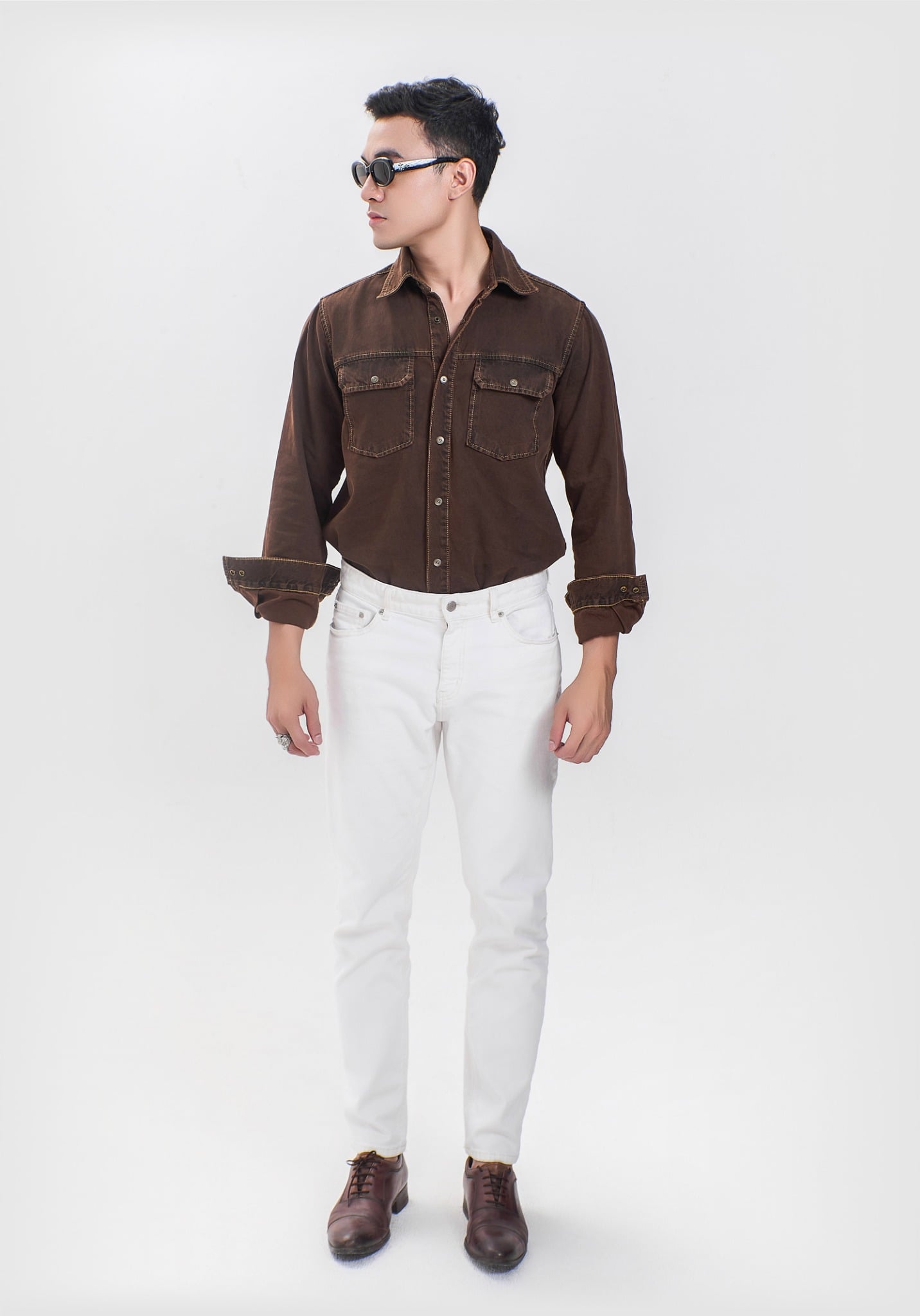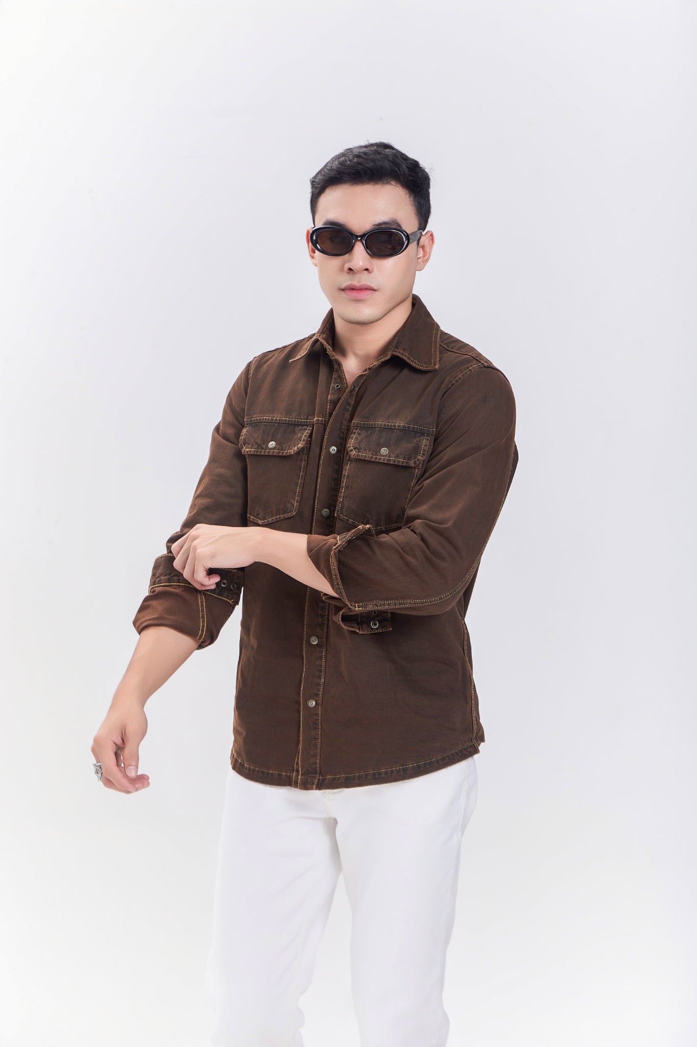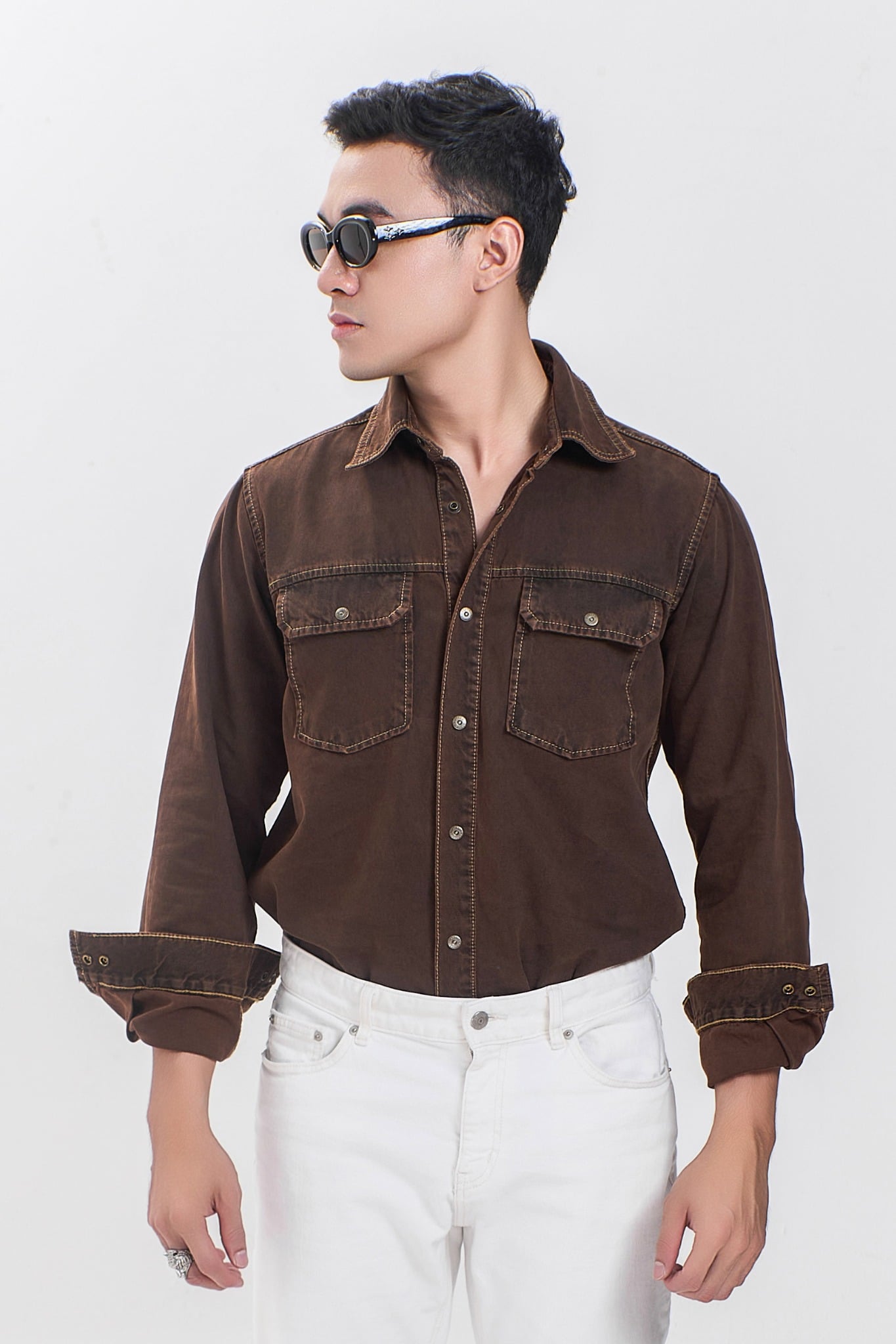 Áo sơ mi tay dài dáng vừa nhuộm nâu độc quyền của V-SIXTYFOUR