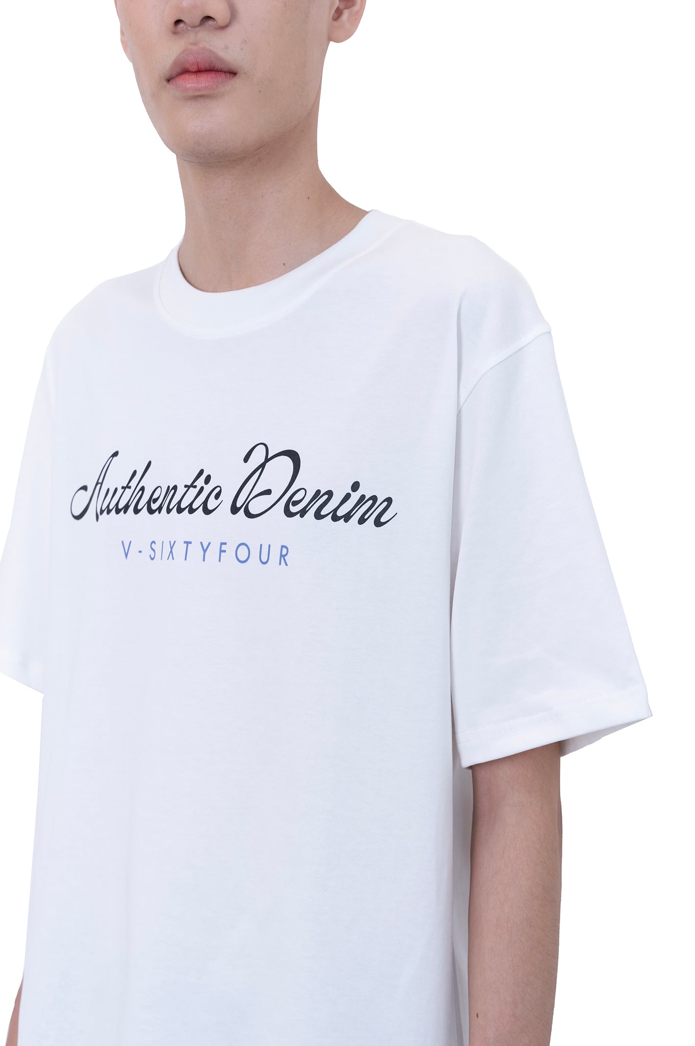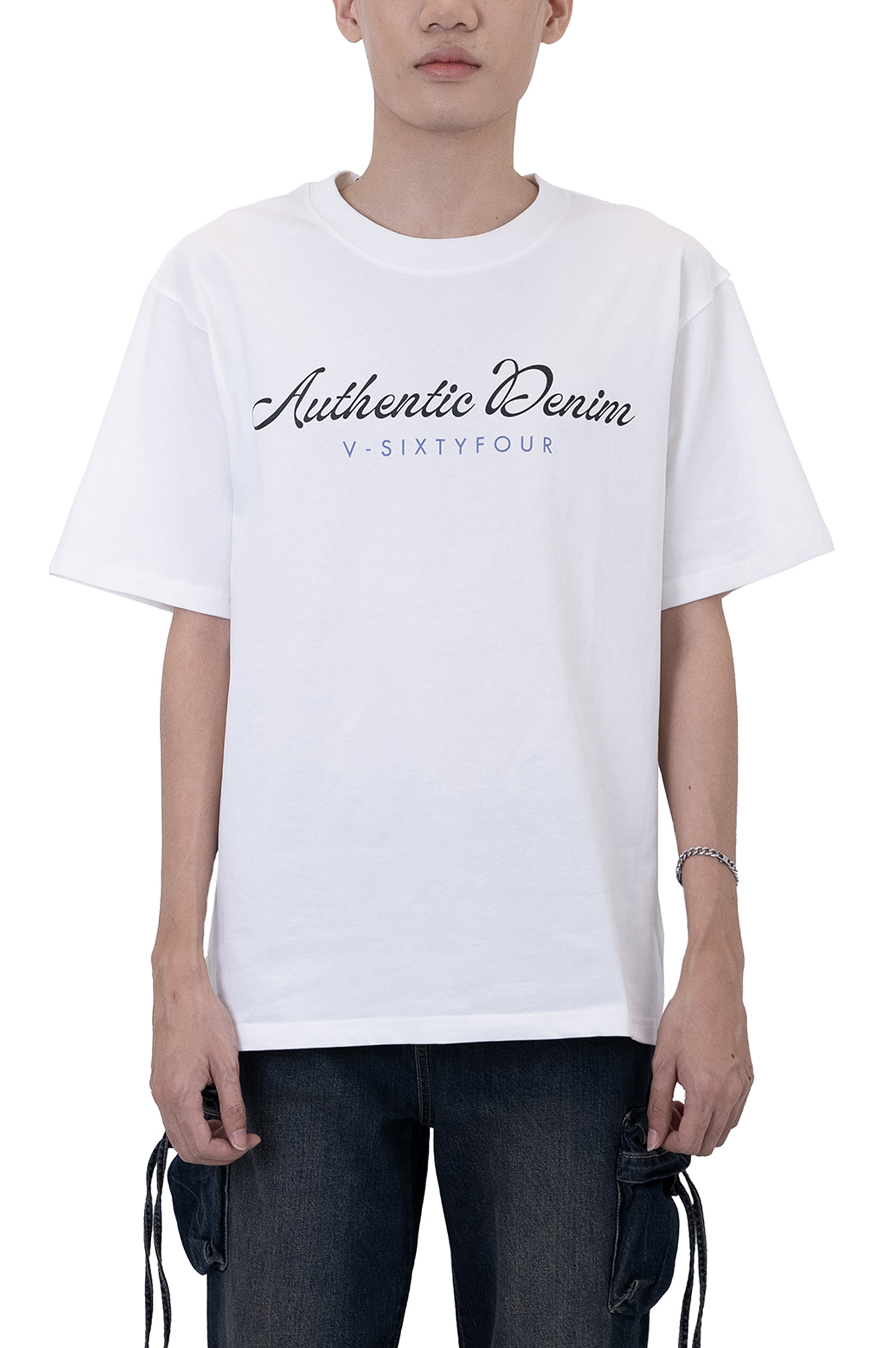 Áo Thun Nam Cotton Màu Trắng Hoạ Tiết Typo Authentic Denim - 224MN3023B3