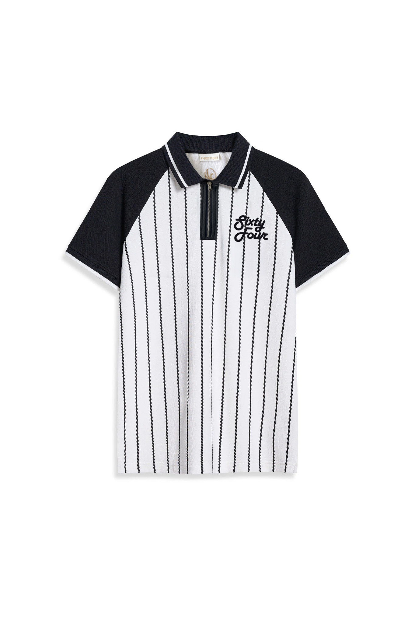 Áo Polo Nam Phối Hoạ Tiết Kẻ Sọc Dọc Tay Áo Raglan Form Regular Màu Trắng Đen - 224MN3025F1