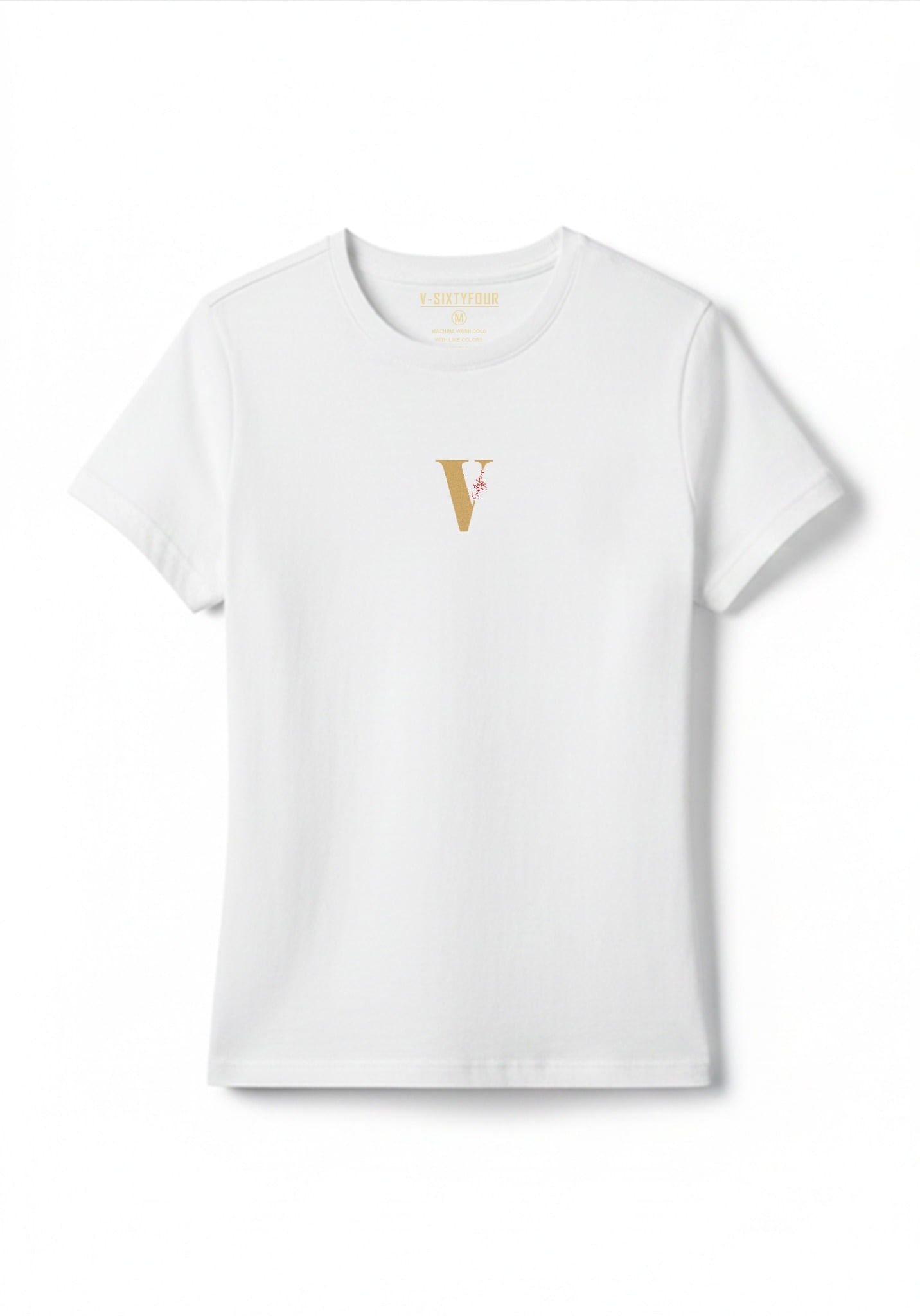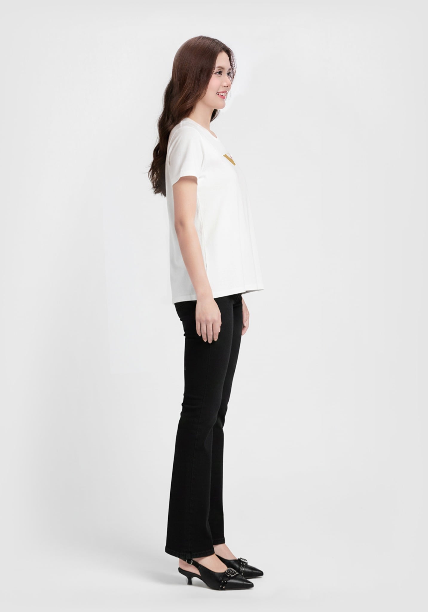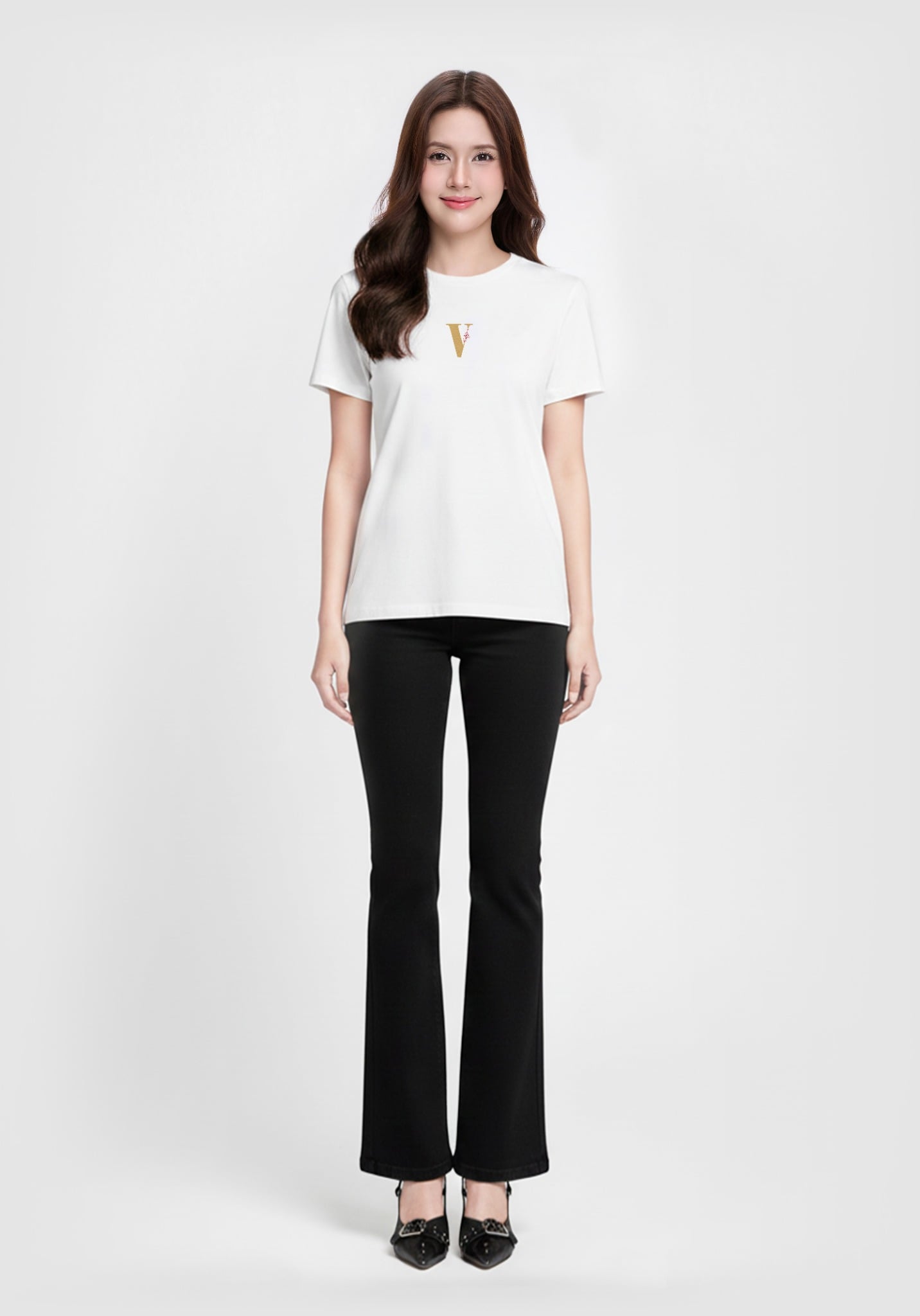 ÁO THUN NỮ DÁNG REGULAR MÀU TRẮNG IN CHỮ V