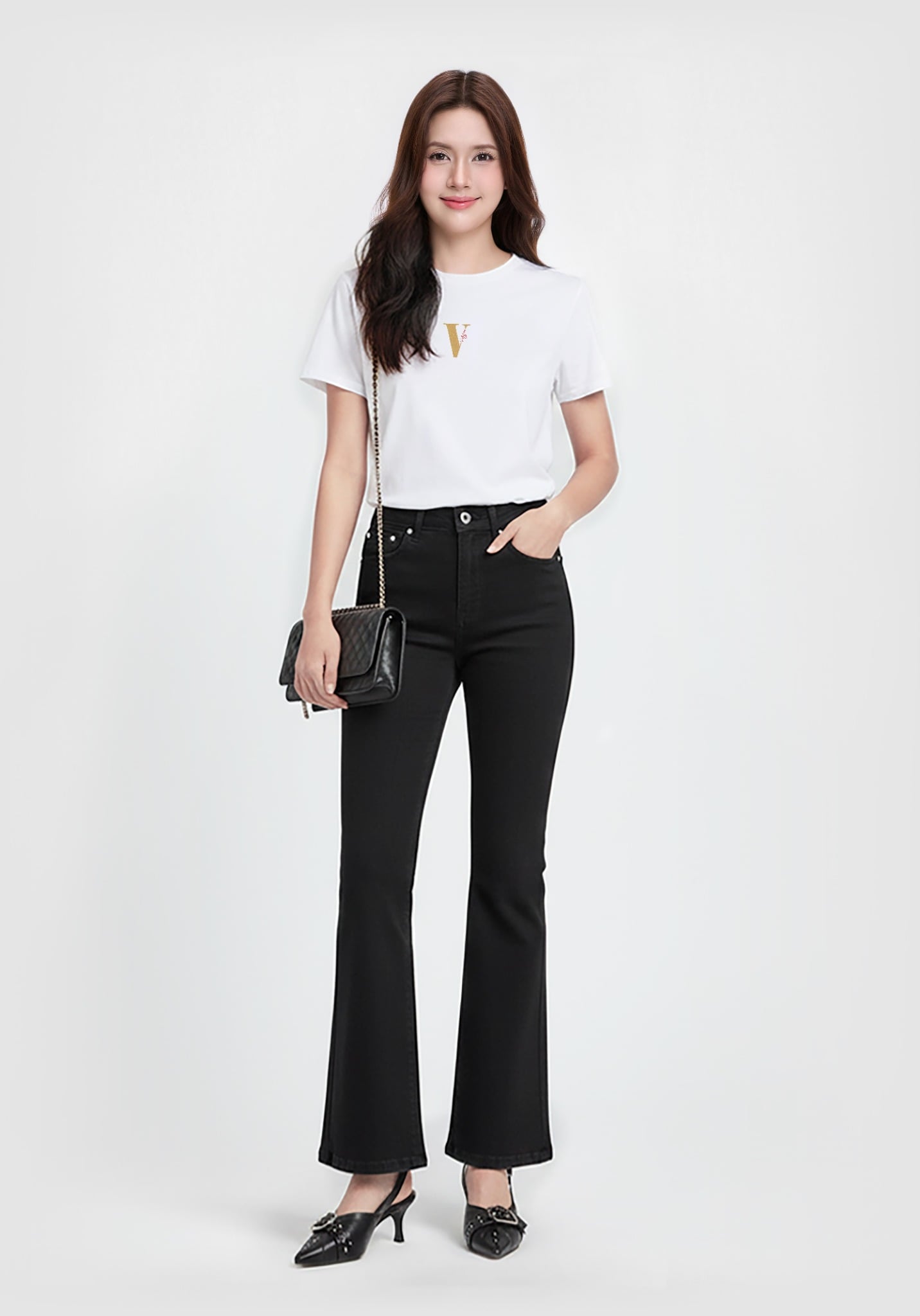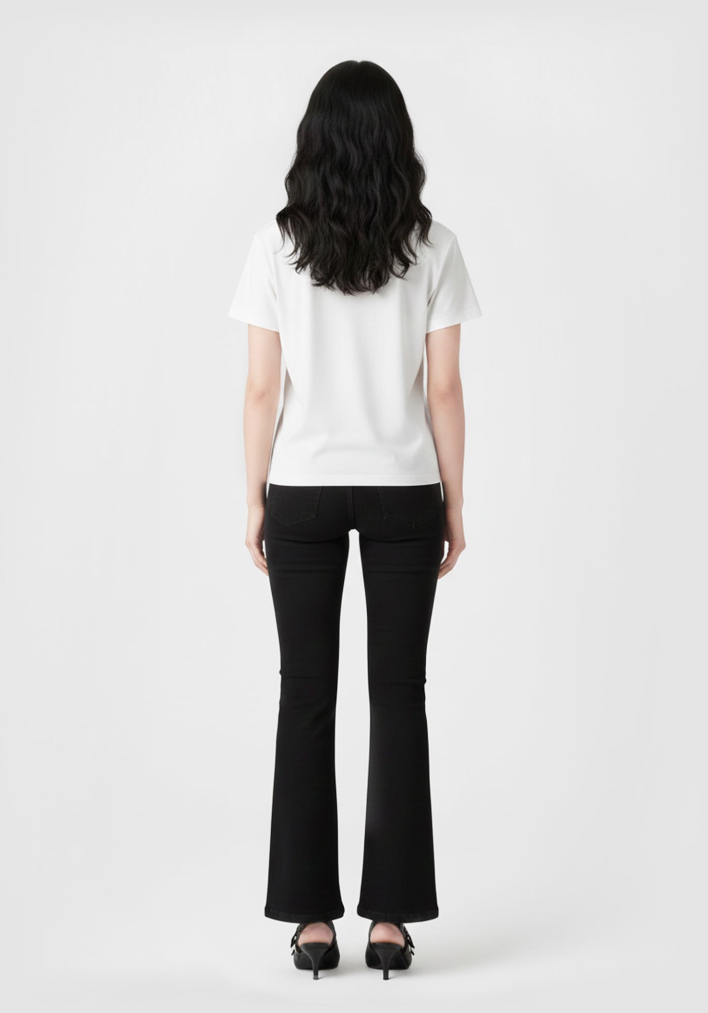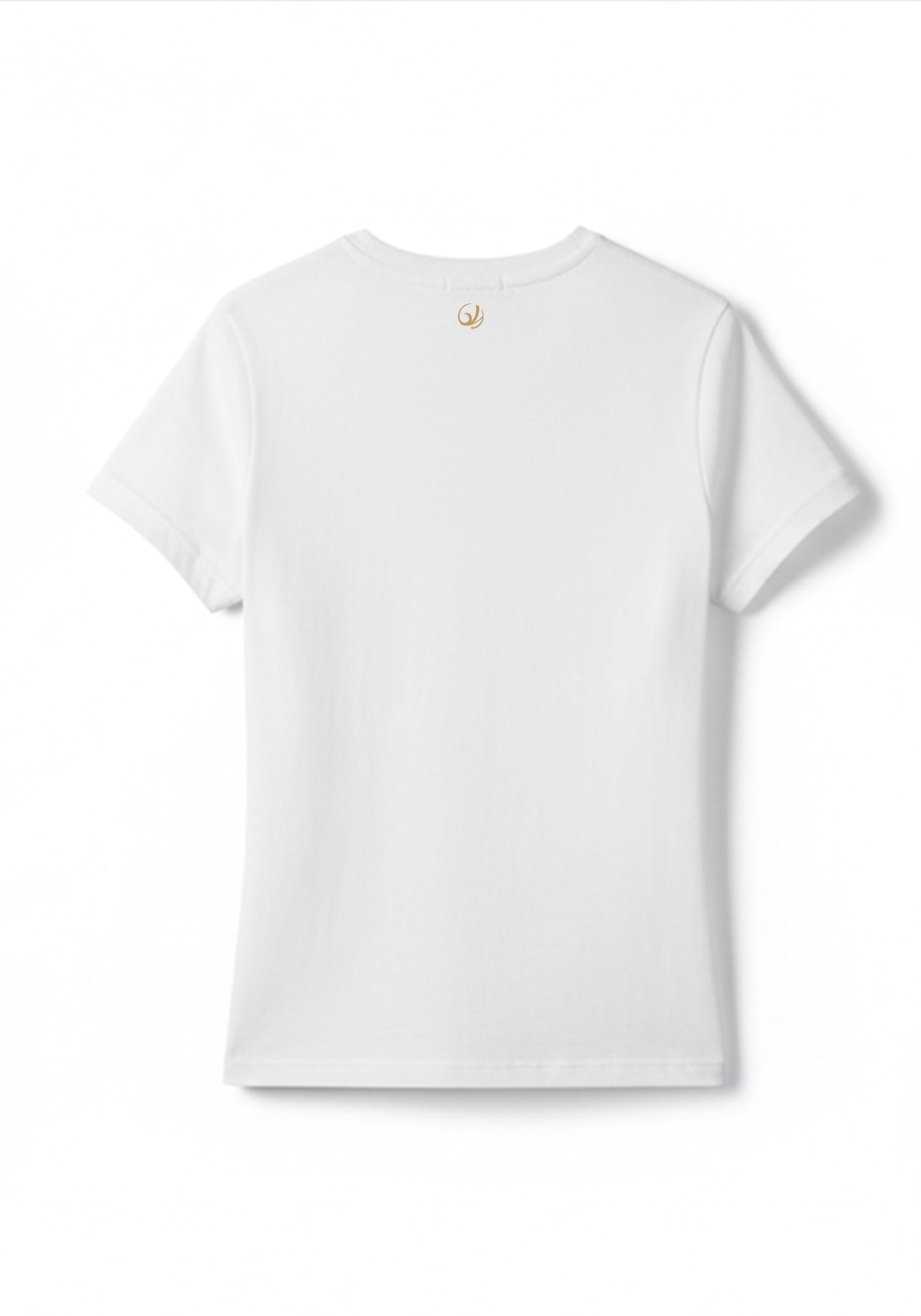ÁO THUN NỮ DÁNG REGULAR MÀU TRẮNG IN CHỮ V