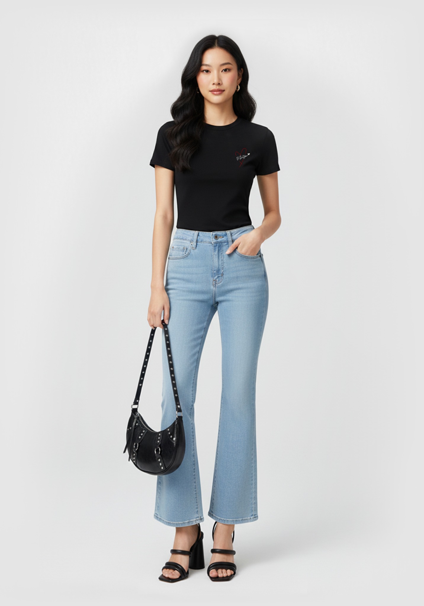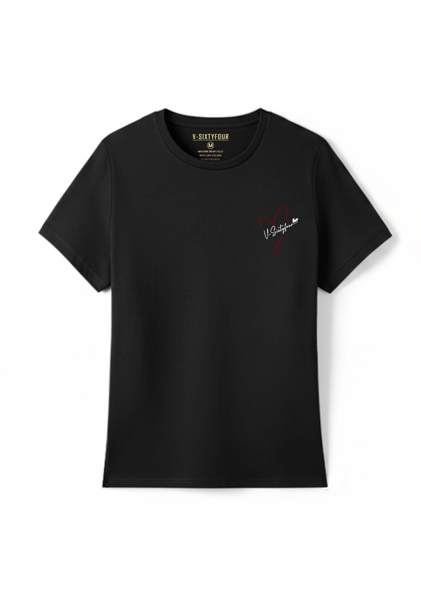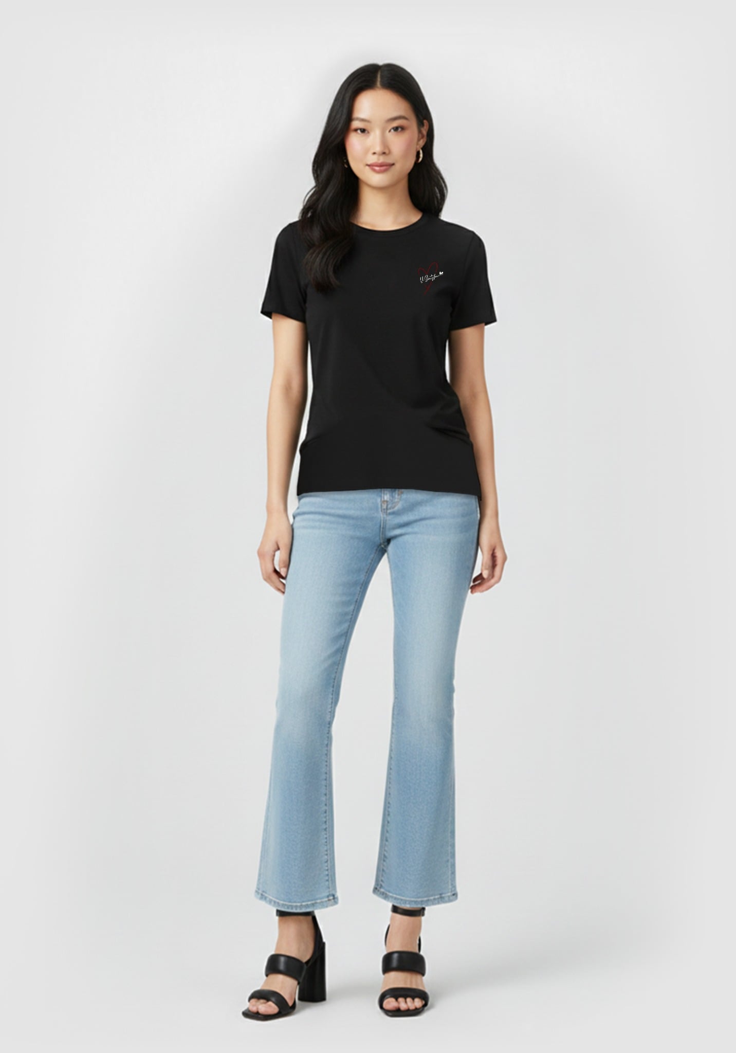 ÁO THUN NỮ DÁNG REGULAR MÀU ĐEN IN CHỮ KÝ TRÁI TIM