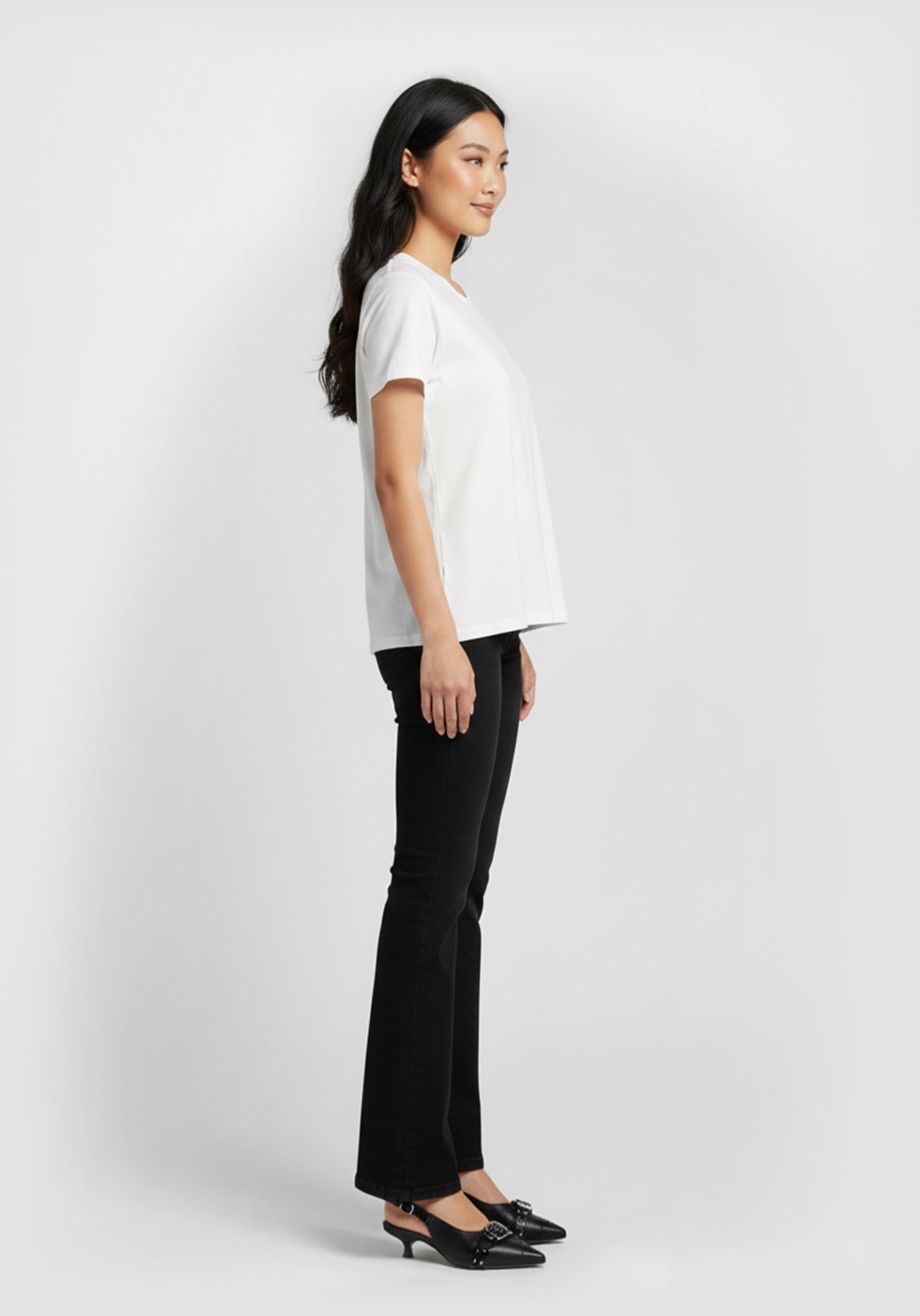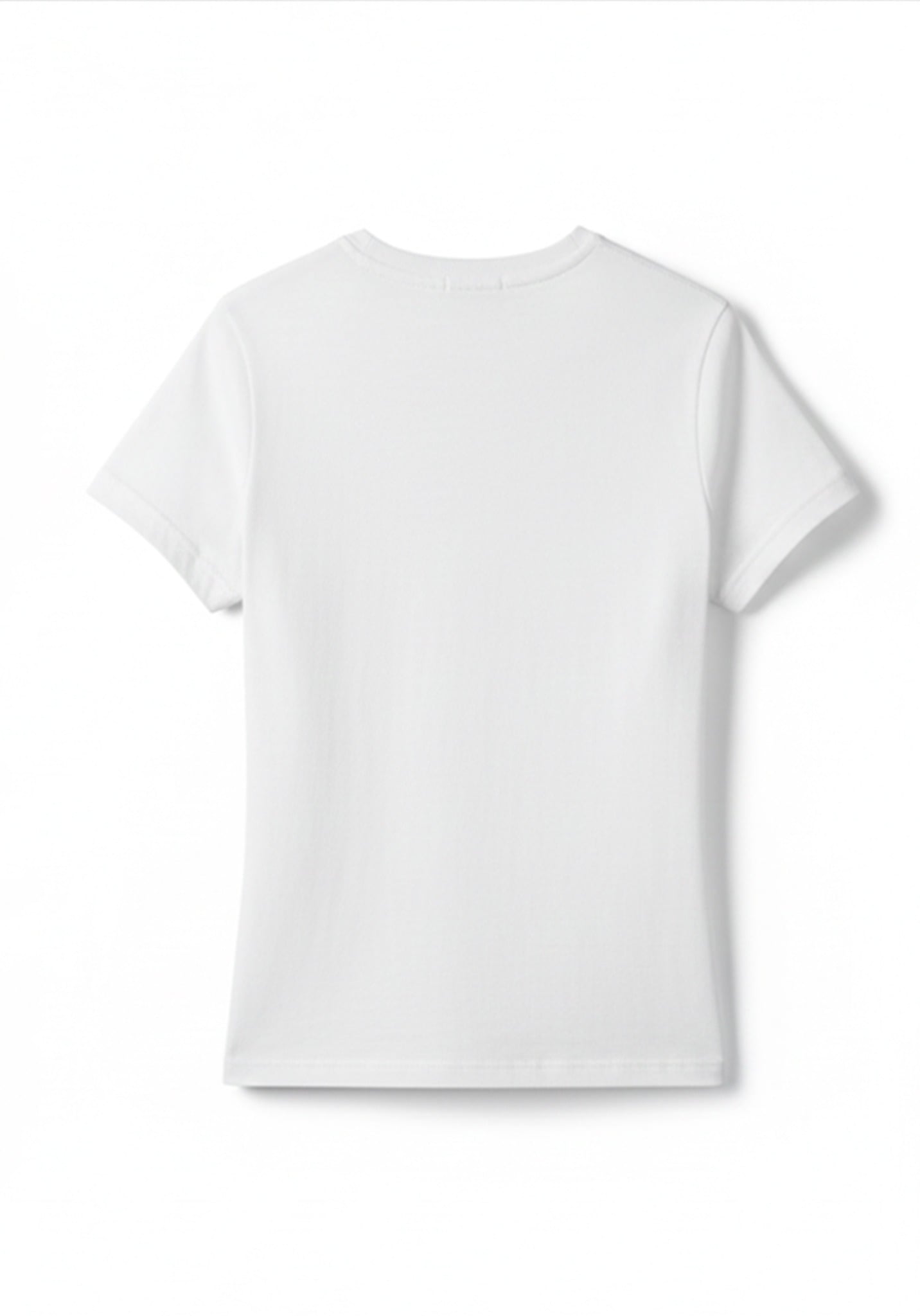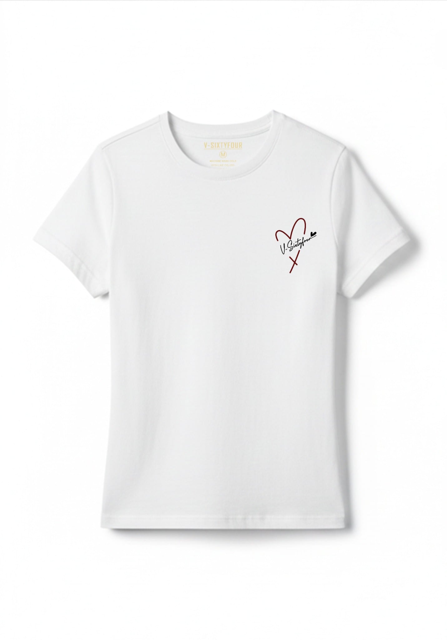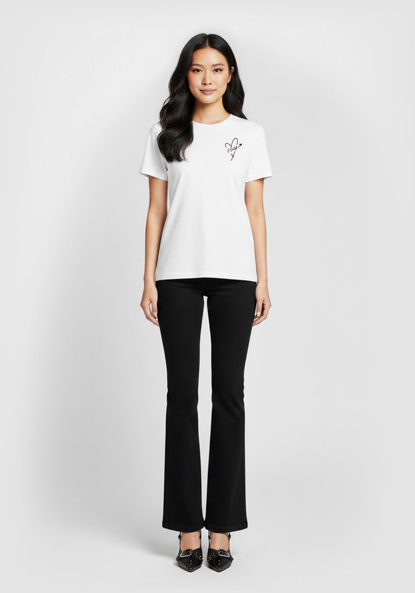 ÁO THUN NỮ DÁNG REGULAR MÀU TRẮNG IN CHỮ KÝ TRÁI TIM