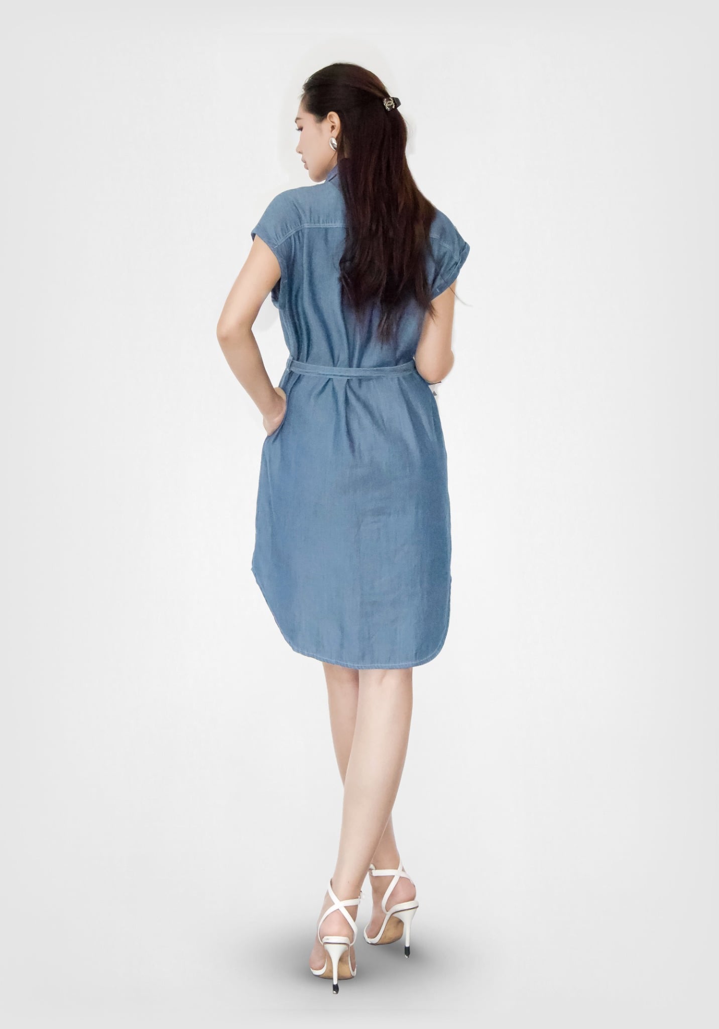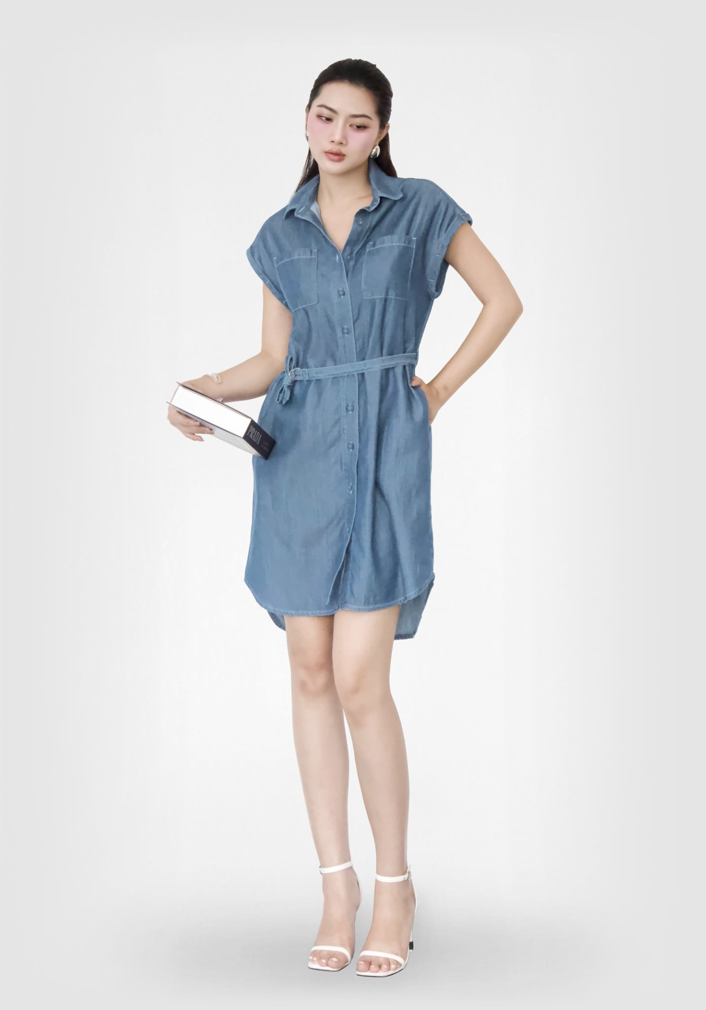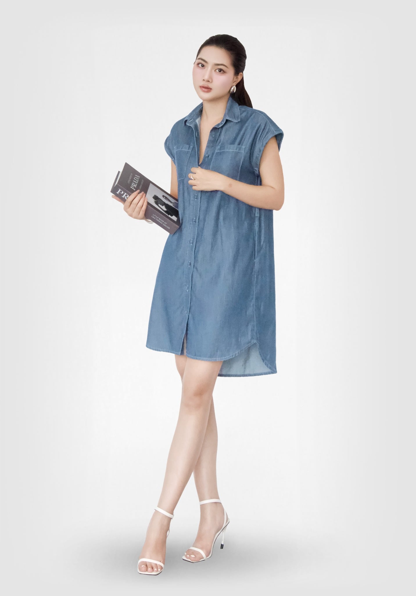 ĐẦM SƠ MI DENIM LIGHT BLUE  FORM OVERSIZE - 125WD2124B1