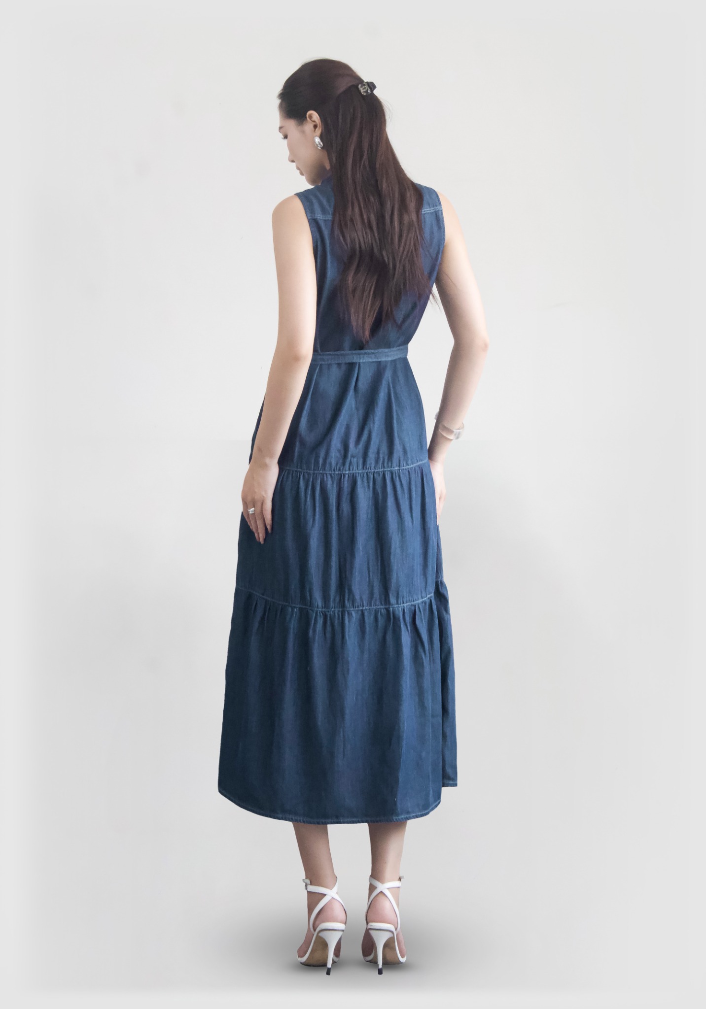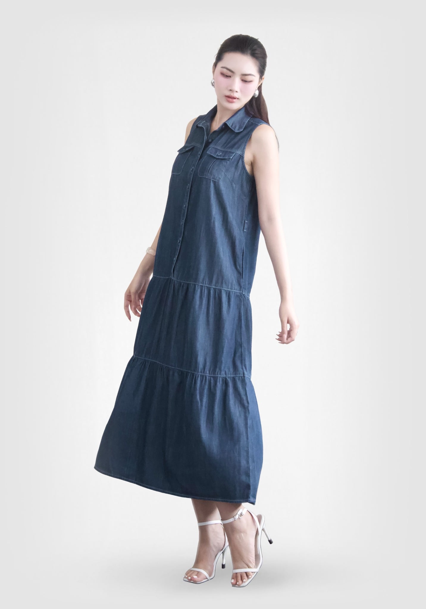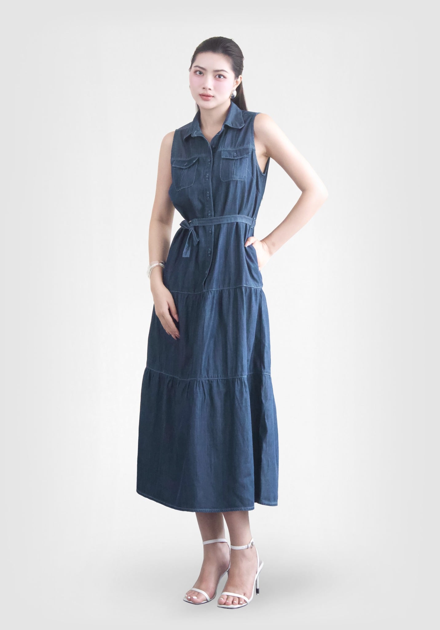 ĐẦM DENIM DARK BLUE FORM MAXI KHÔNG TAY
