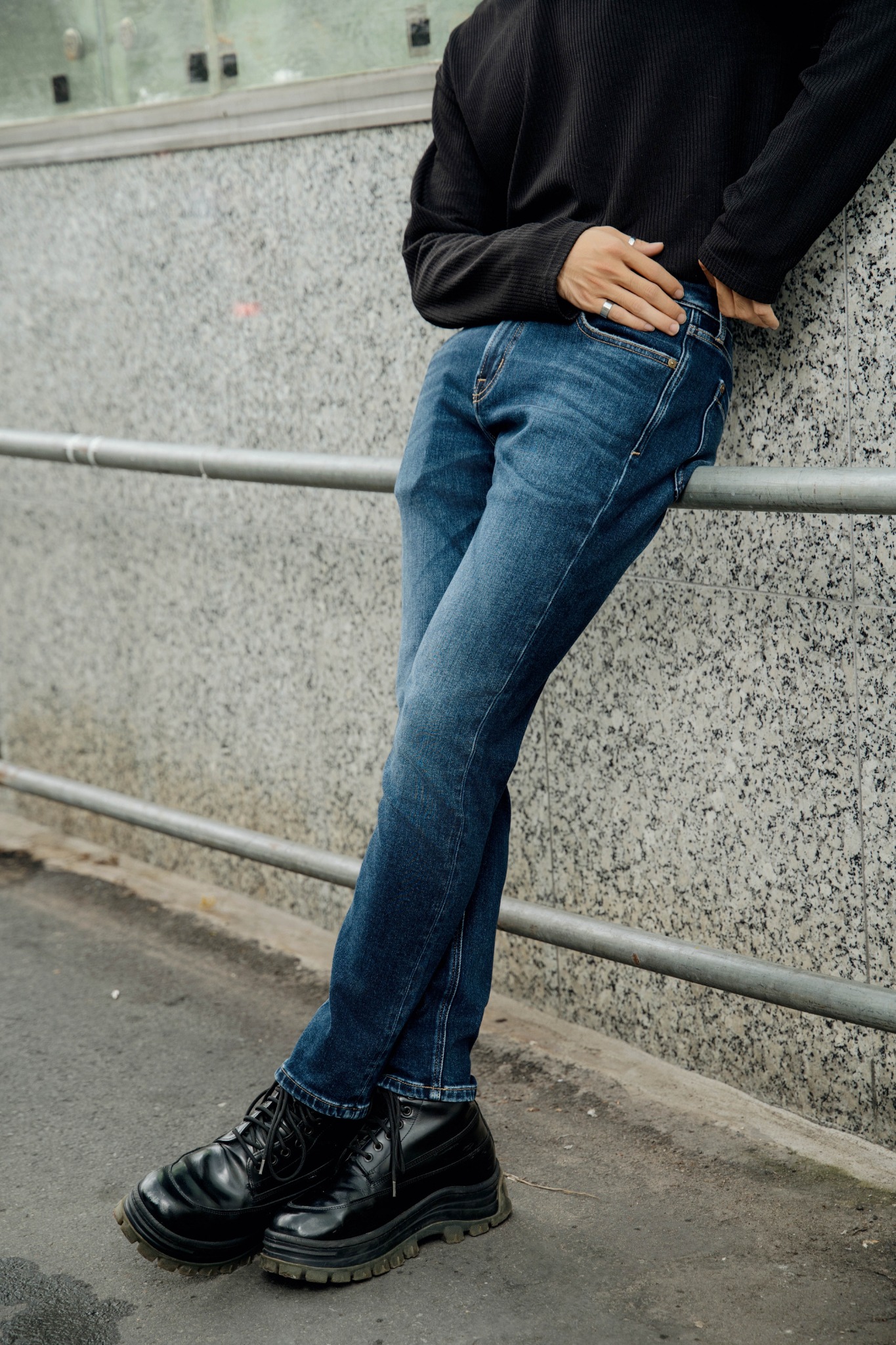 + Vải denim mềm mịn với 93% Cotton, 5% Poly và 2% Elastane giúp co giản thoải mái, giảm nhăn và đàn hồi tốt.