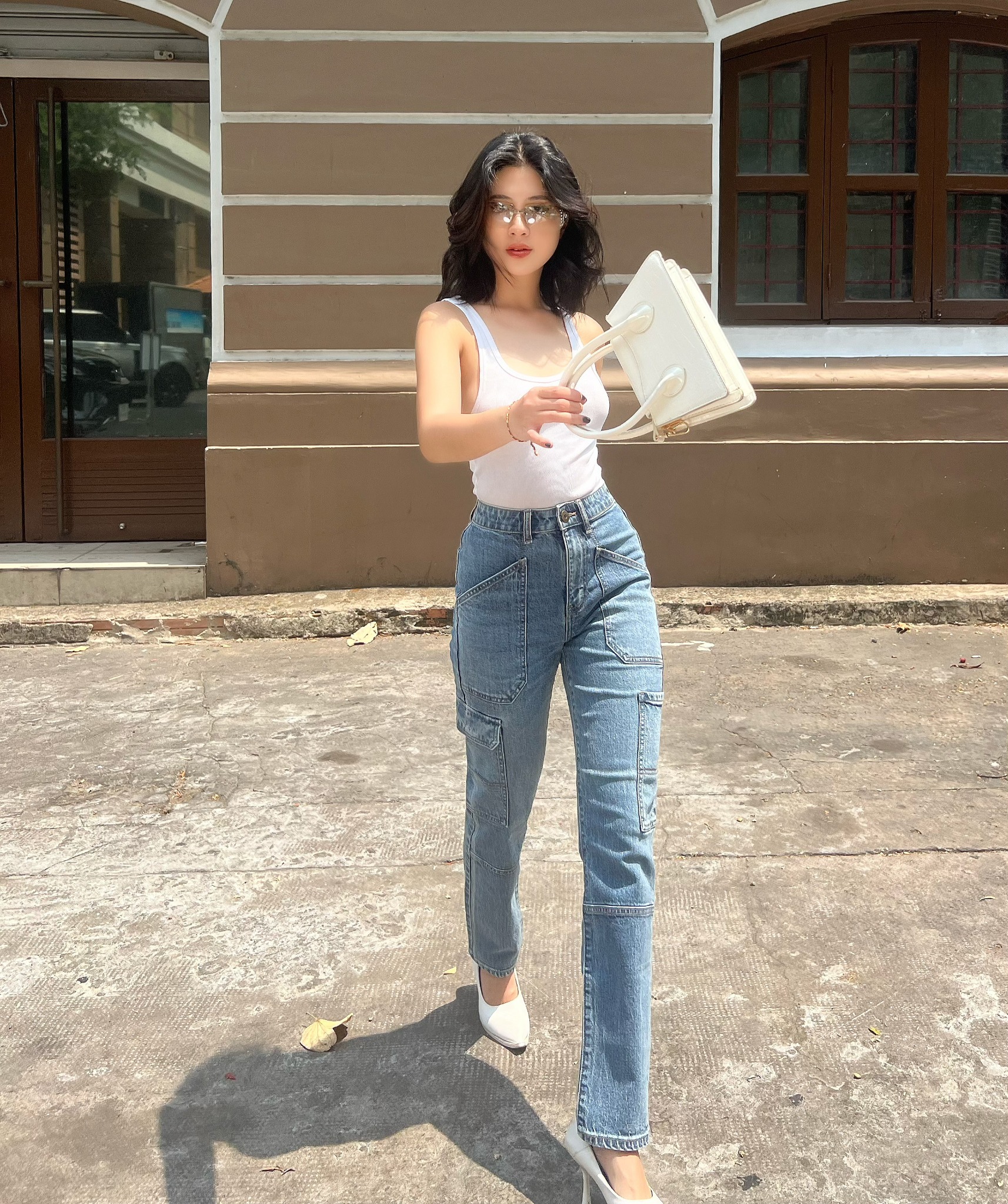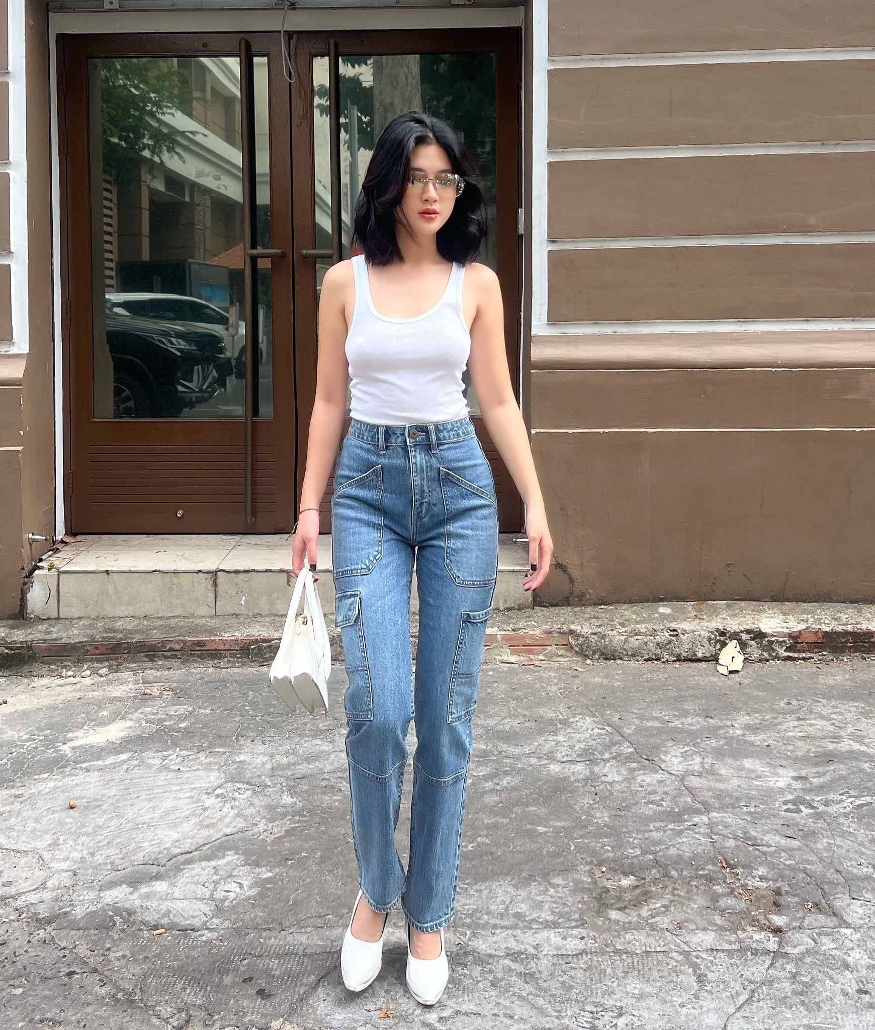 Quần Jeans Nữ Túi Hộp Dáng Suông - Cargo Pants Straight Jeans - 122WD1083A3