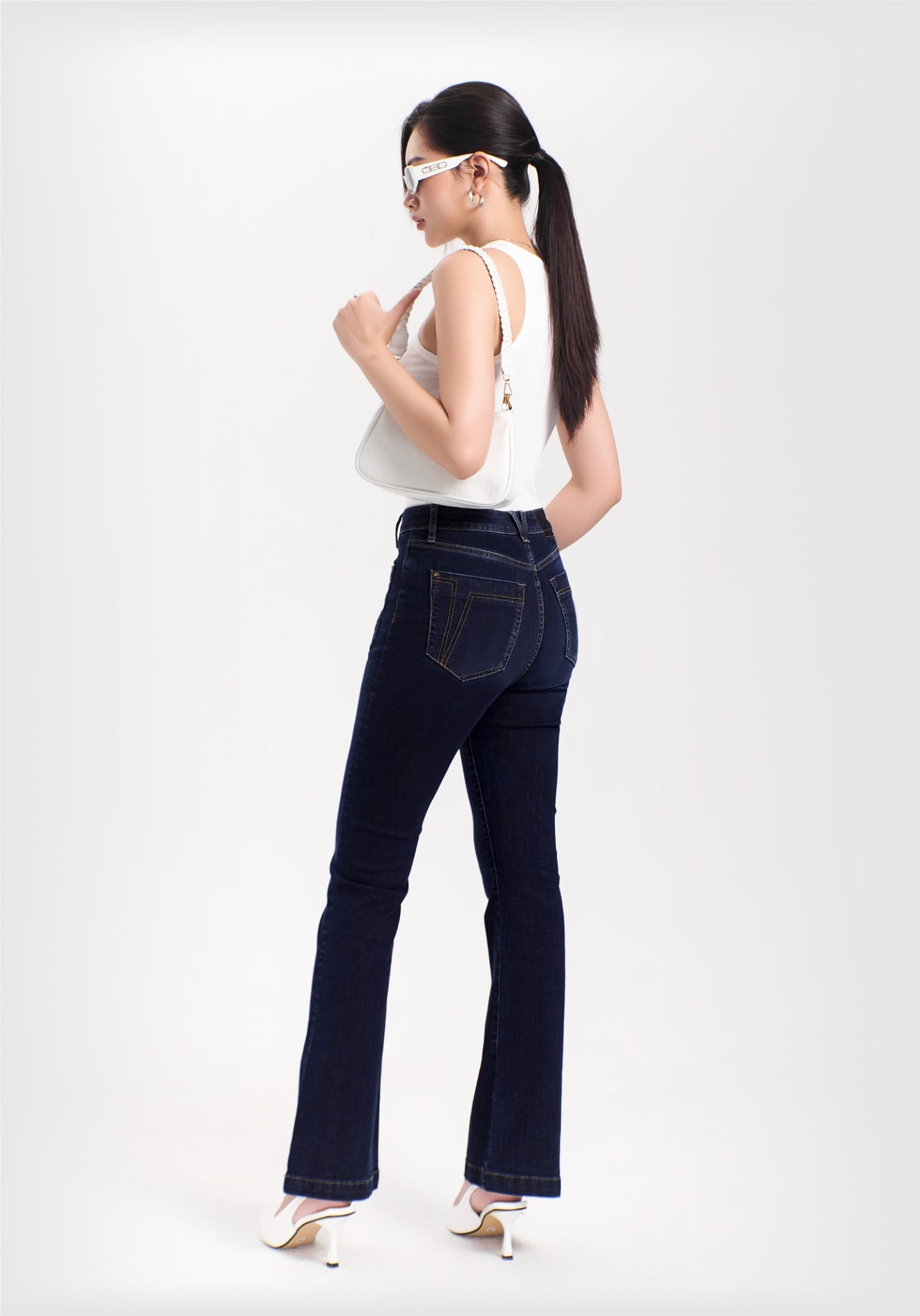 Quần Dài Nữ Dáng Loe Màu Xanh Đậm - Dark Blue Flared Women's Jeans - 124WD2084B1