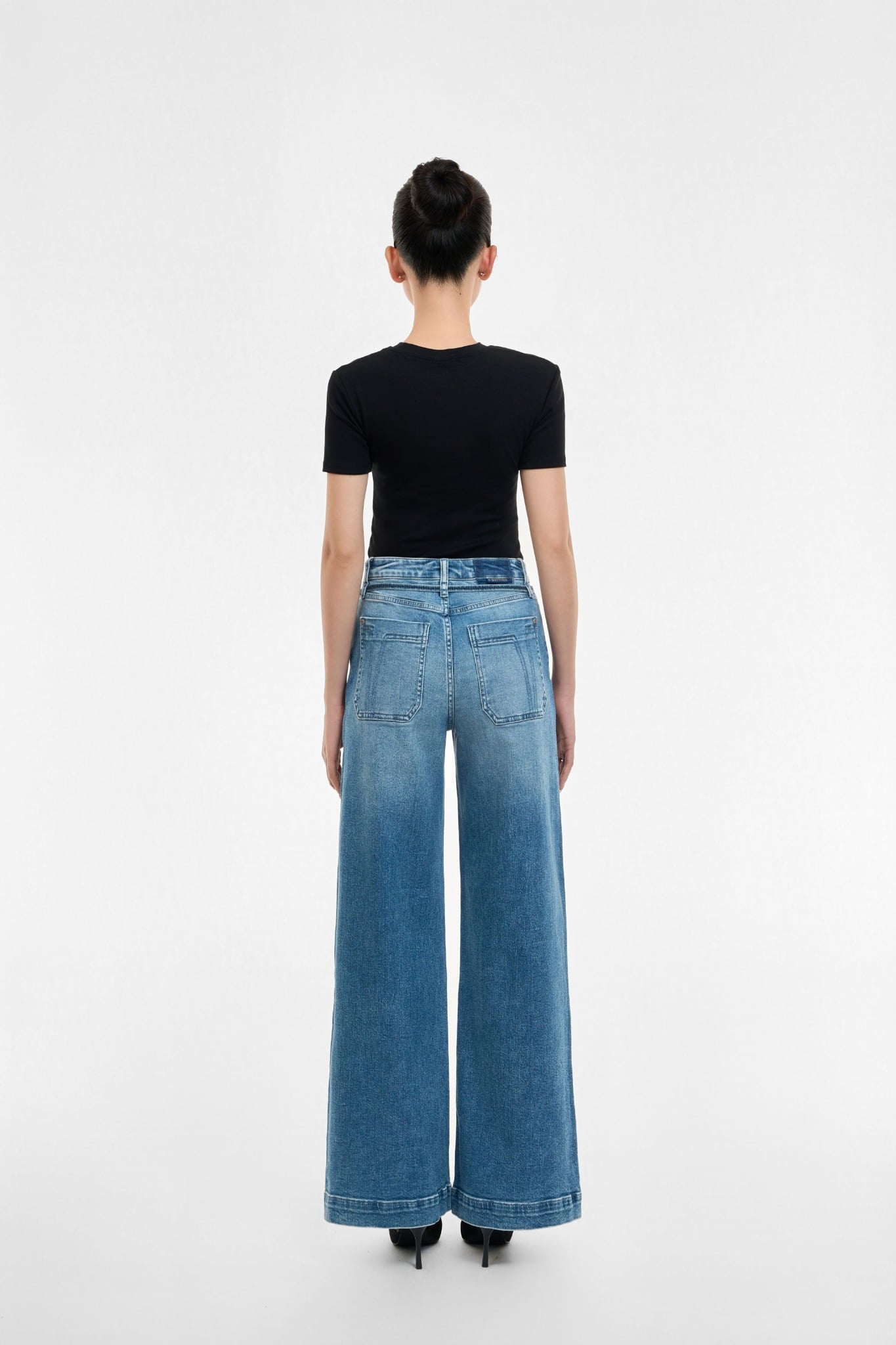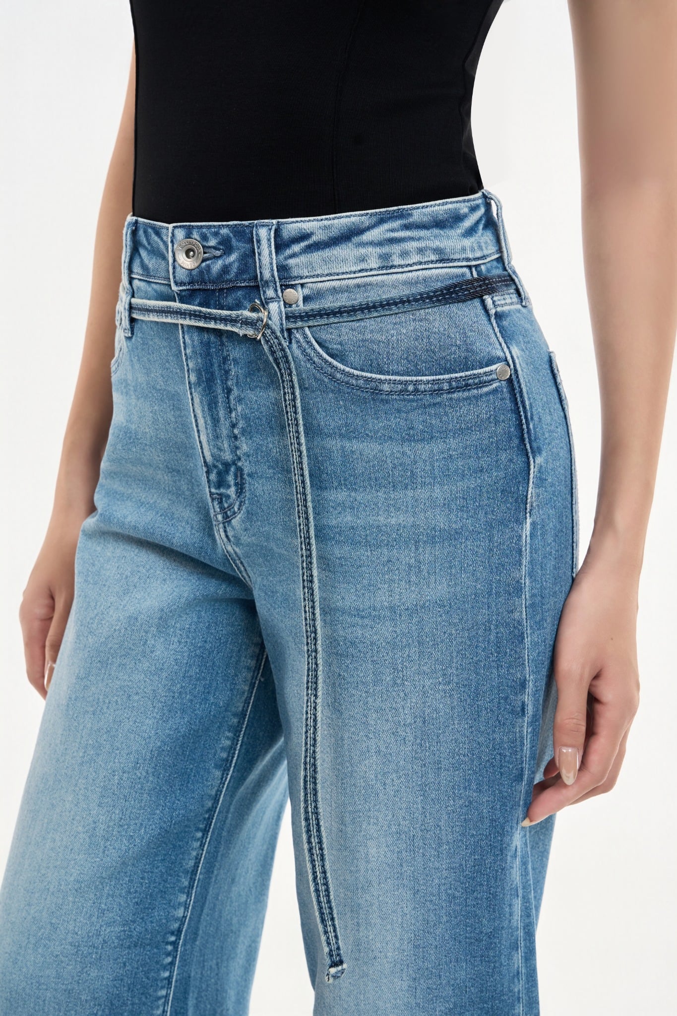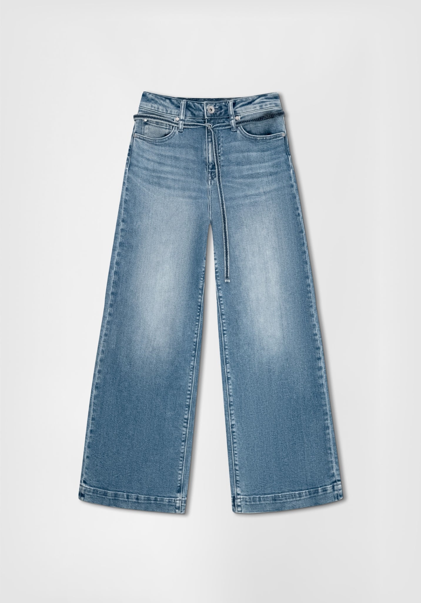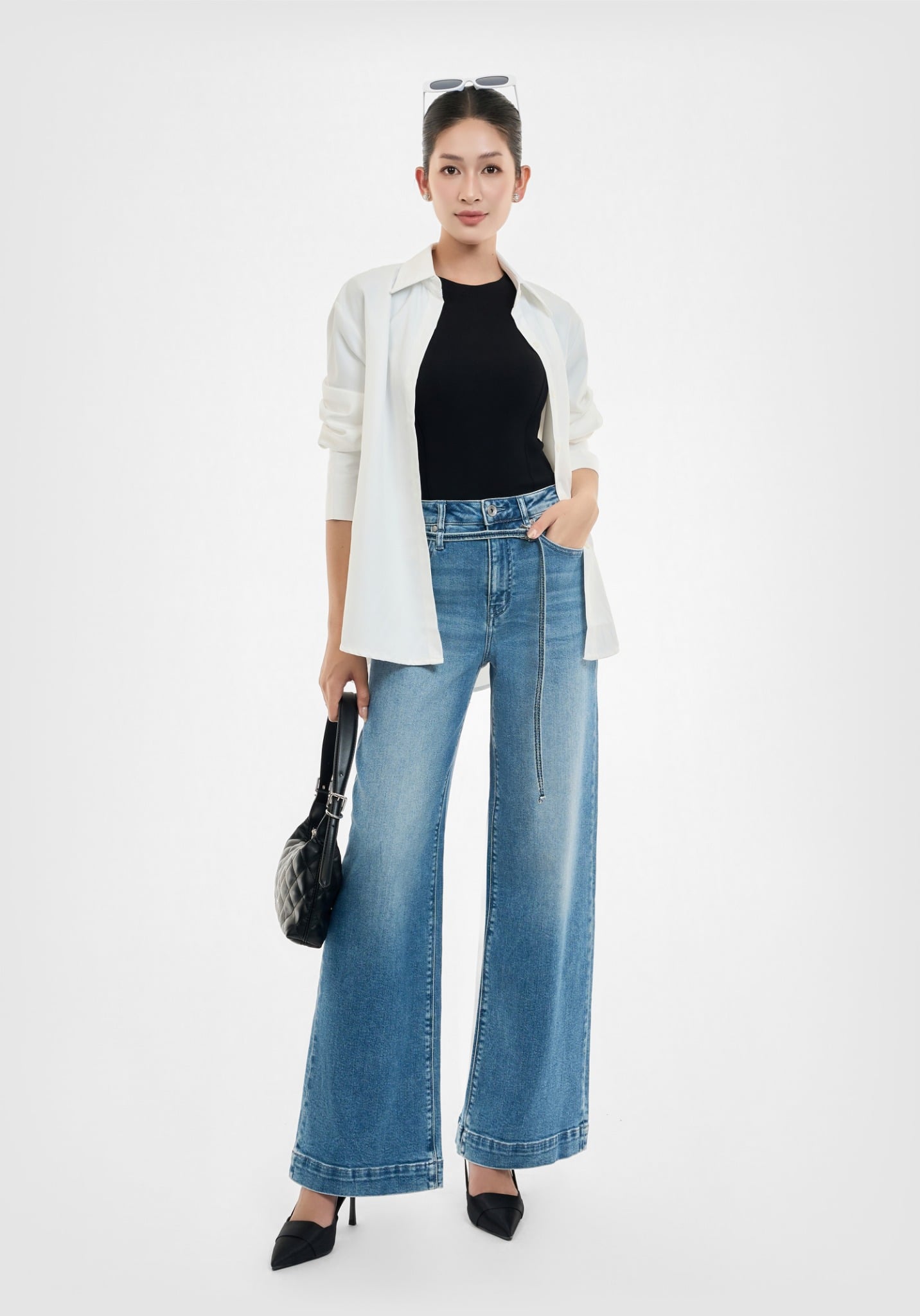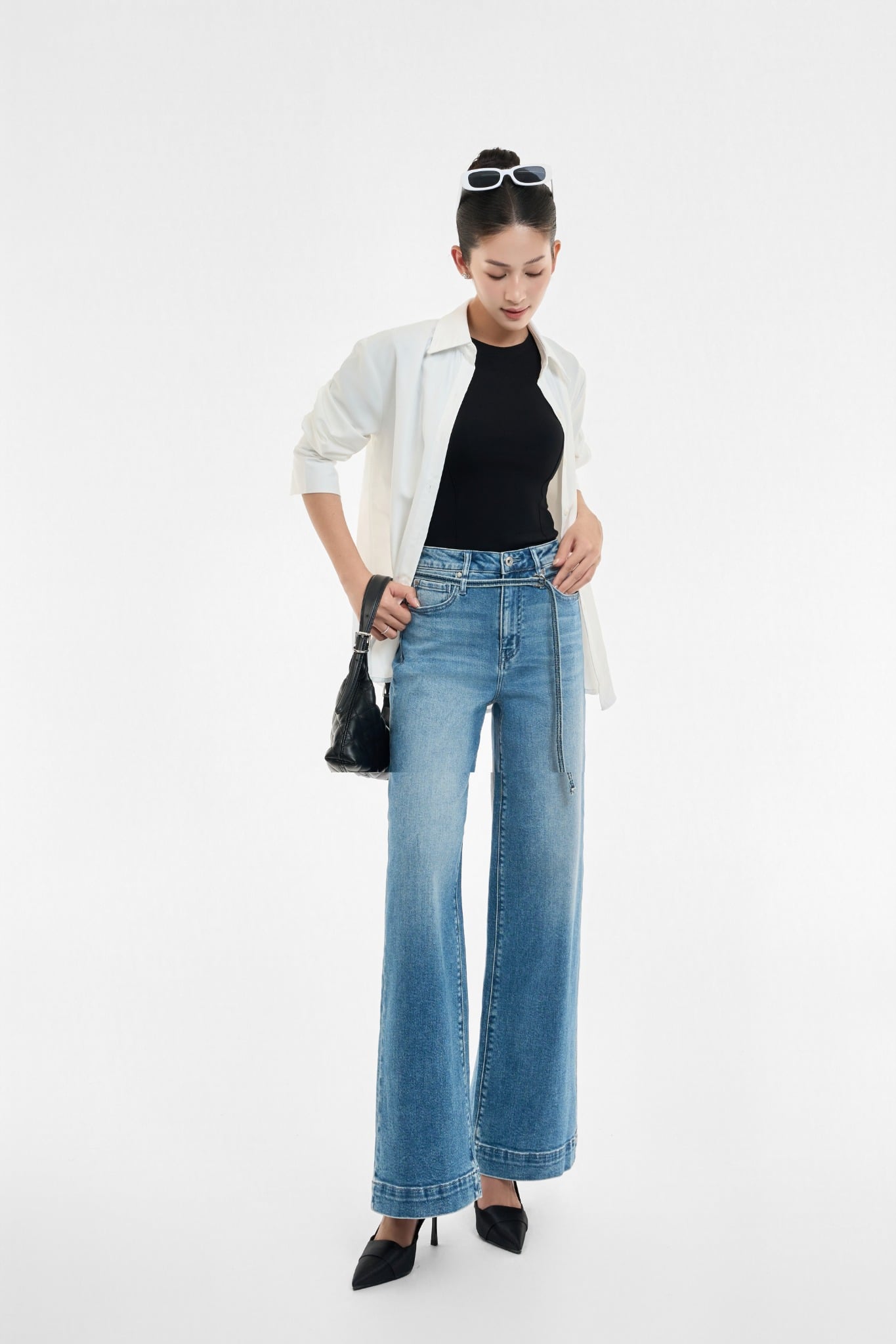 QUẦN DÀI NỮ DENIM LIGHT BLUE FORM WIDE LEG CÓ DÂY LƯNG - 124WD2085F1