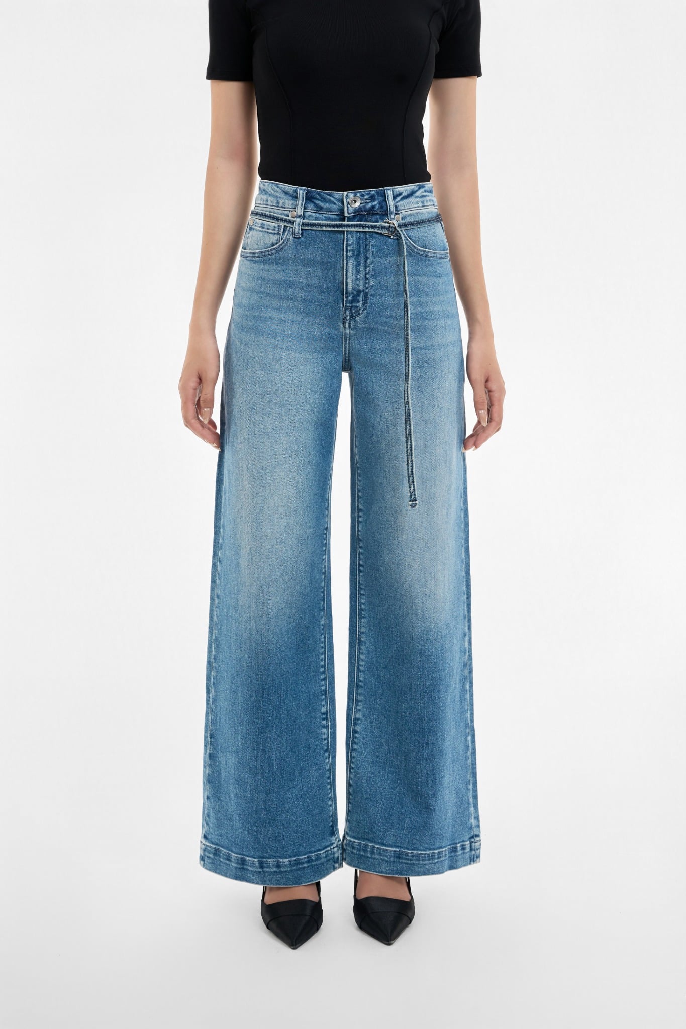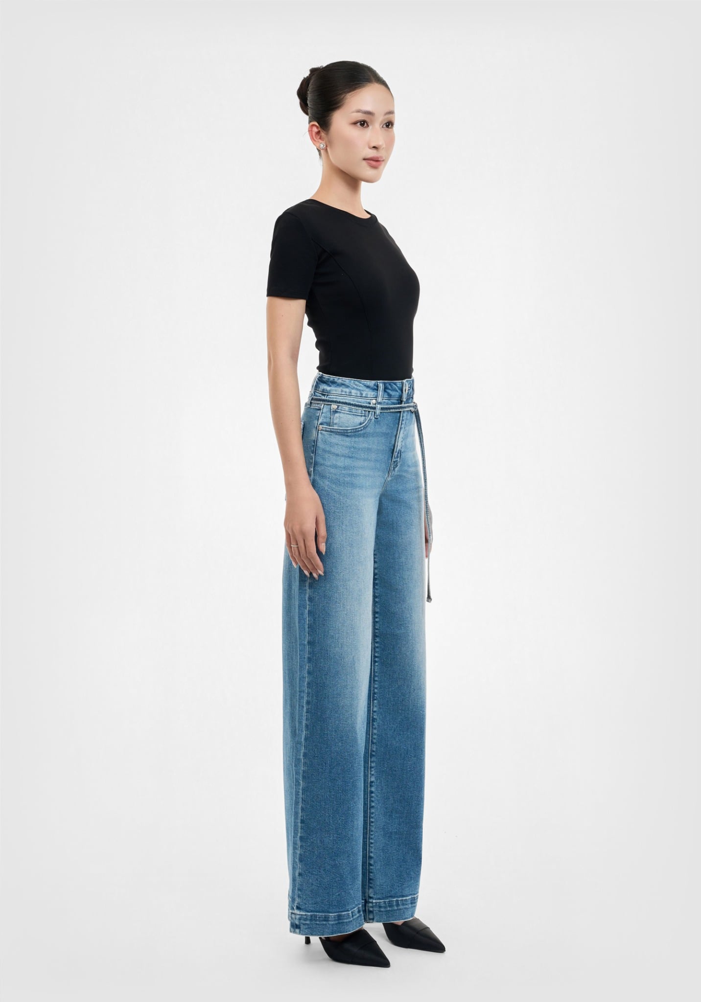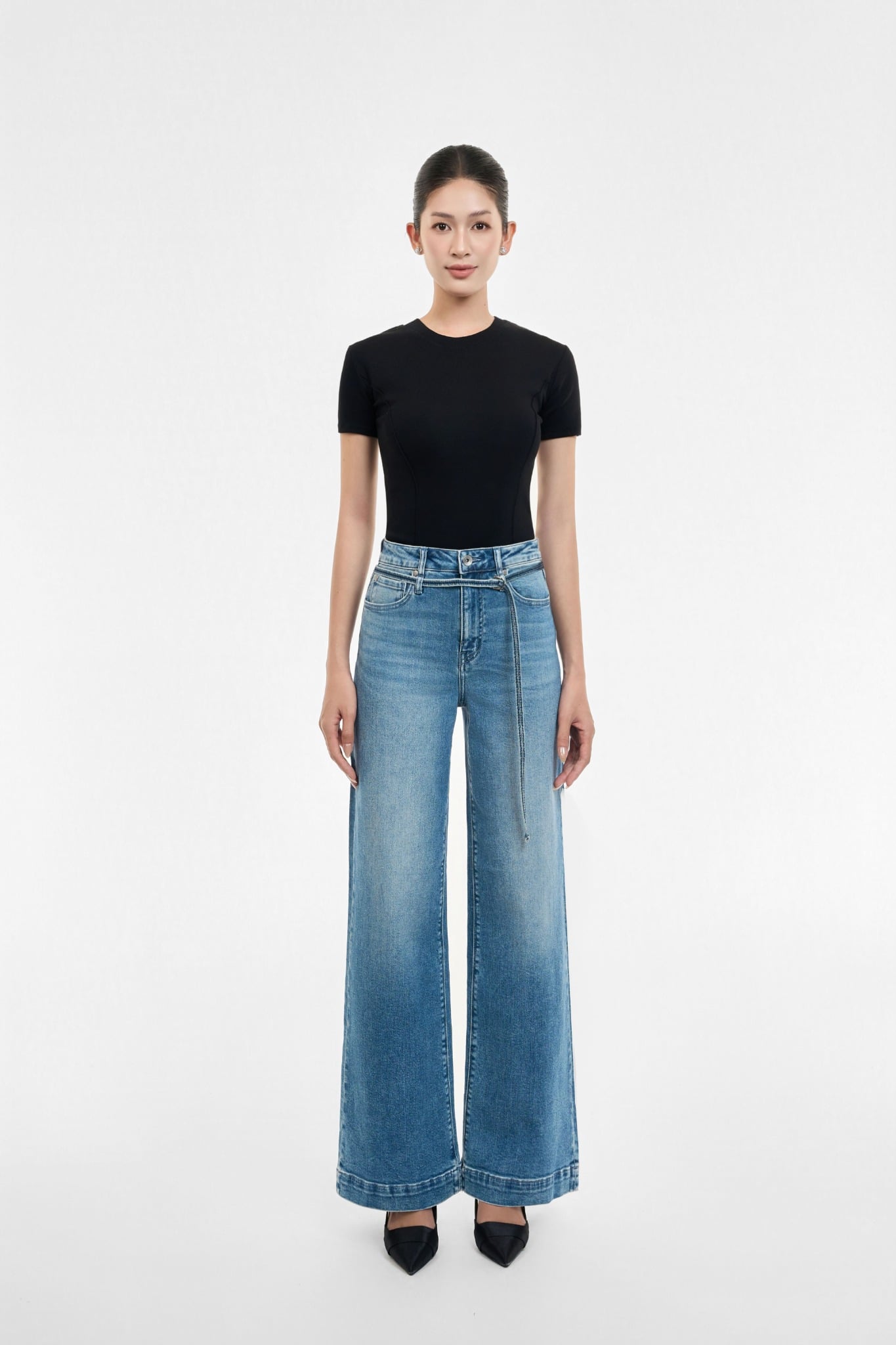 QUẦN DÀI NỮ DENIM LIGHT BLUE FORM WIDE LEG CÓ DÂY LƯNG
