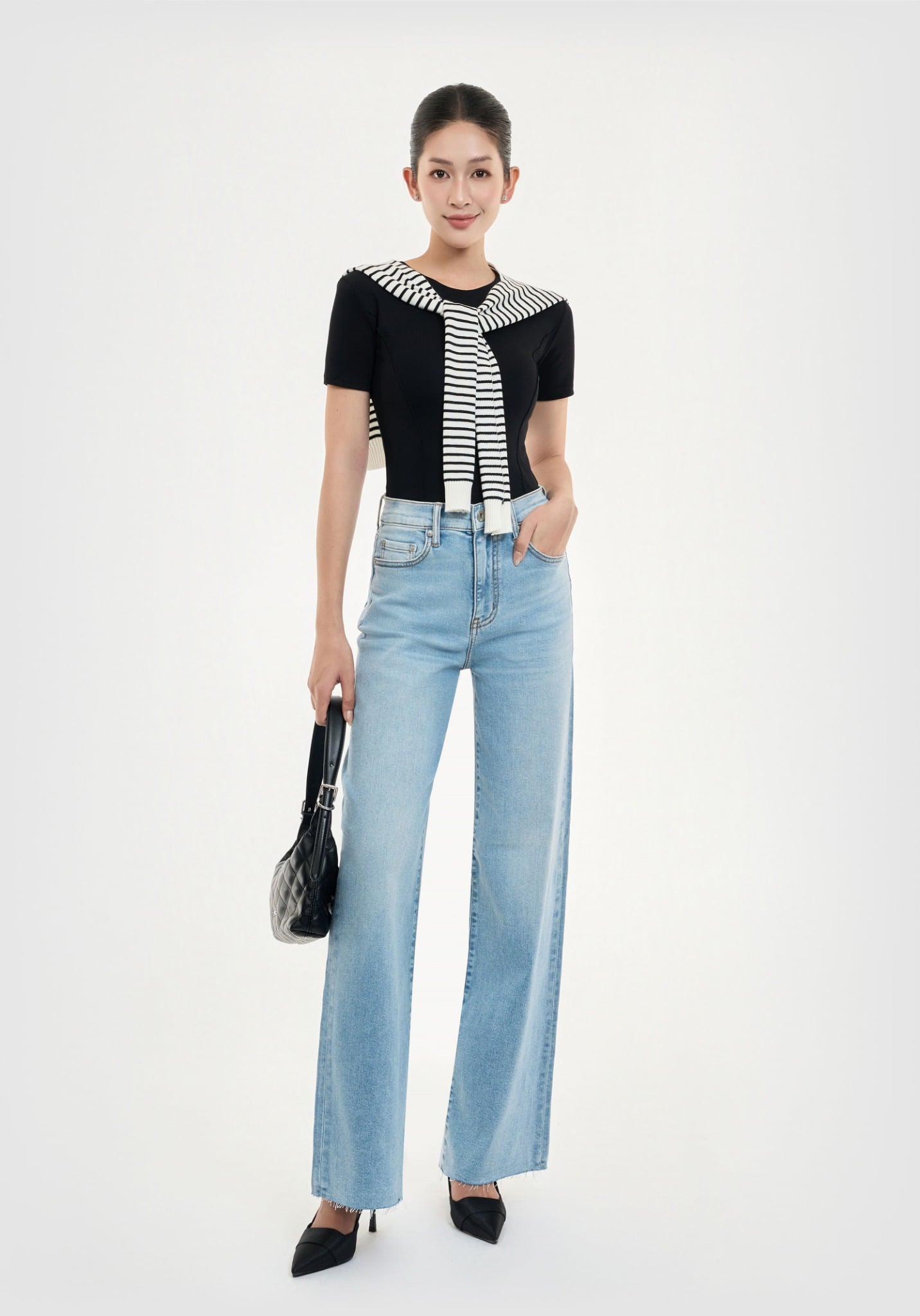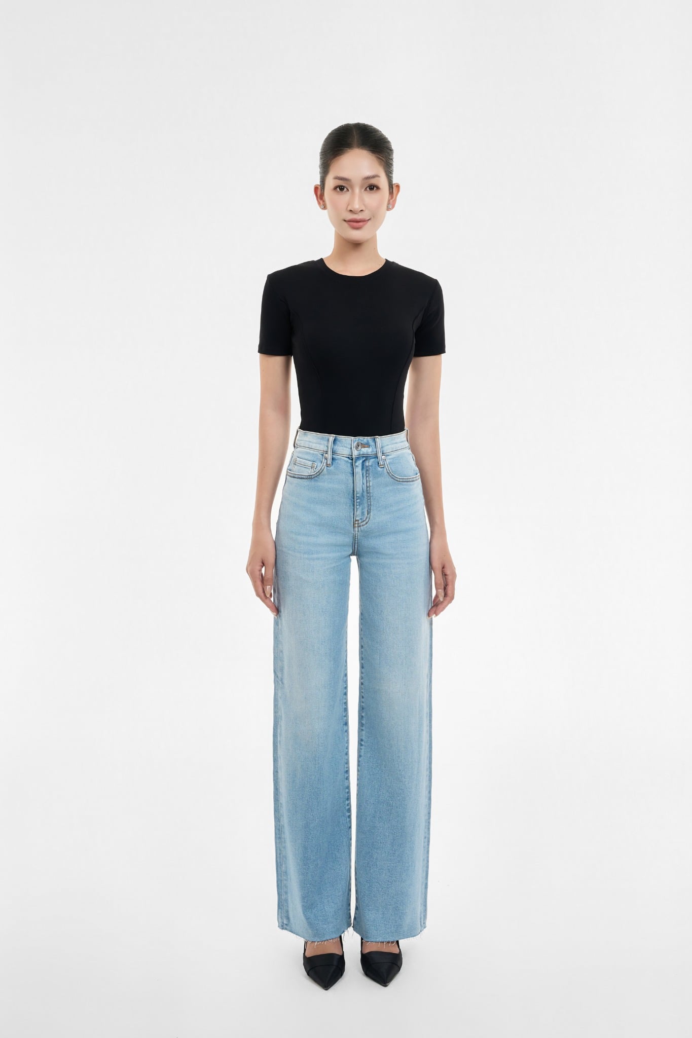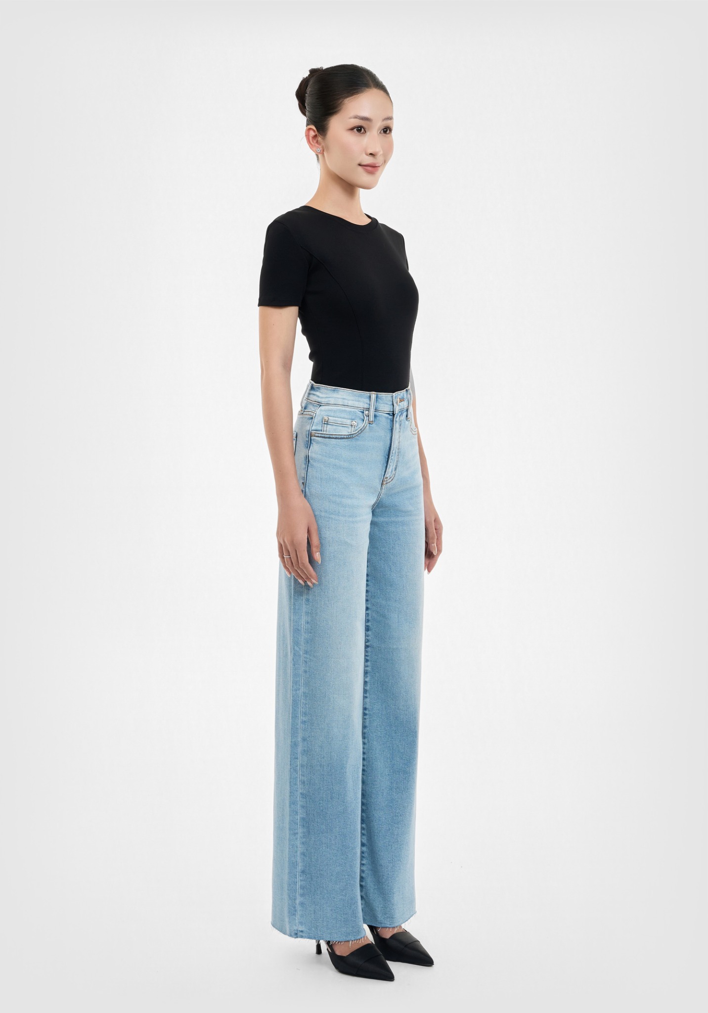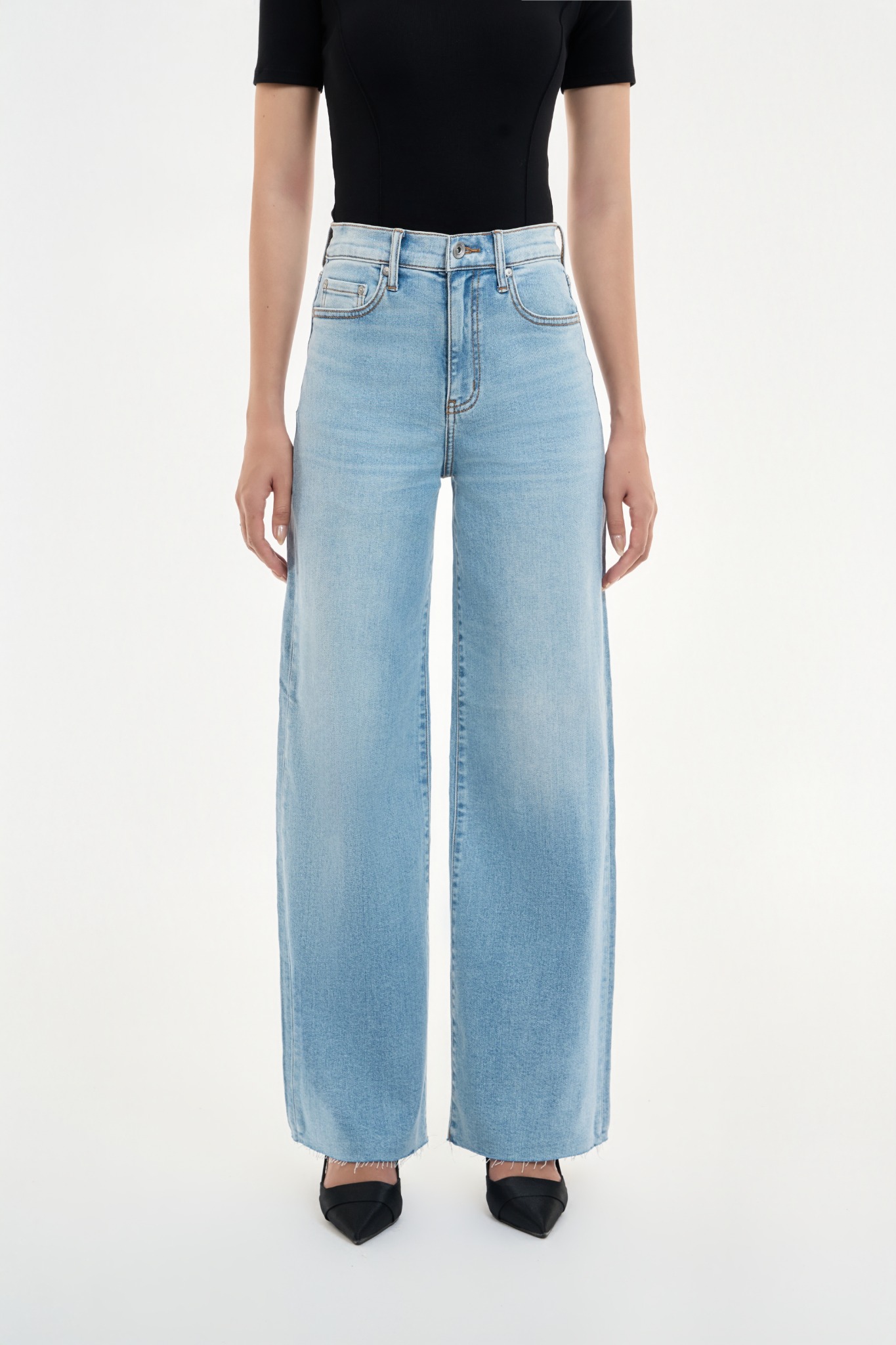 QUẦN DÀI NỮ DENIM MÀU LIGHT BLUE CẮT LAI FORM WIDE LEG