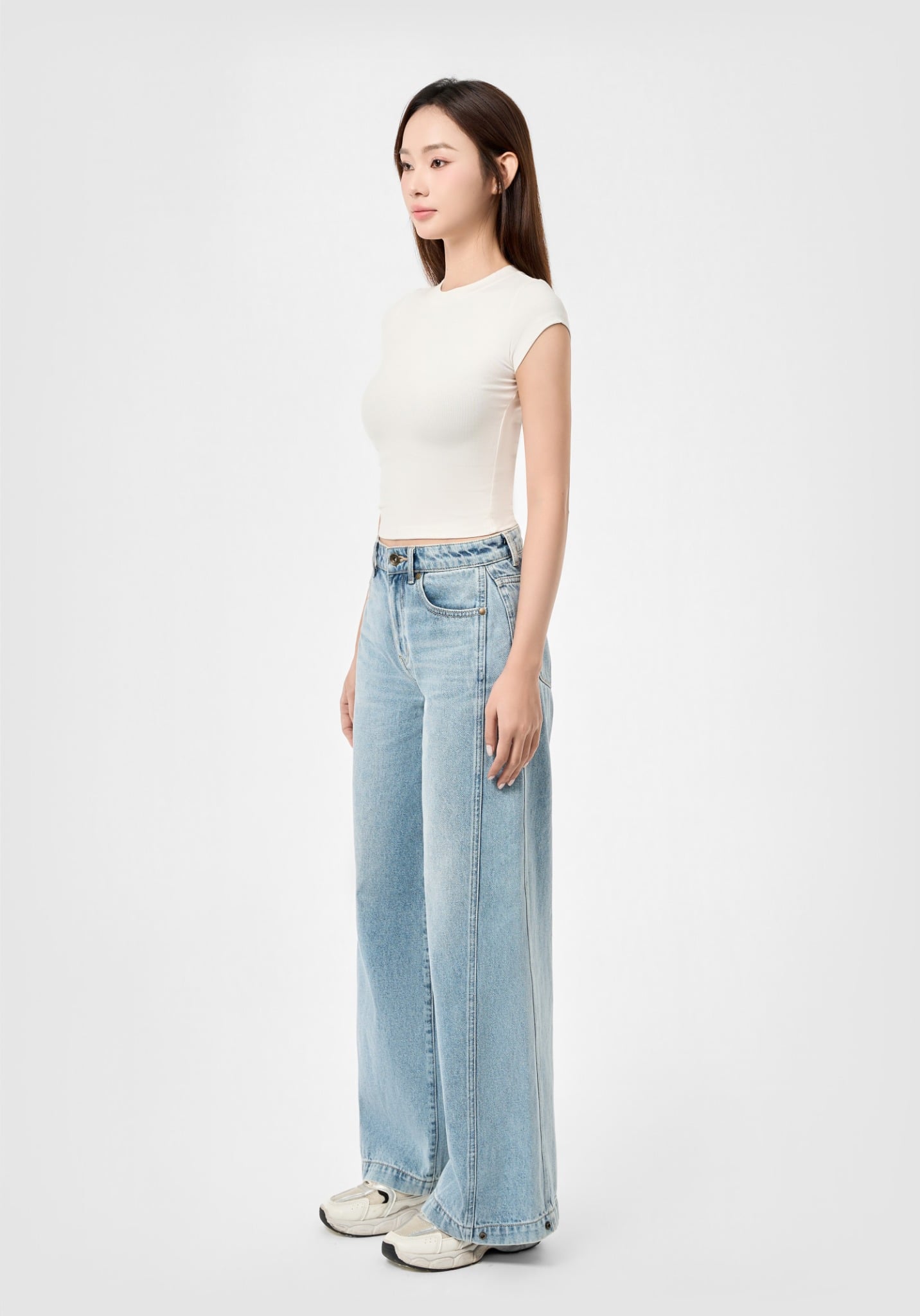 QUẦN DÀI NỮ DENIM LIGHT BLUE  FORM WIDE LEG