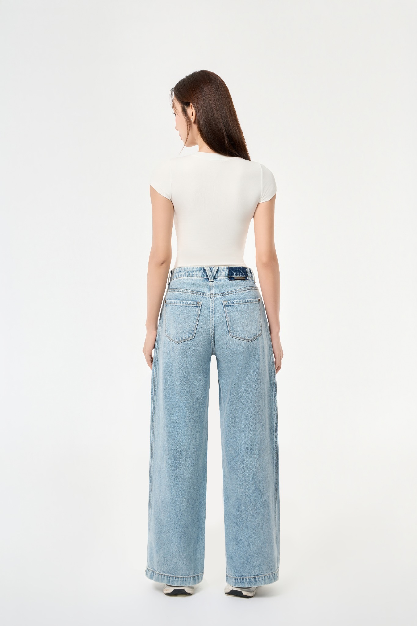 QUẦN DÀI NỮ DENIM LIGHT BLUE  FORM WIDE LEG - 125WD1085F5