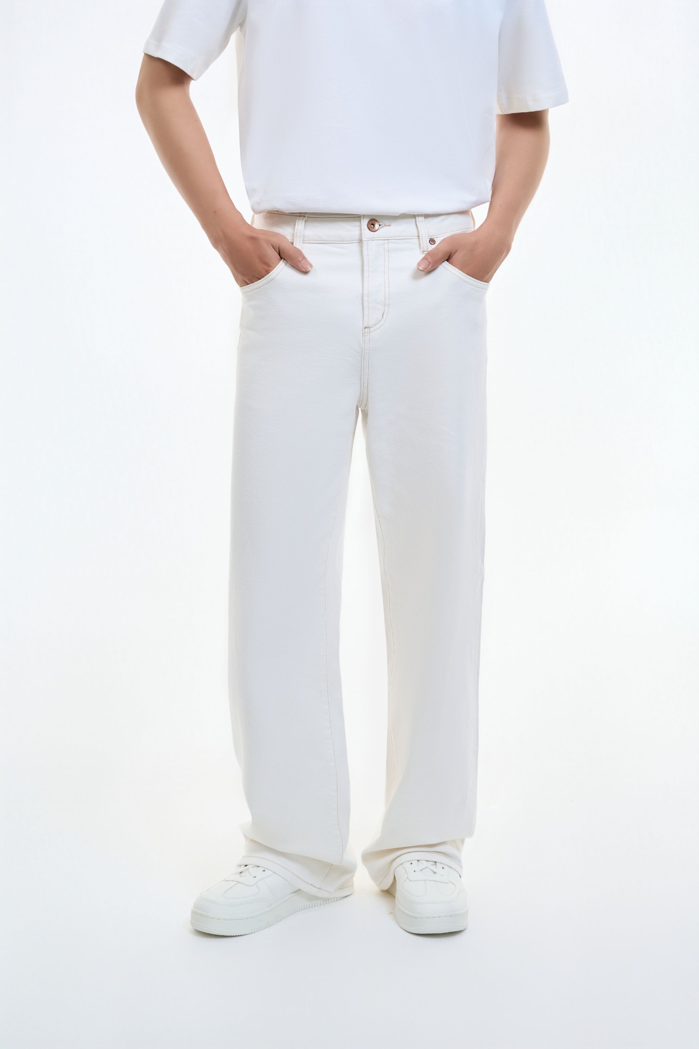QUẦN DÀI UNISEX DENIM TRẮNG KEM FORM STRAIGHT