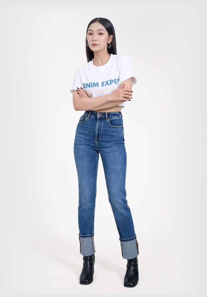 Quần Jeans Nữ Dáng Slim Màu Xanh Đậm - Dark Blue Skinny Woman's Long Jeans - 224WD2082F1