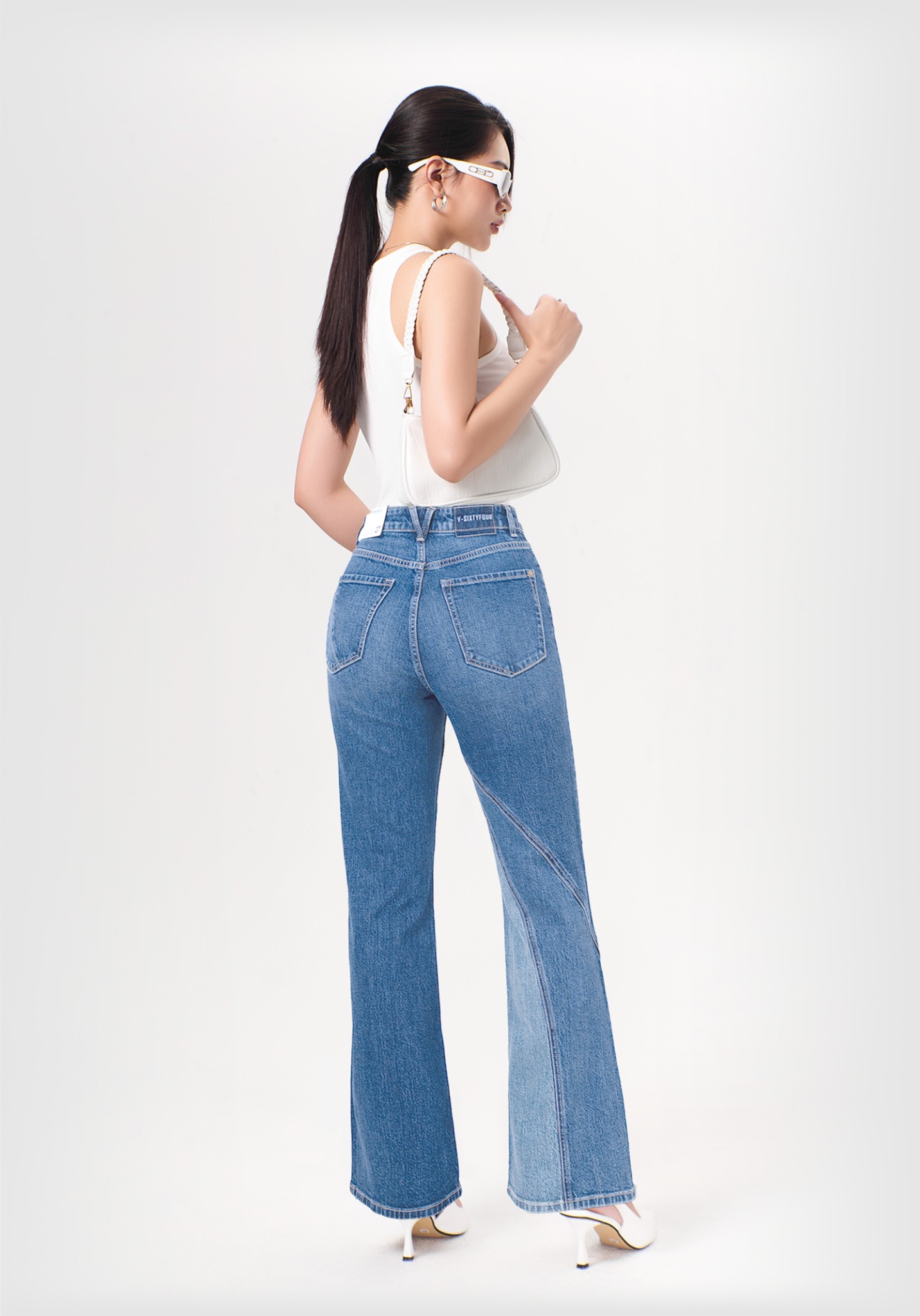 Quần Dài Nữ Dáng Loe Laser Xéo Màu Xanh Nhạt - Light Blue Laser Cut Flare Jeans - 224WD2084F2