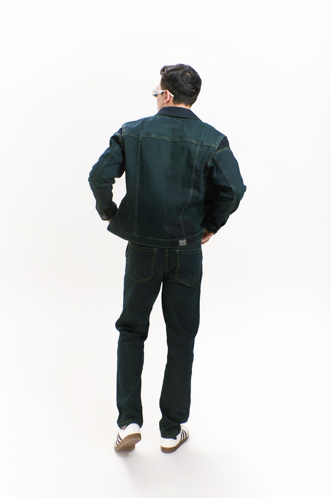 Nhuộm màu xanh olive kết hợp may giữ đậm tạo độ tương phản gợi cảm hứng recycle