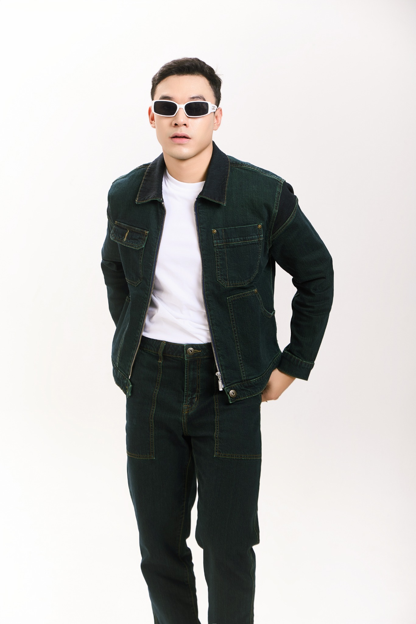 Quần Jeans Nam Nhuộm Xanh Rêu Dáng Straight Túi Hộp. Men's jeans dyed moss green with box bag - 124MD4083F1