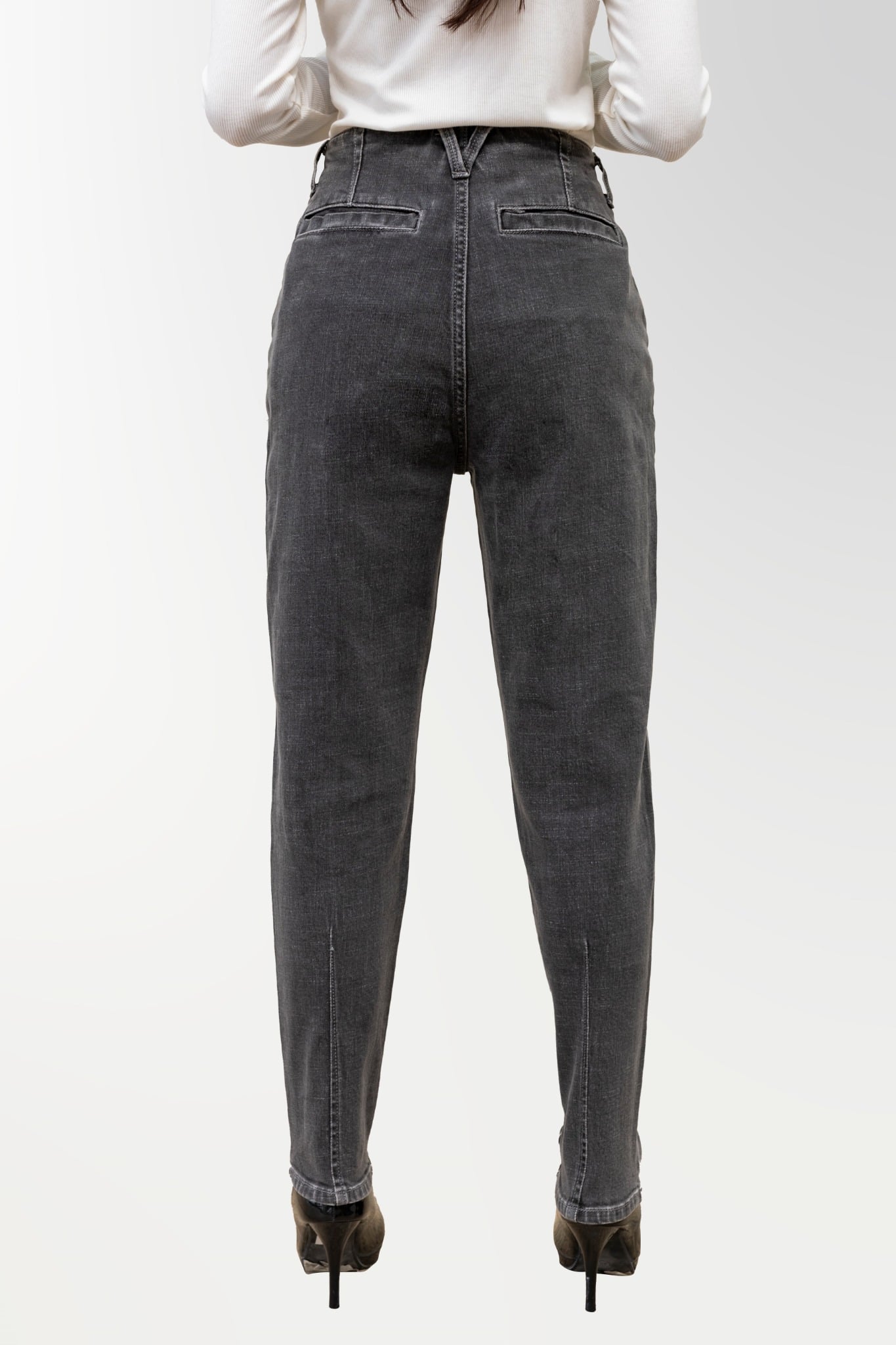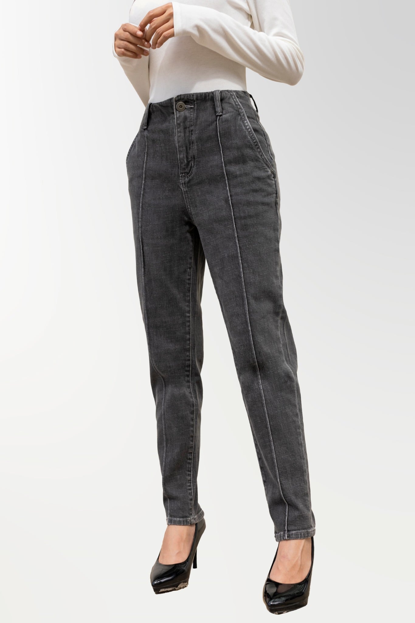 Quần Jeans Nữ Sóng Gân Dáng Baggy Màu Xám. Front Seam Detail Baggy Jeans - 222WD2089F2
