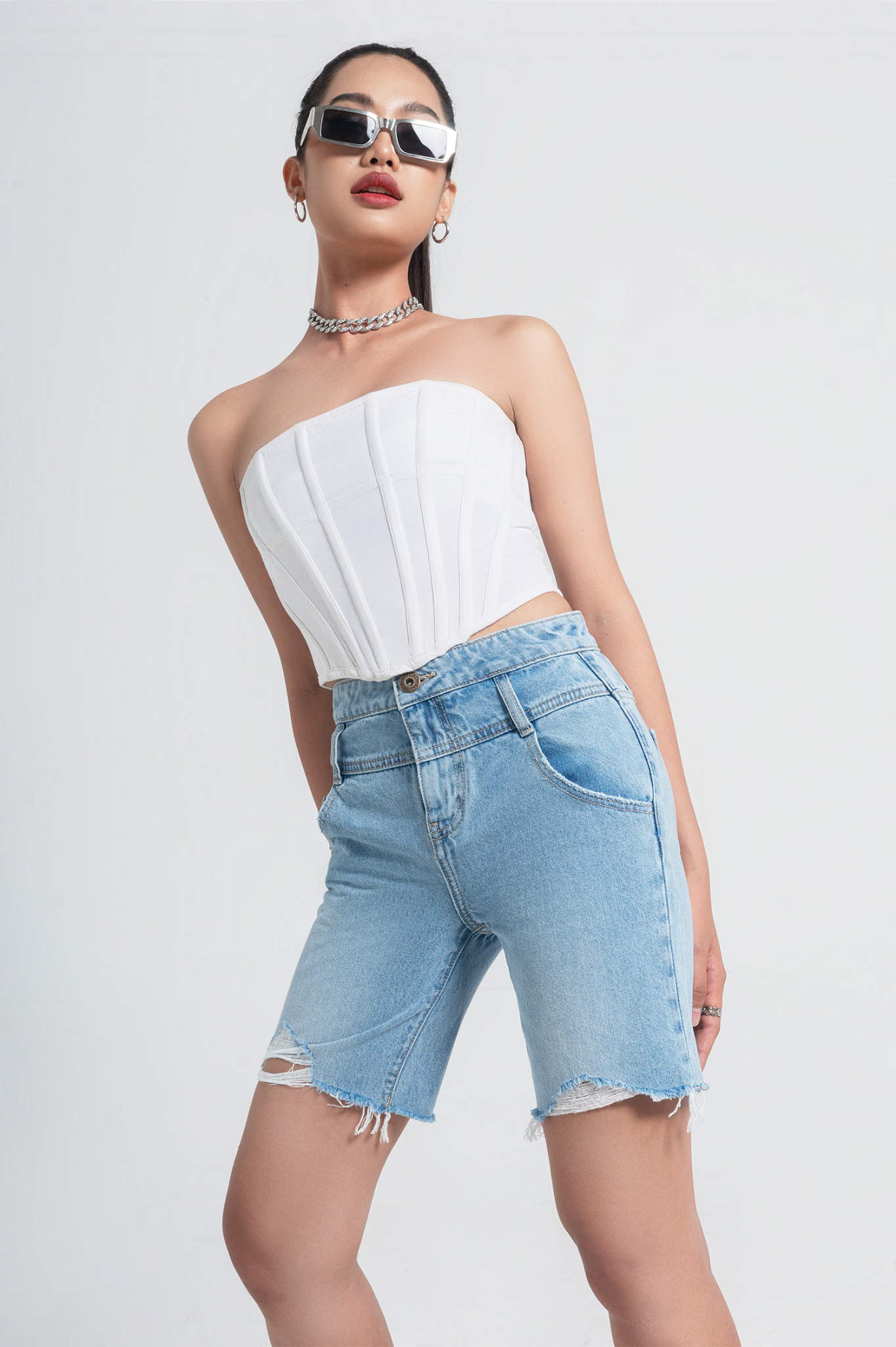 Quần Short Biker Hai Lưng Phá Cách
