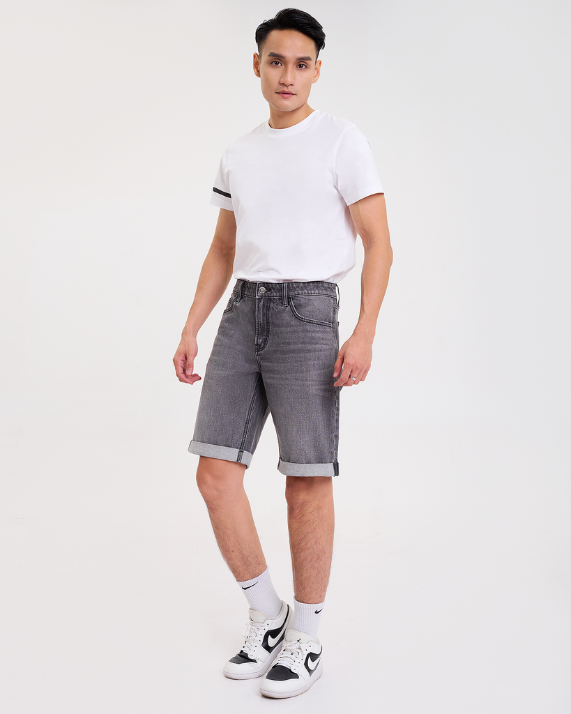 Quần Ngắn Nam Màu Xám. Ash Grey Rolled Hem Denim Shorts - 122MD4103B1
