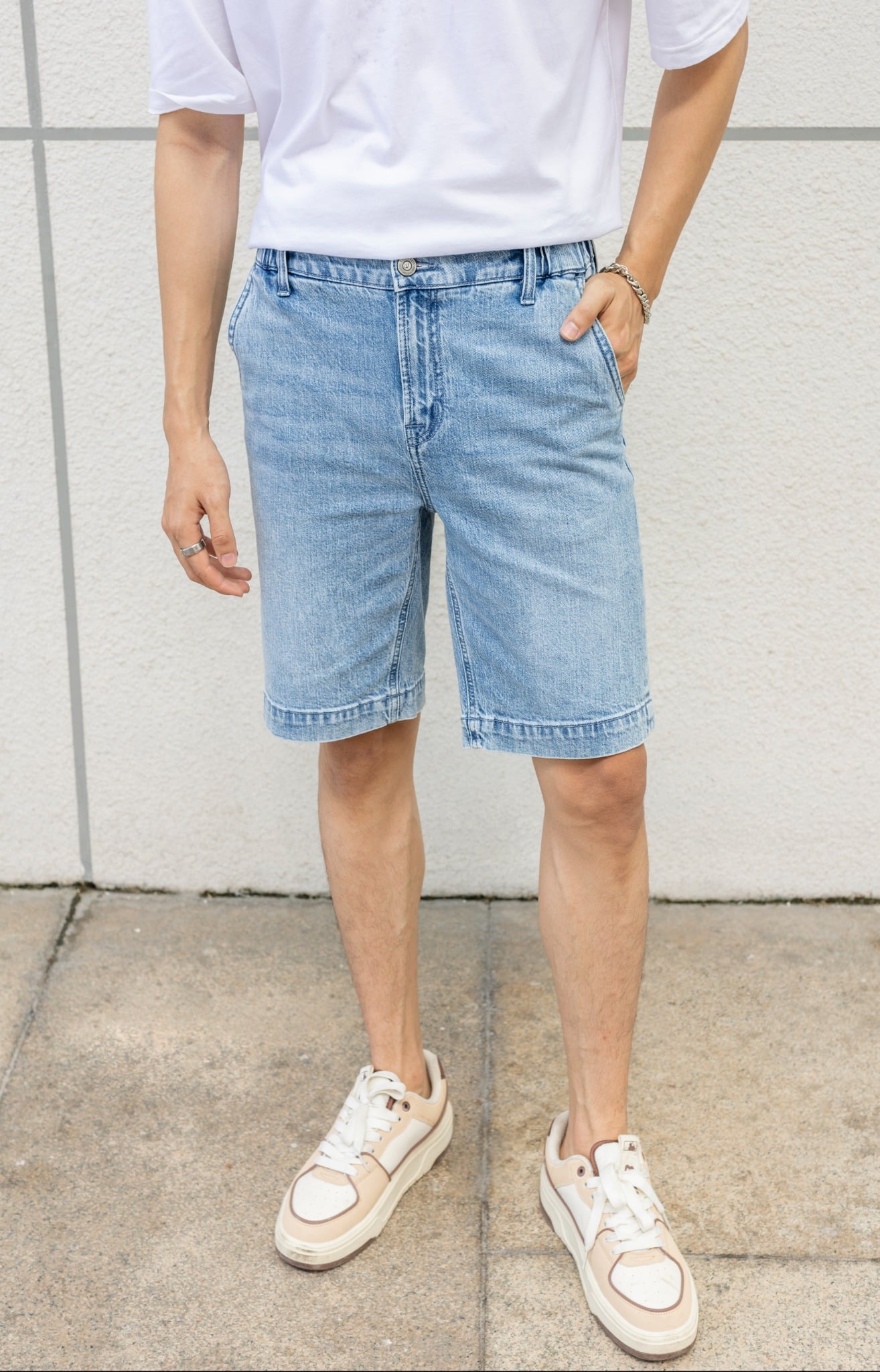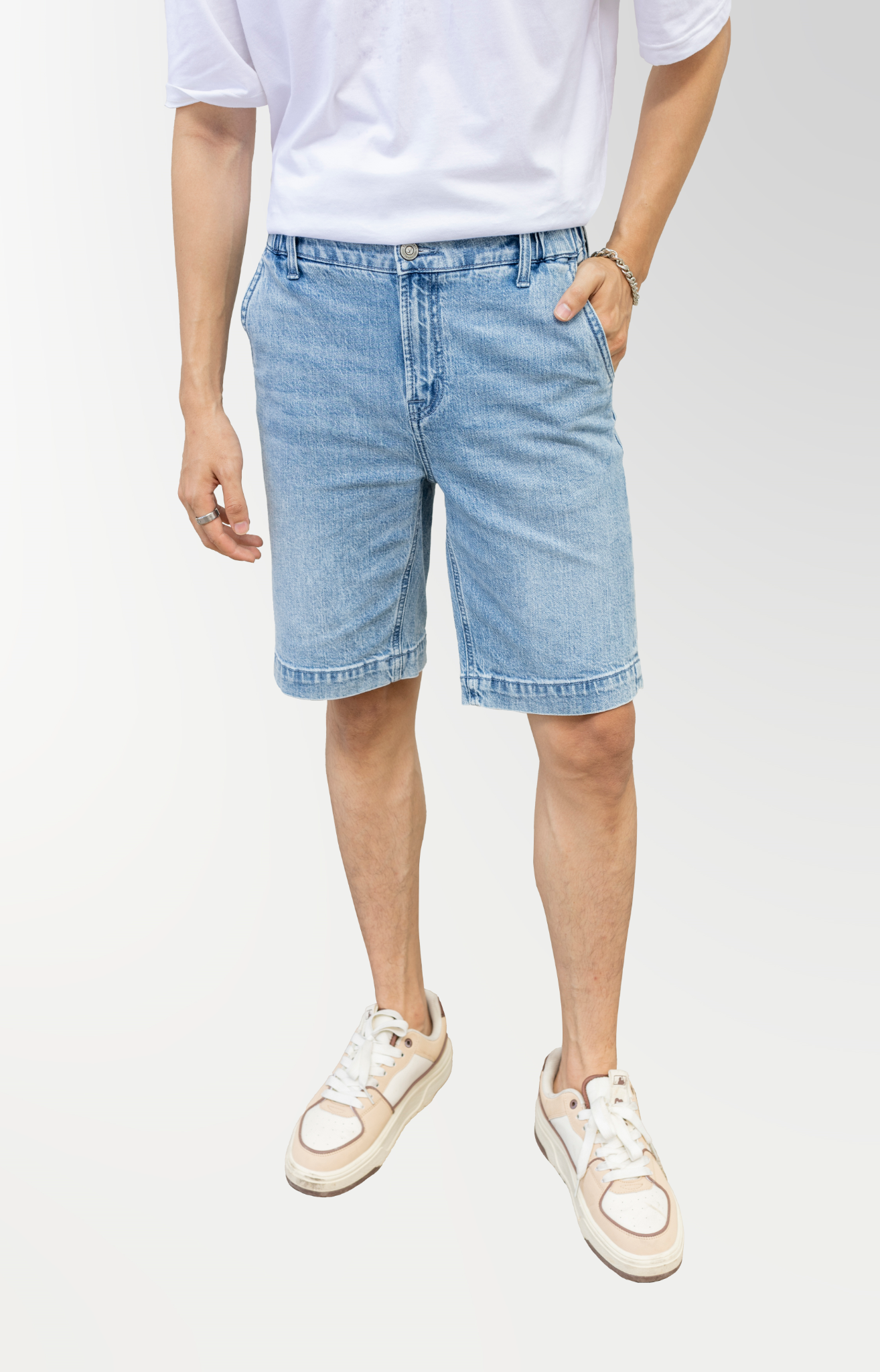 Quần Shorts Nam Dáng Suông Màu Xanh Sáng. Summer Sky Straight Fit Denim Shorts - 222MD3103B1