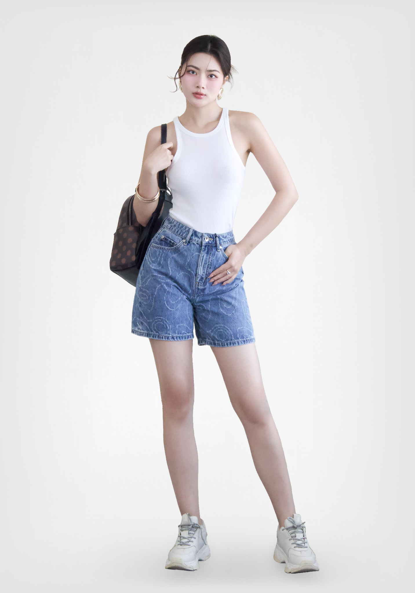 QUẦN SHORTS NỮ DENIM LIGHT BLUE LASER  FORM RỘNG