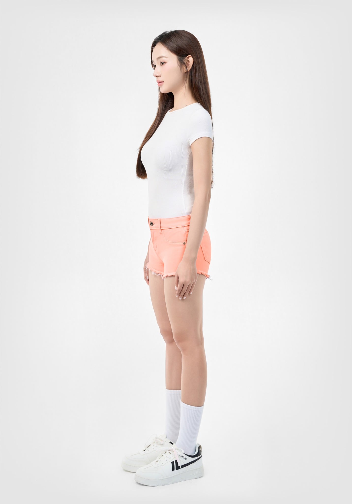 QUẦN SHORTS NỮ DENIM NHUỘM CAM ĐÀO FORM ÔM LƯNG THẤP