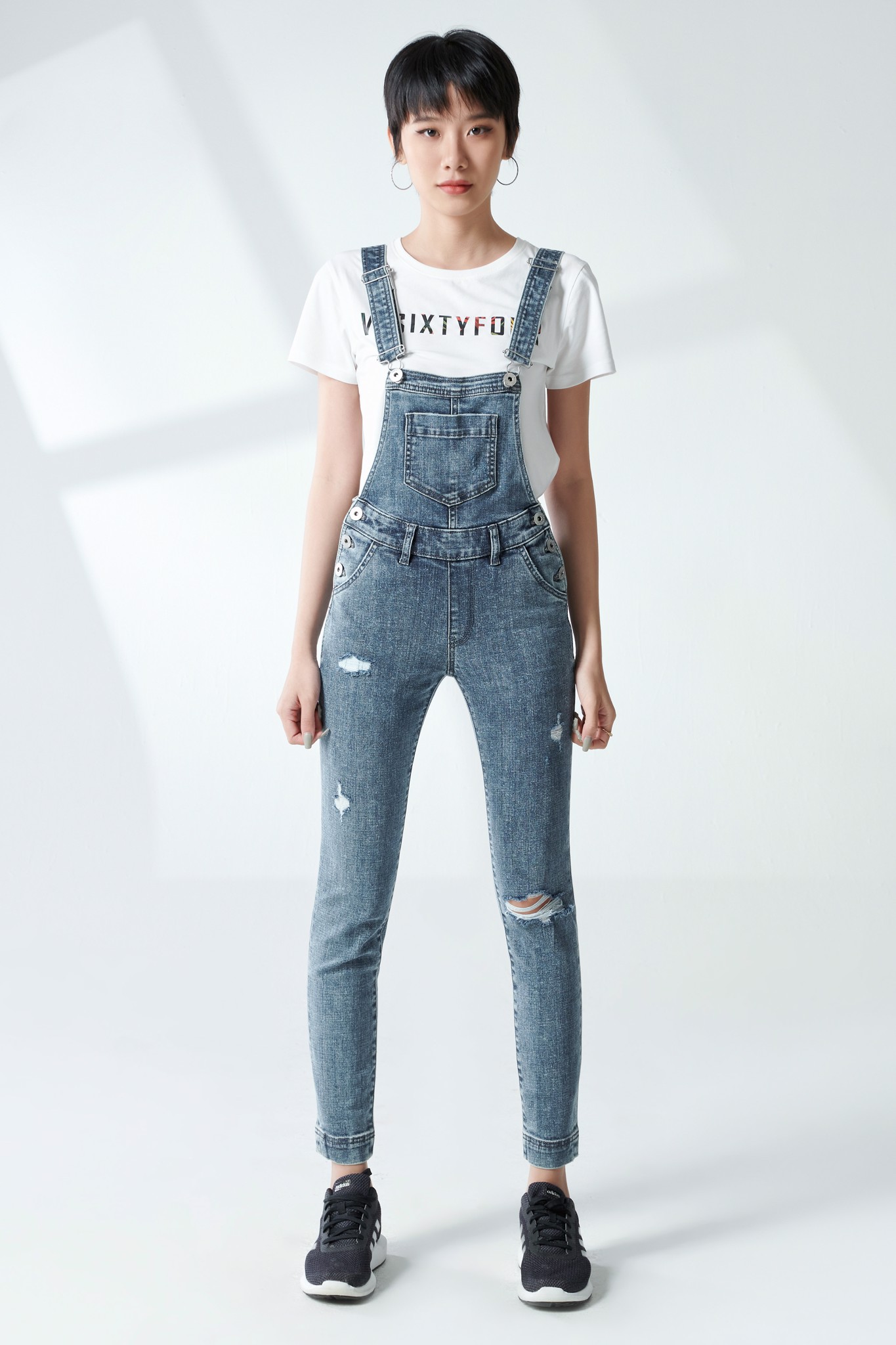 Quần Yếm Jeans dáng dài. Denim Overalls - 220WD1133F2