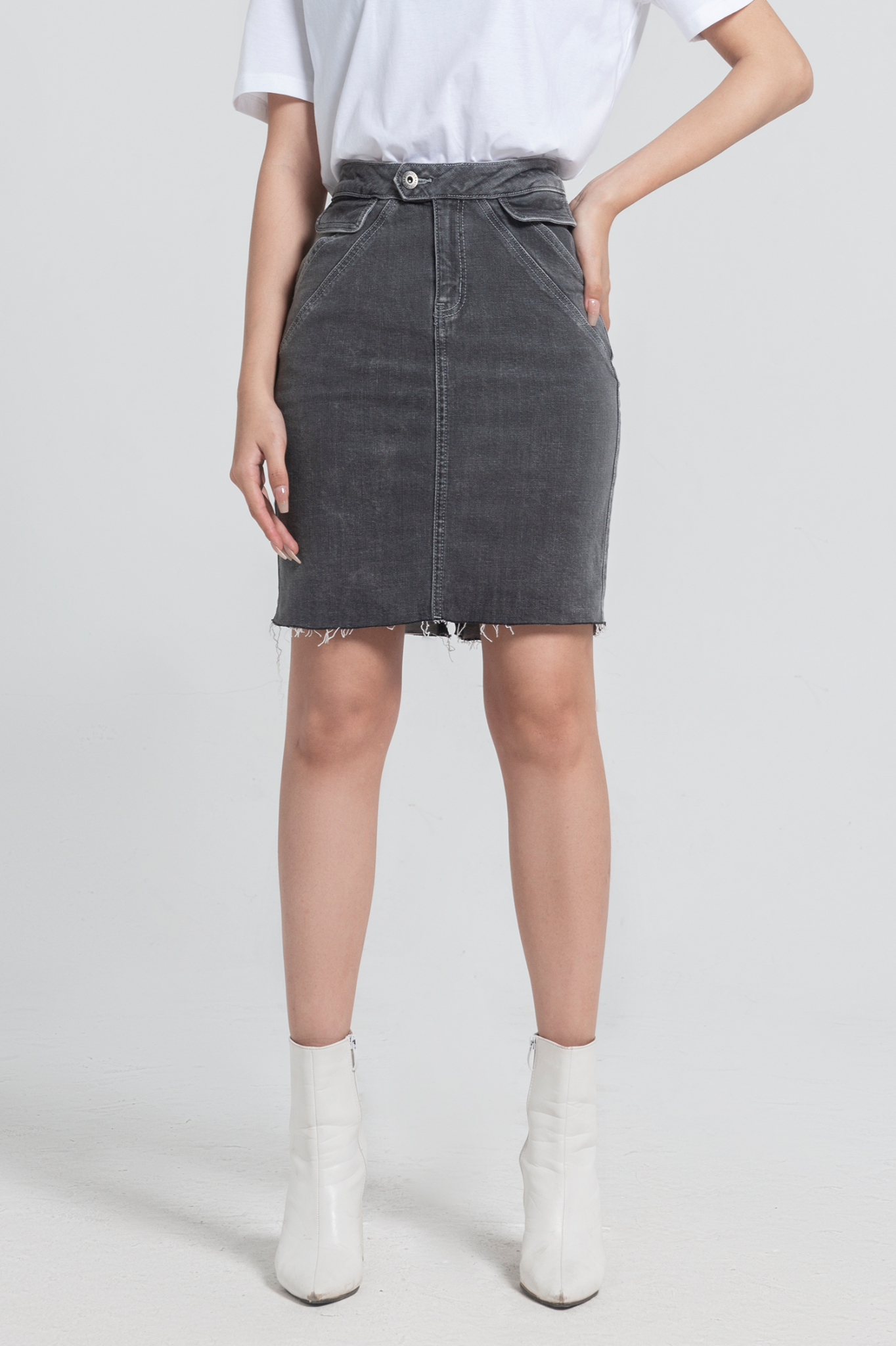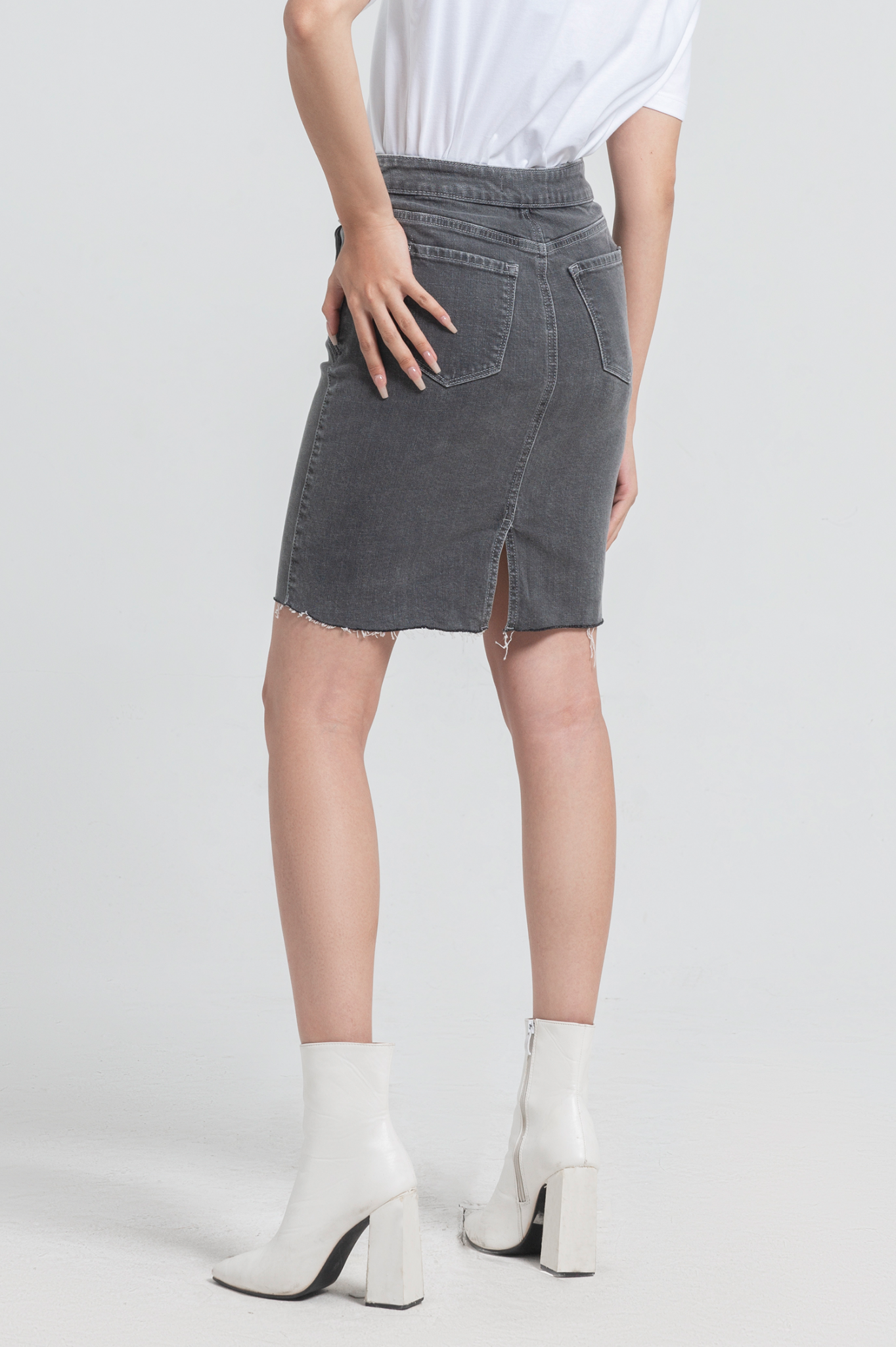 Chân Váy Denim Dáng Bút Chì Cách Điệu Màu Xám. Grey Denim Pencil Skirt - 121WD2112F2