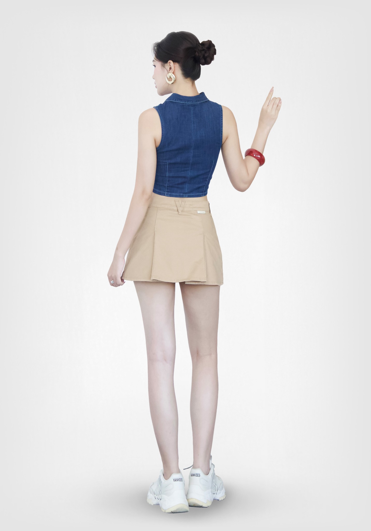 VÁY NGẮN KAKI BEGGIE XẾP LY FORM A (CÓ QUẦN BẢO HỘ)